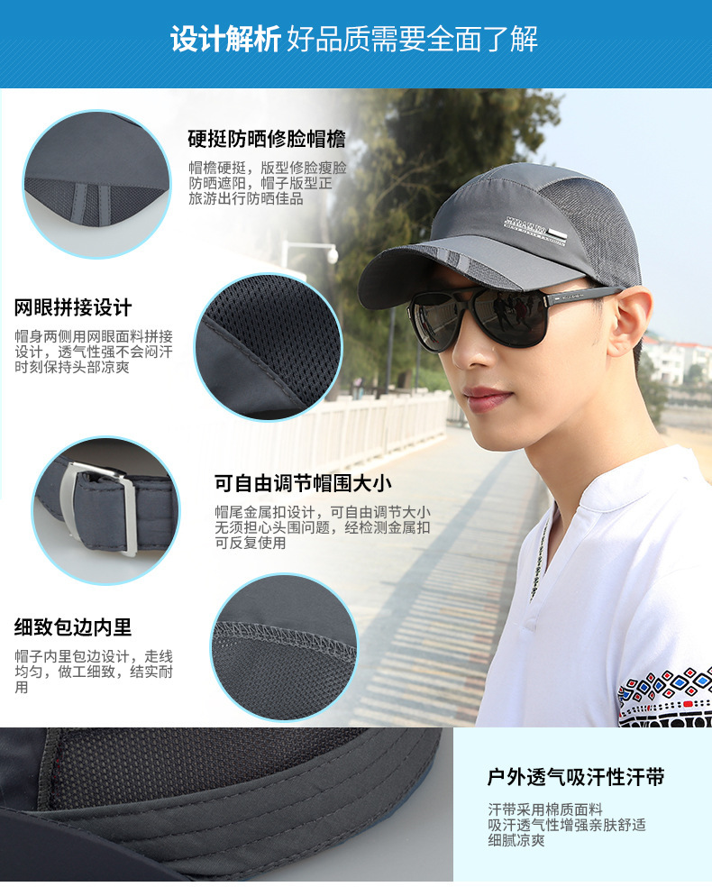 2025 봄 여름 새로운 스타일의 속건성 피크 캡, 남녀 공통, 통기성, 땀 흡수성, 얼굴이 보이는 작은 미국 스포츠 태양 모자스토어 가기