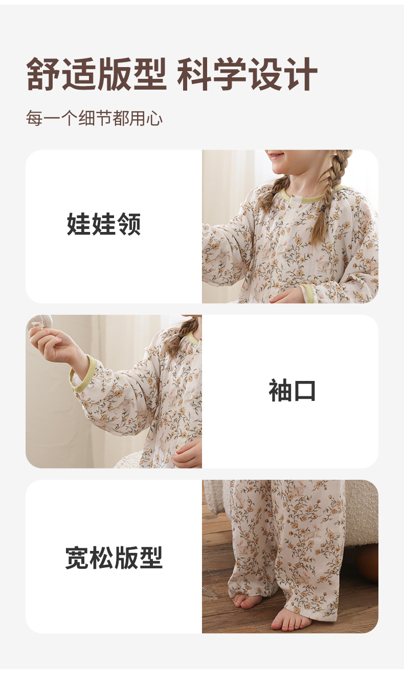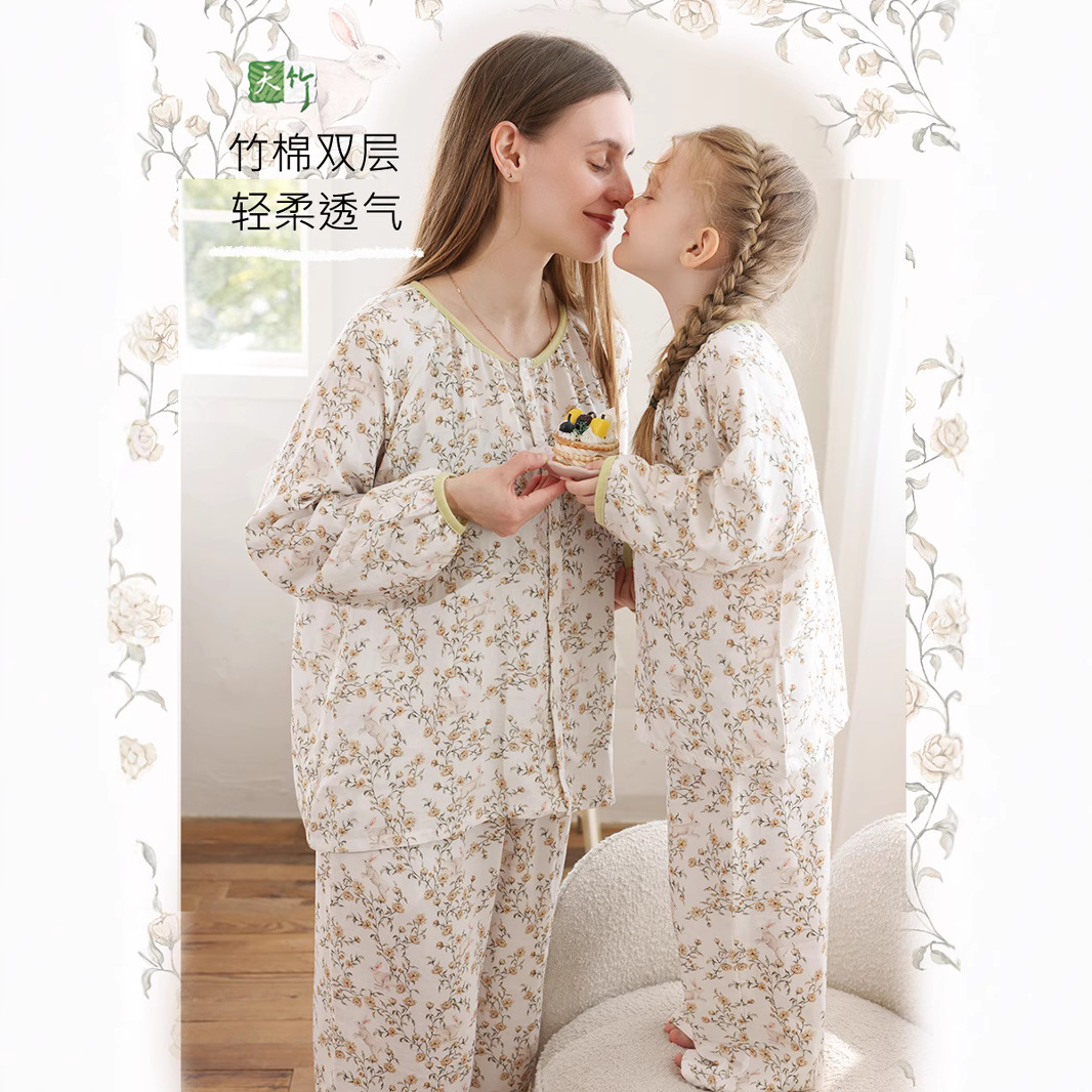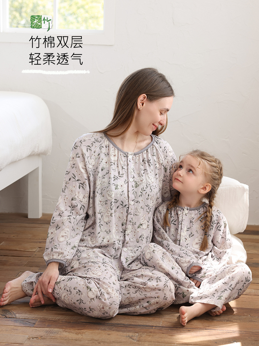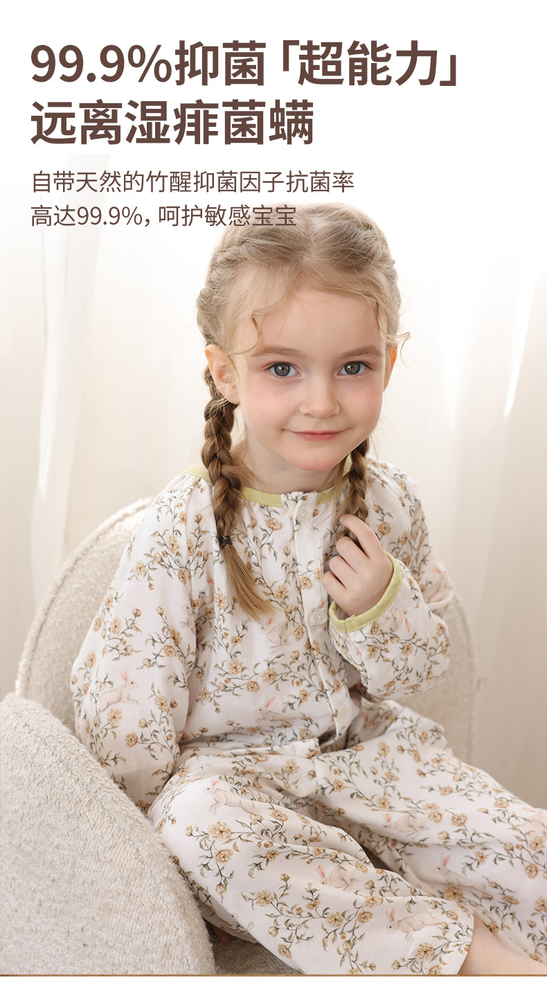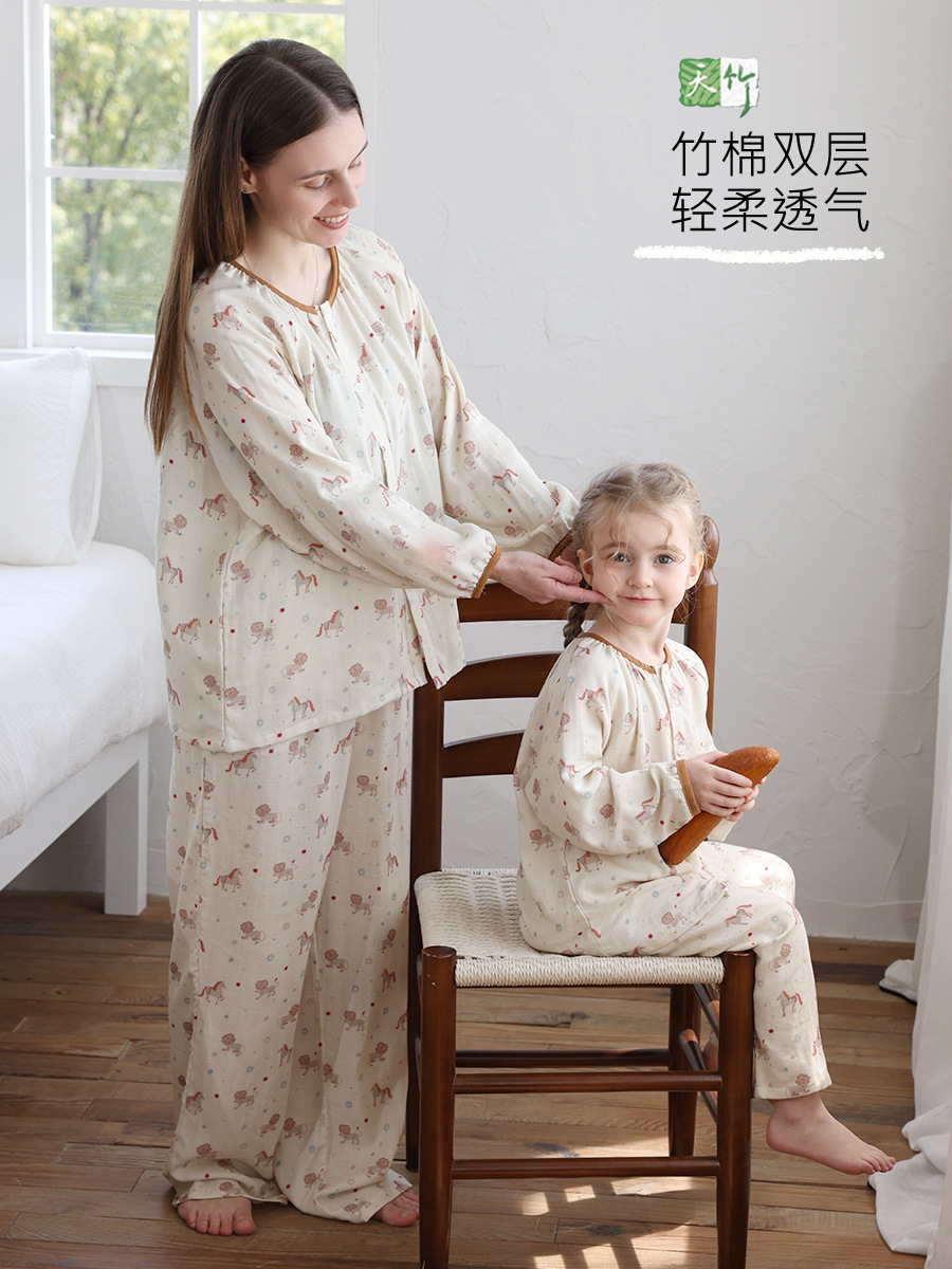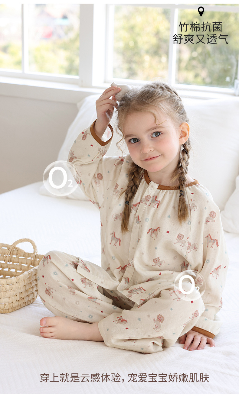 봄과 여름 대나무 면 거즈 긴팔 바지 항균 통기성 얇은 어린이 아기 소녀 임산부 에어컨 룸 홈 의류 세트