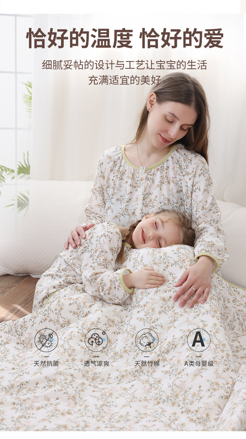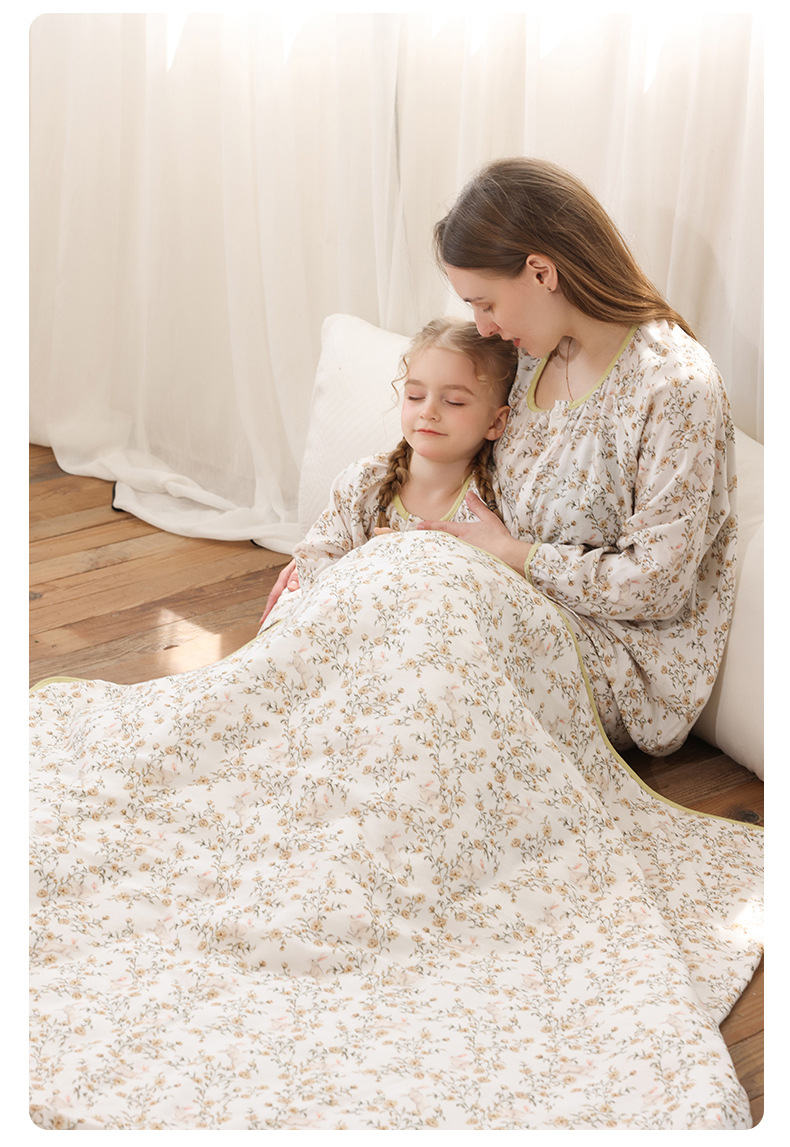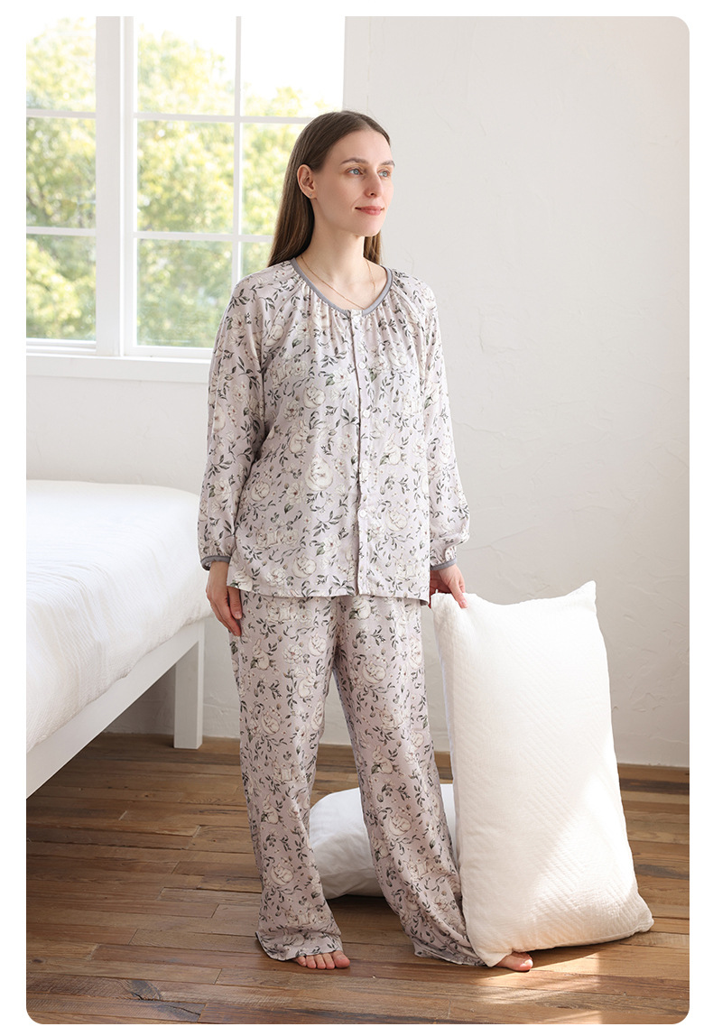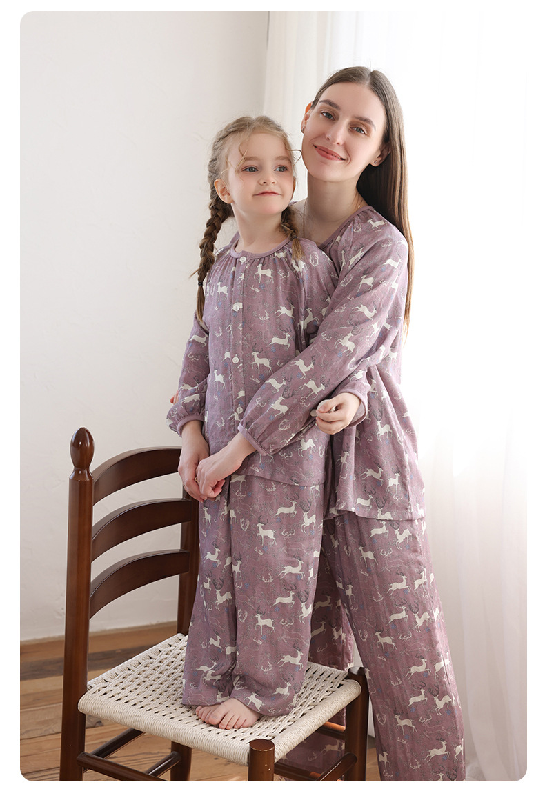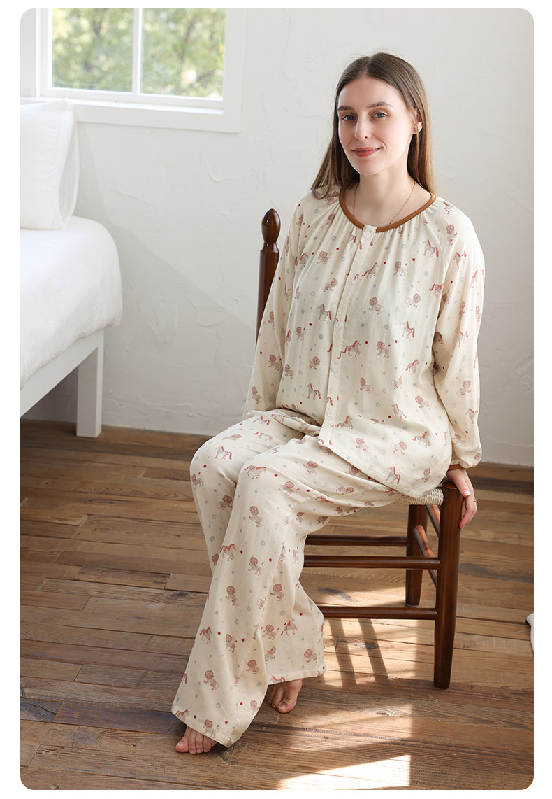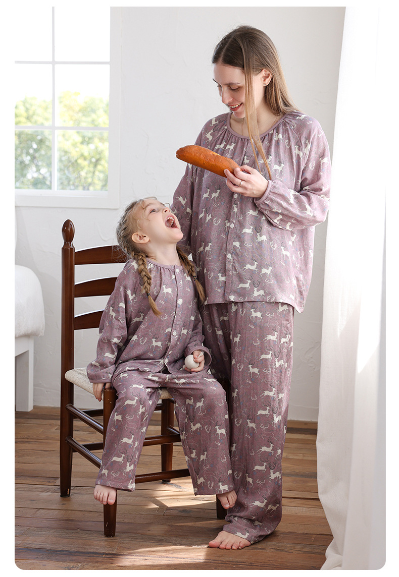 봄과 여름 대나무 면 거즈 긴팔 바지 항균 통기성 얇은 어린이 아기 소녀 임산부 에어컨 룸 홈 의류 세트