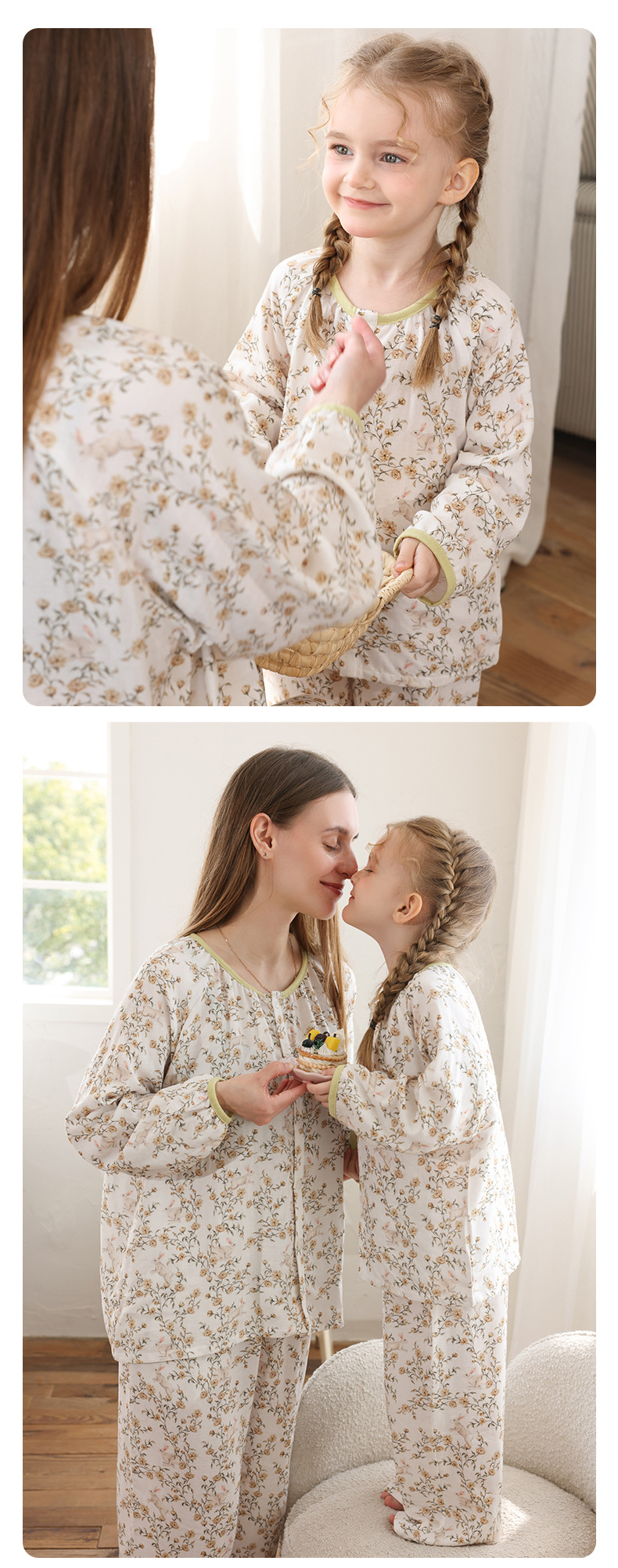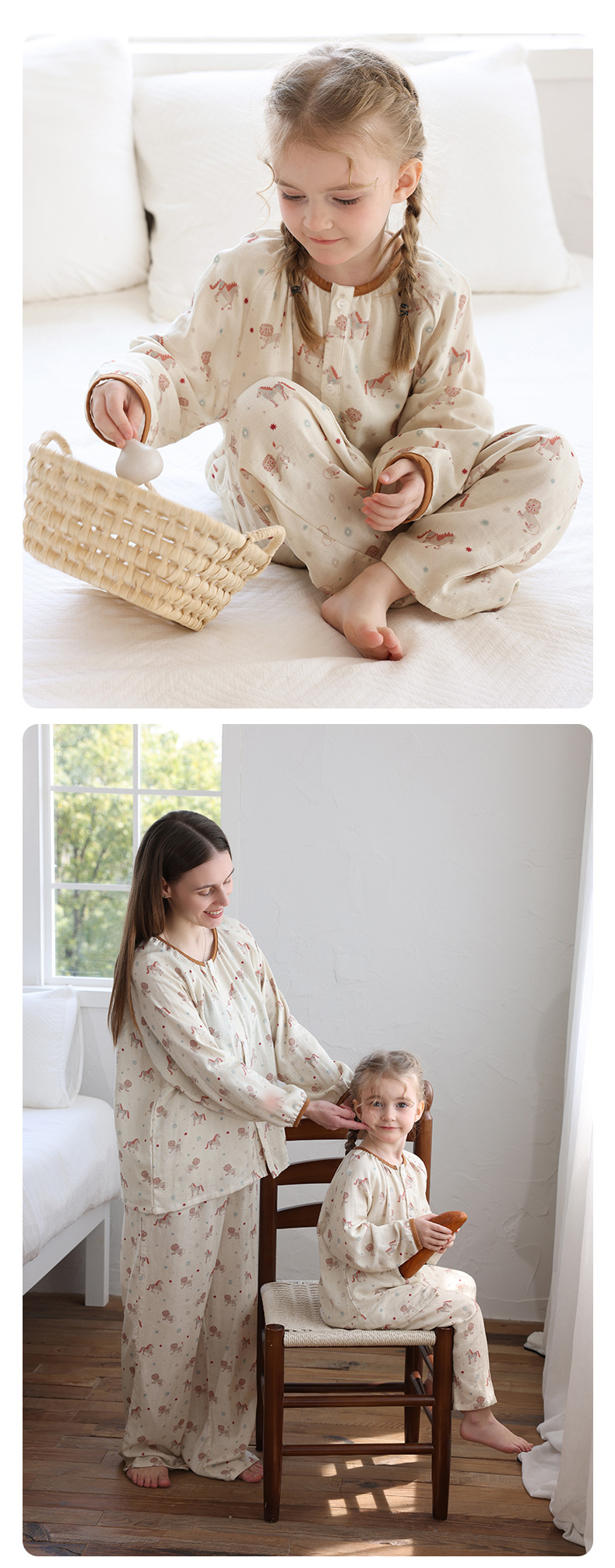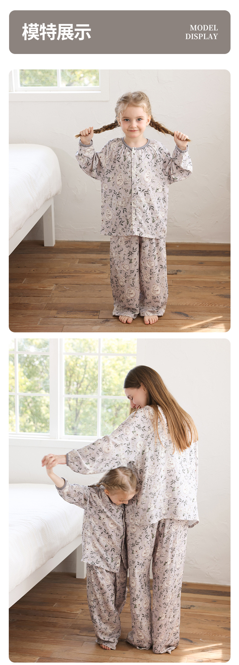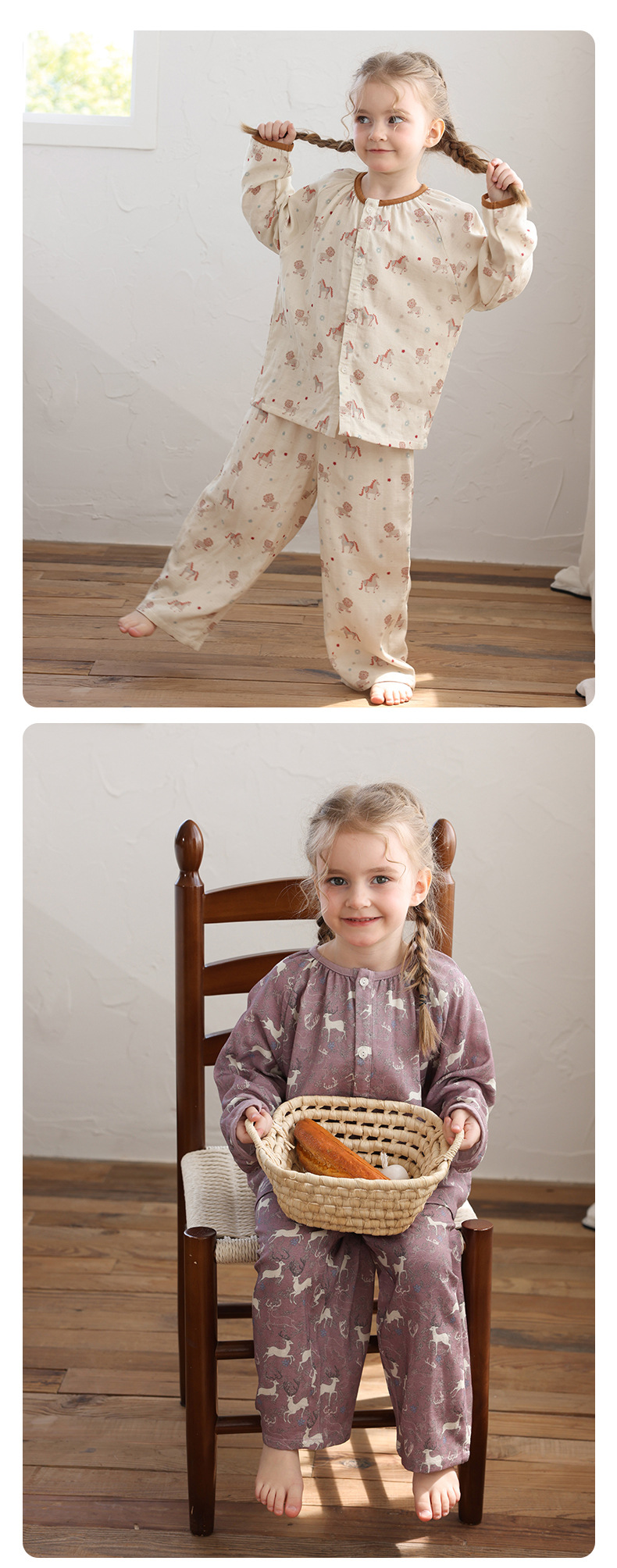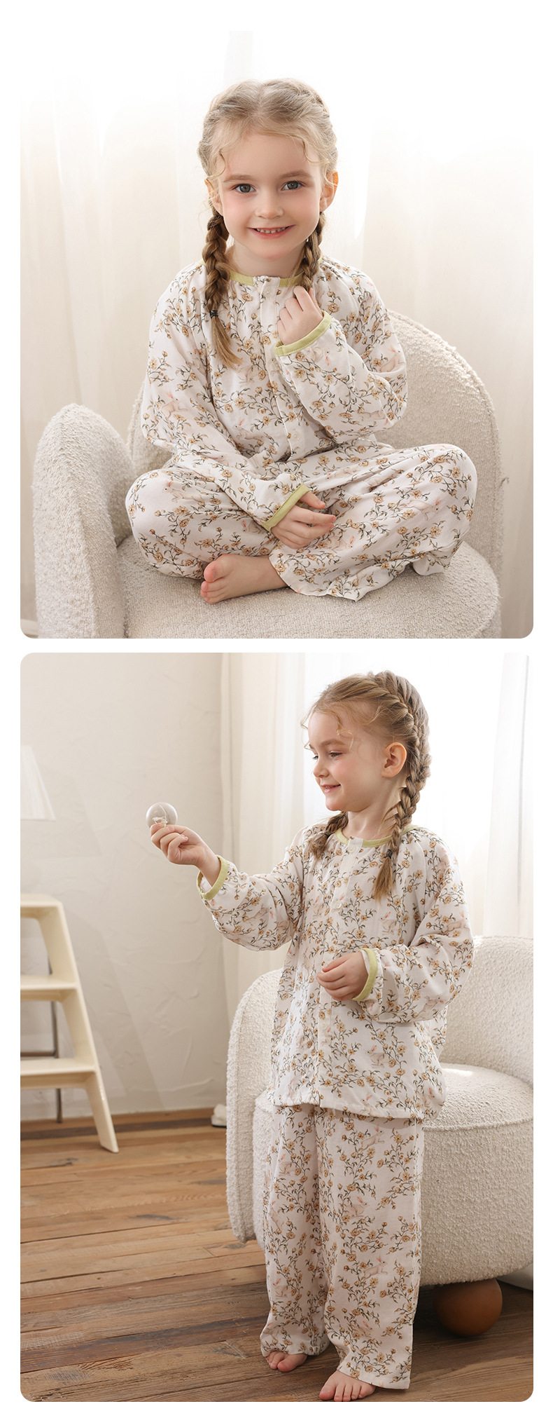 봄과 여름 대나무 면 거즈 긴팔 바지 항균 통기성 얇은 어린이 아기 소녀 임산부 에어컨 룸 홈 의류 세트