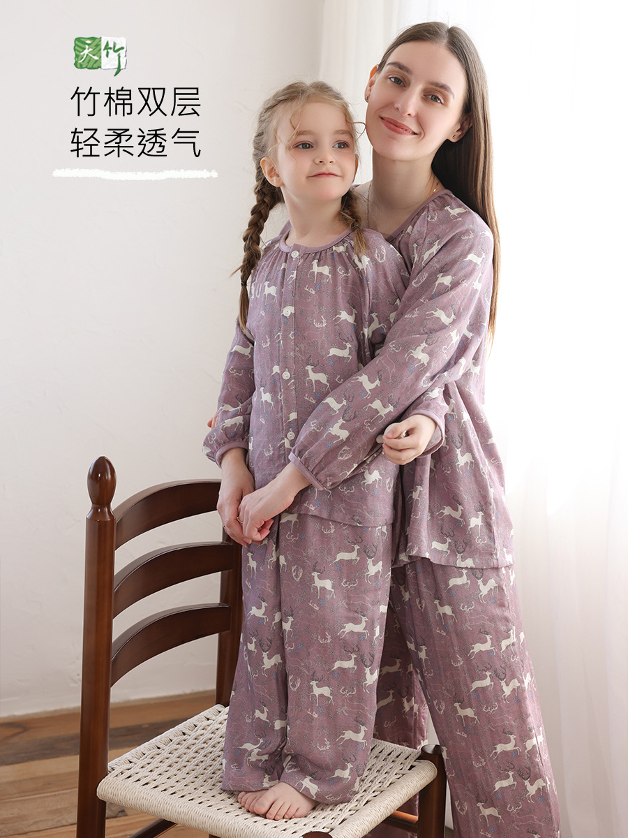 봄과 여름 대나무 면 거즈 긴팔 바지 항균 통기성 얇은 어린이 아기 소녀 임산부 에어컨 룸 홈 의류 세트스토어 가기