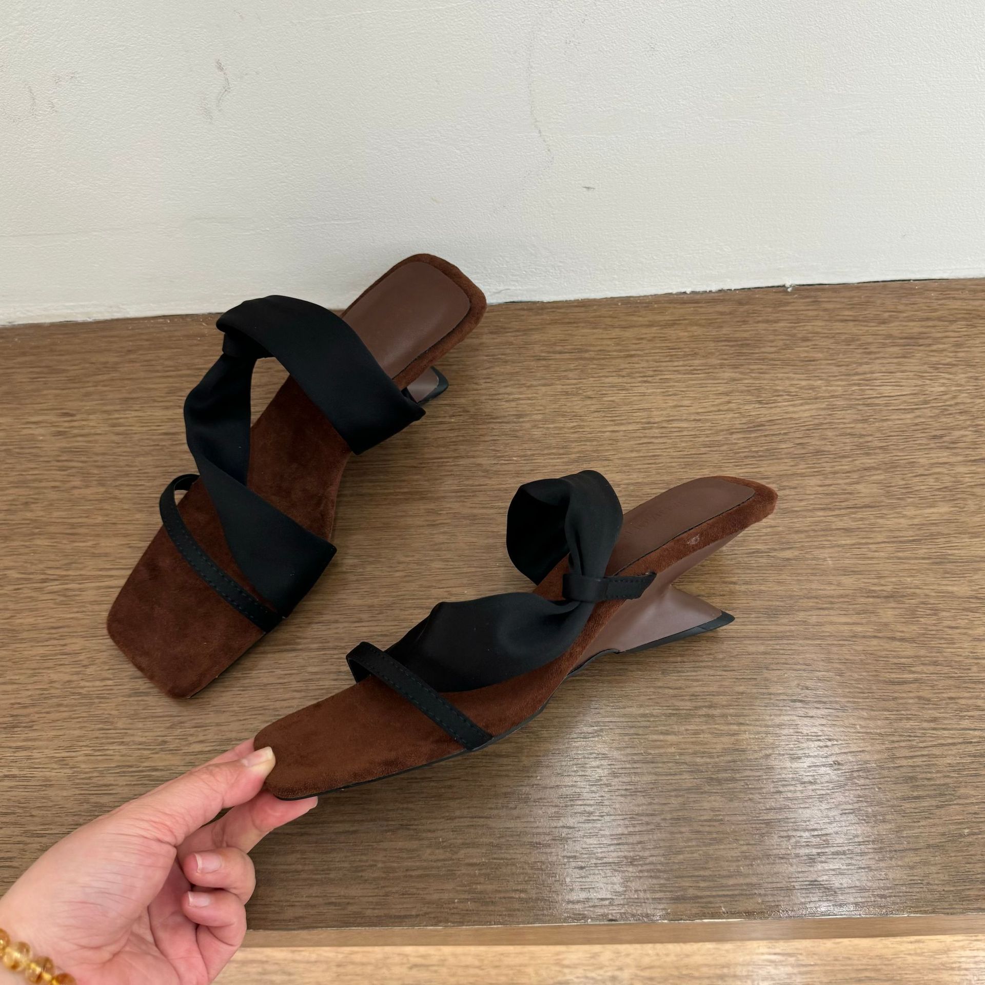 스트랩 샌들, 프렌치 포인티드 토 니치 샌들, 여성 아우터용 블랙 스틸레토 힐, 2025 여름 신상 슬리퍼