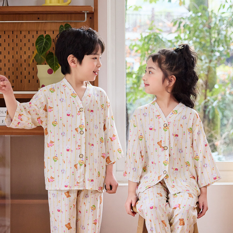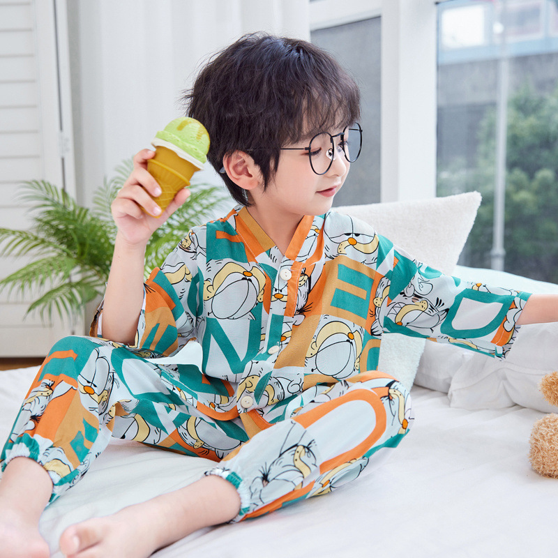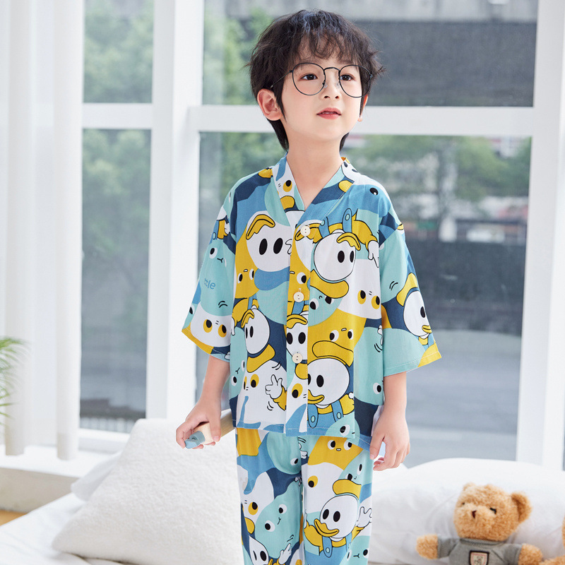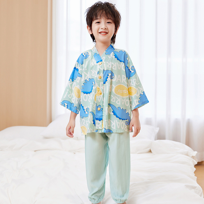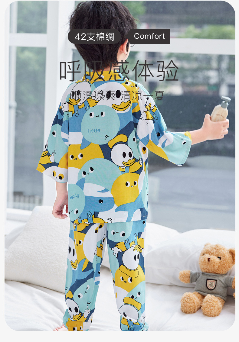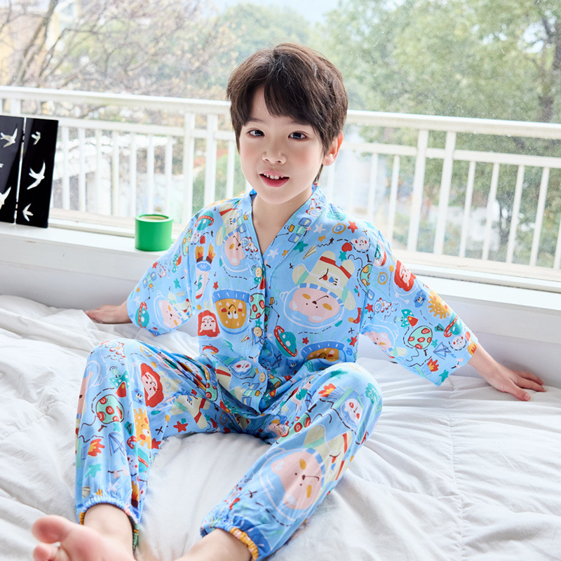 아동용 여름 얇은 잠옷 세트, 면 실크 7부 소매, 남아용, 중대형 아동용, 유아용 가정복, 여아용 에어컨 의류스토어 가기