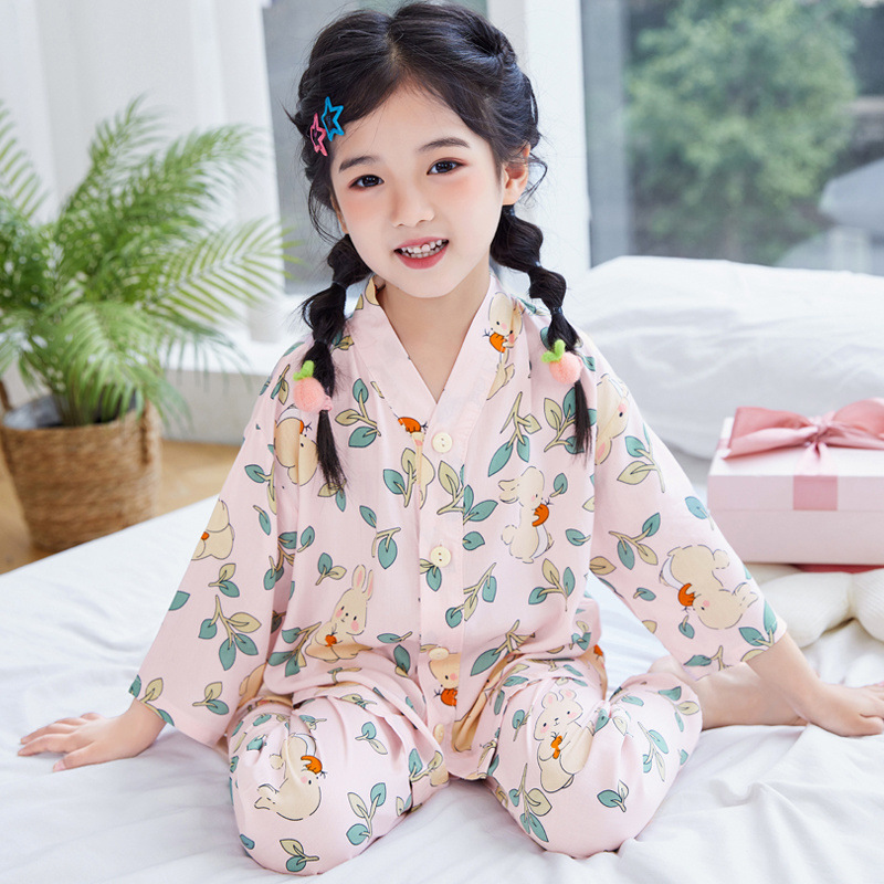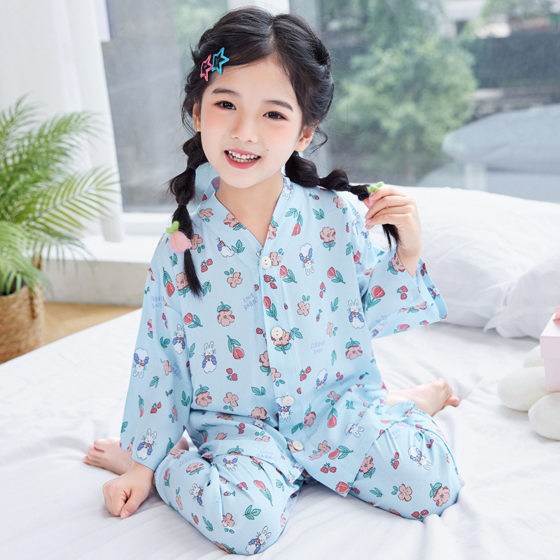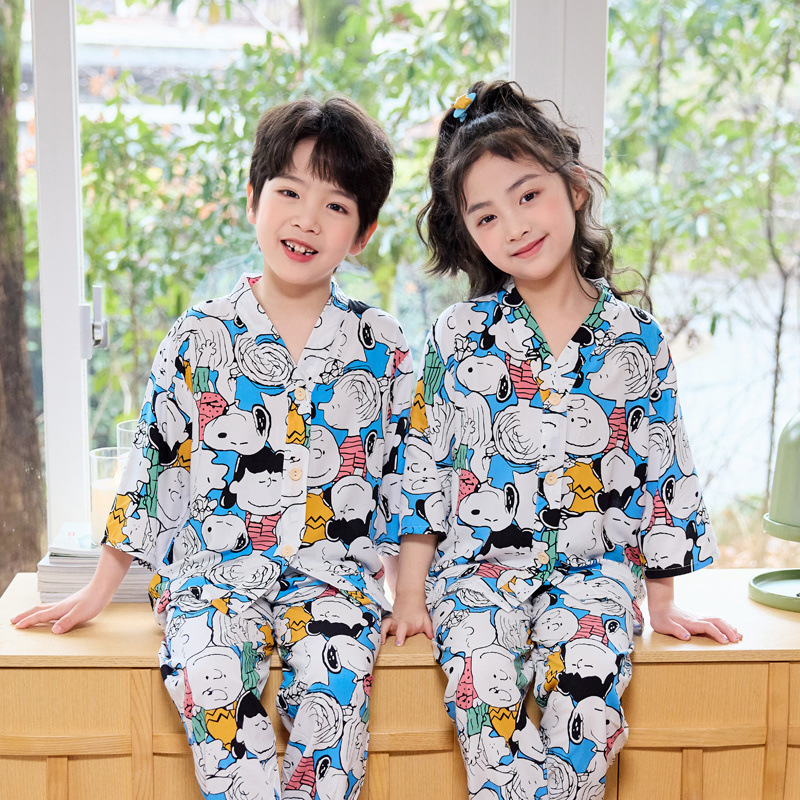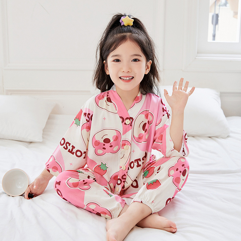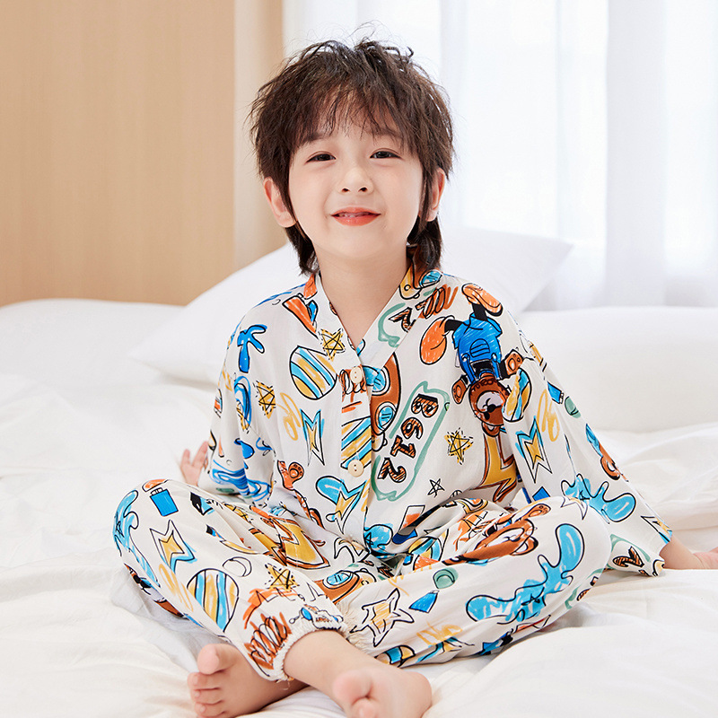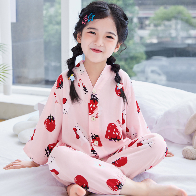 아동용 여름 얇은 잠옷 세트, 면 실크 7부 소매, 남아용, 중대형 아동용, 유아용 가정복, 여아용 에어컨 의류스토어 가기