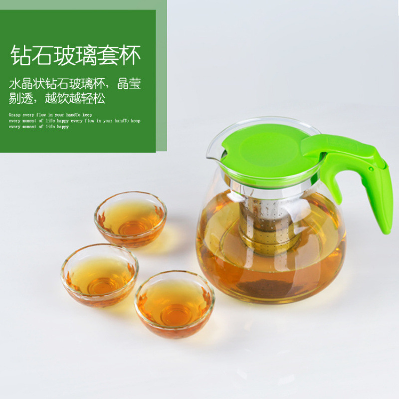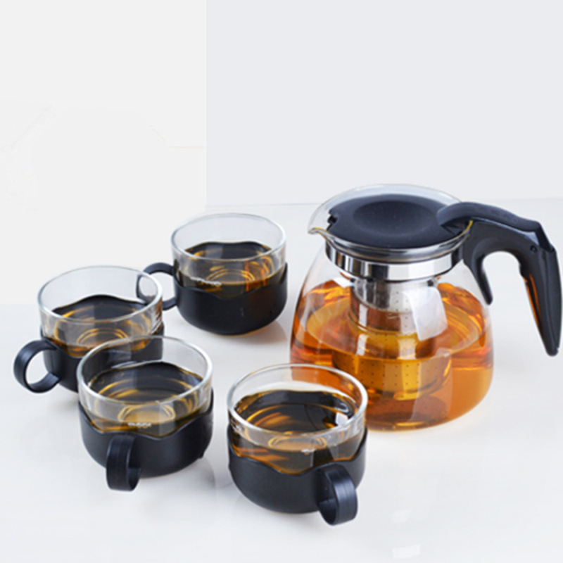 티 바 기계 절연 대용량 꽃 주전자 내열 유리 주전자 스테인레스 스틸 필터 차 세트 엄격한 설정.