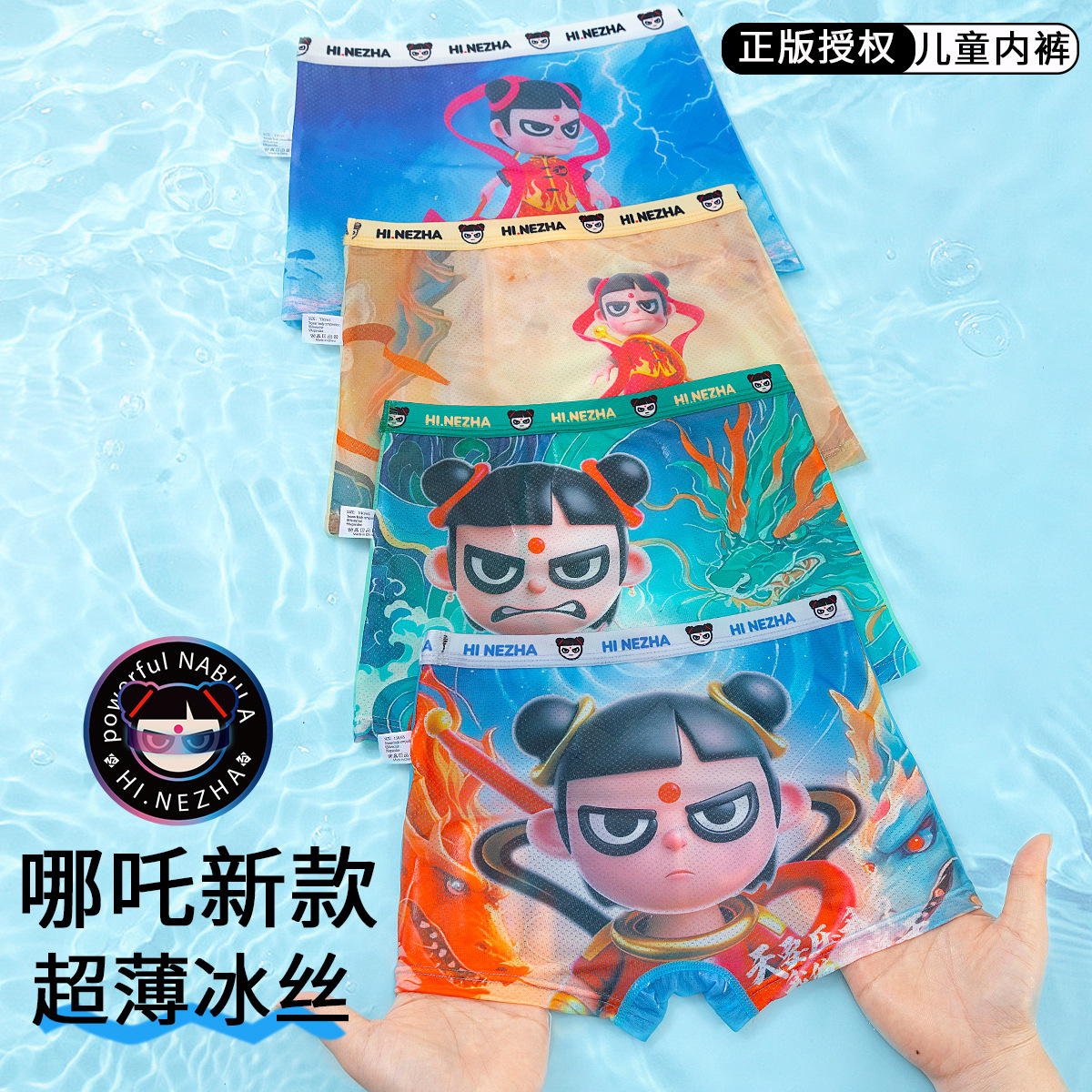 정품 Nezha 전설 어린이 속옷 소년 복서 얼음 실크 통기성 메쉬 구멍 아기 어린 소년 반바지 사각형스토어 가기
