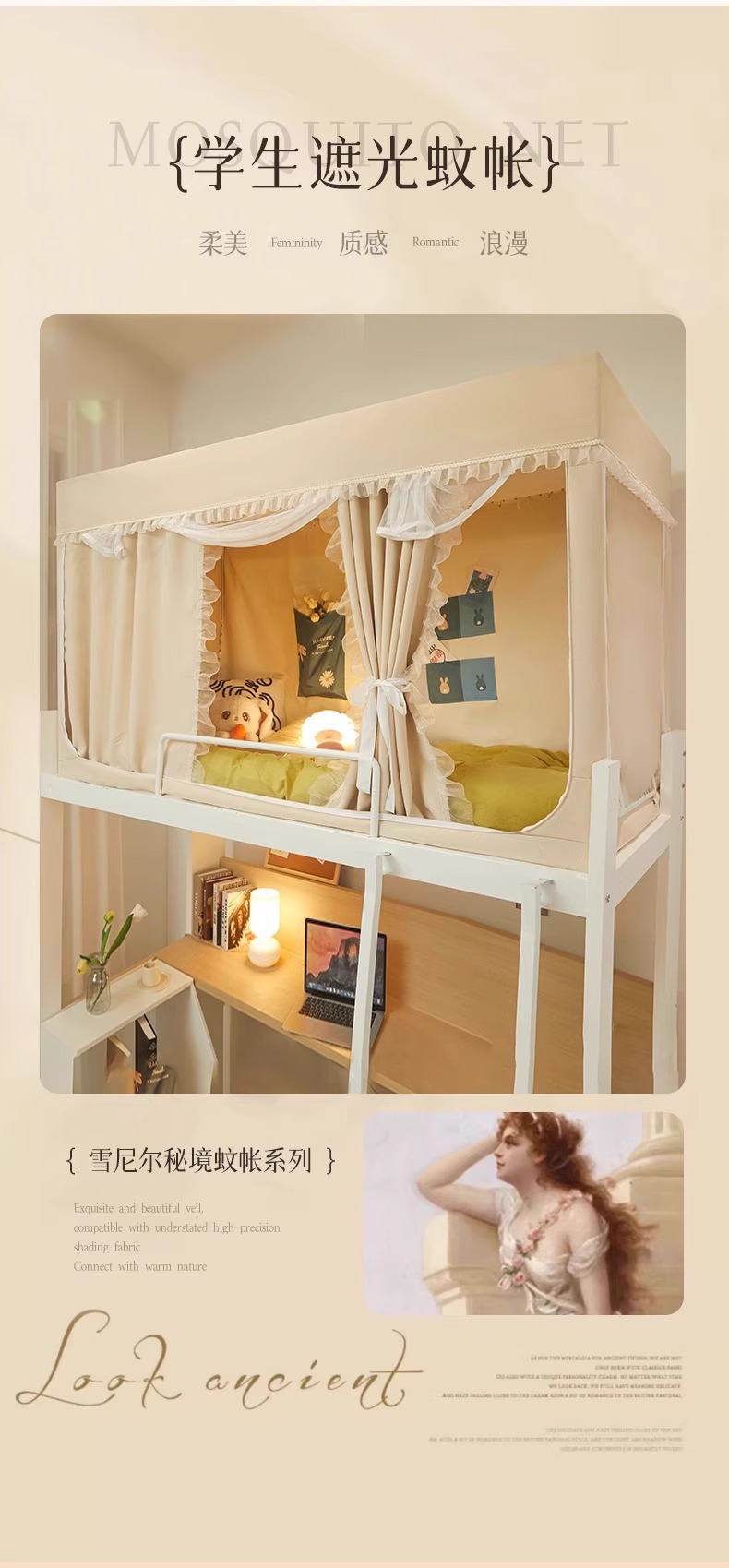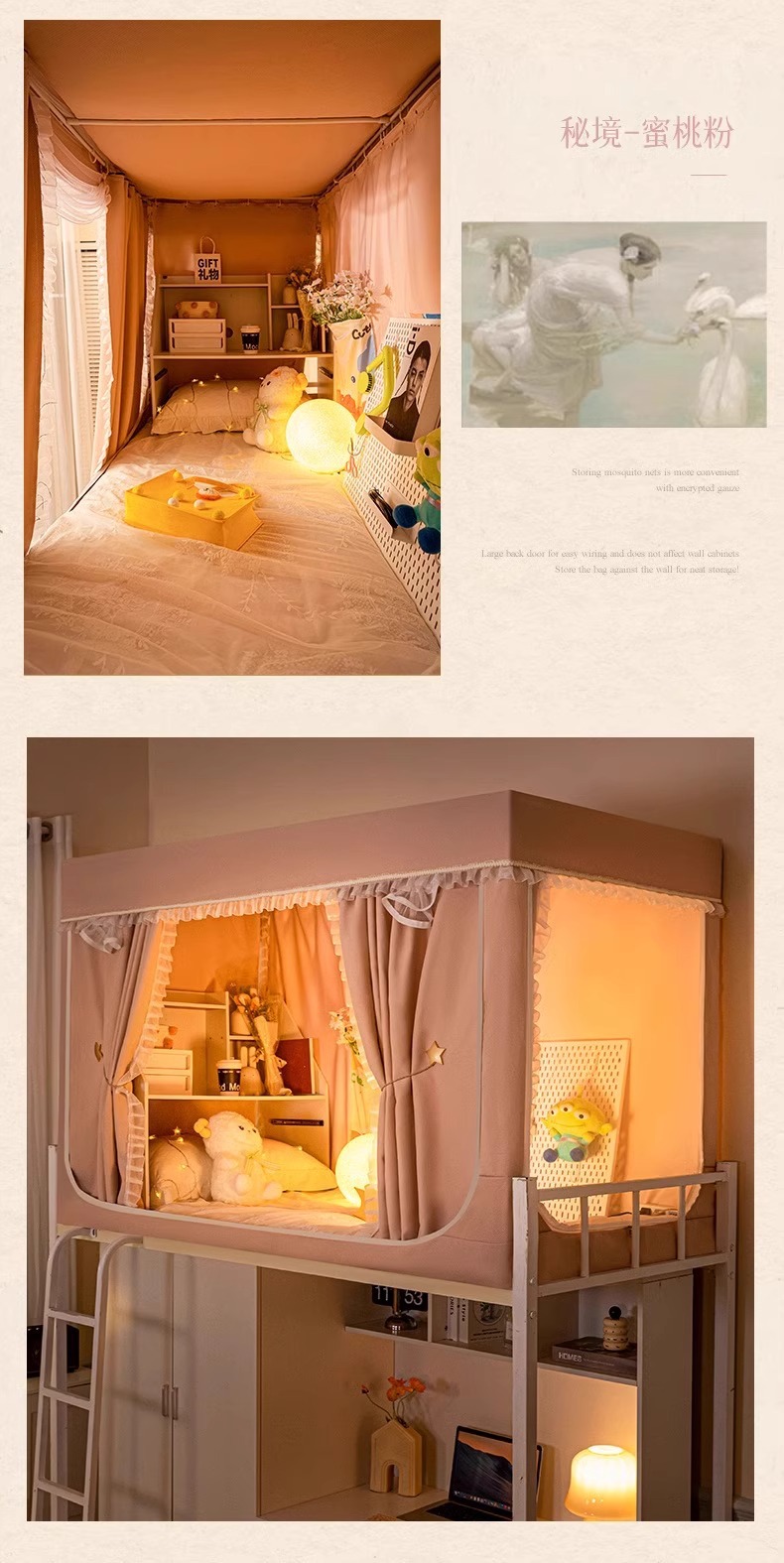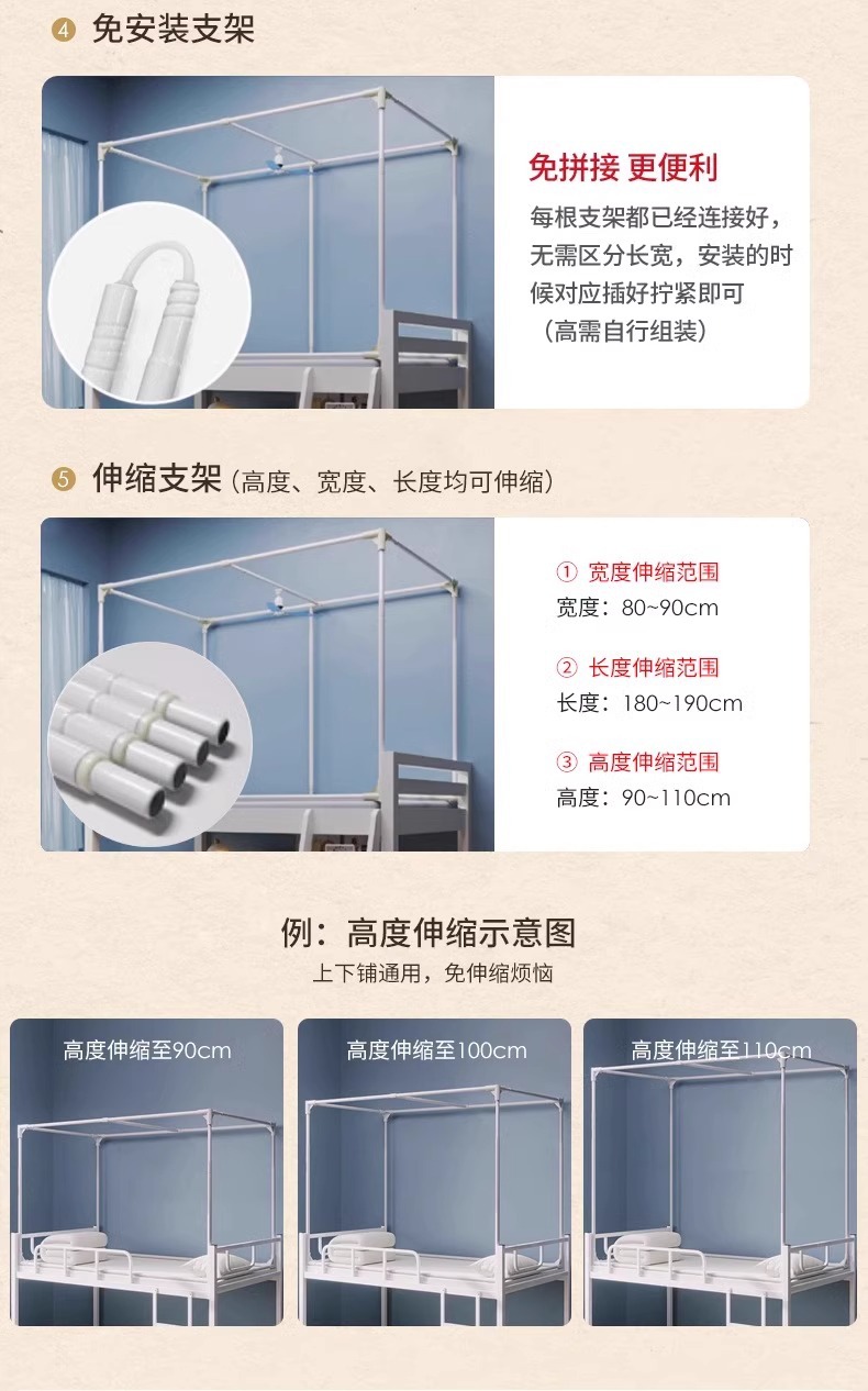 강력한 차광 학생 기숙사 상하 범용 모기장 일체형 침대 커튼 2025 신형 싱글 침대 커튼스토어 가기
