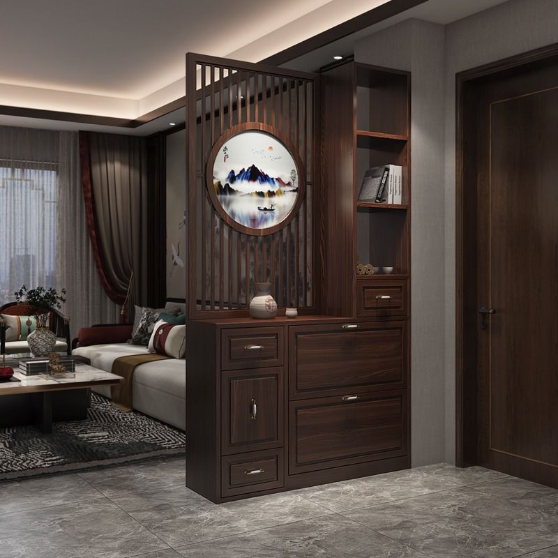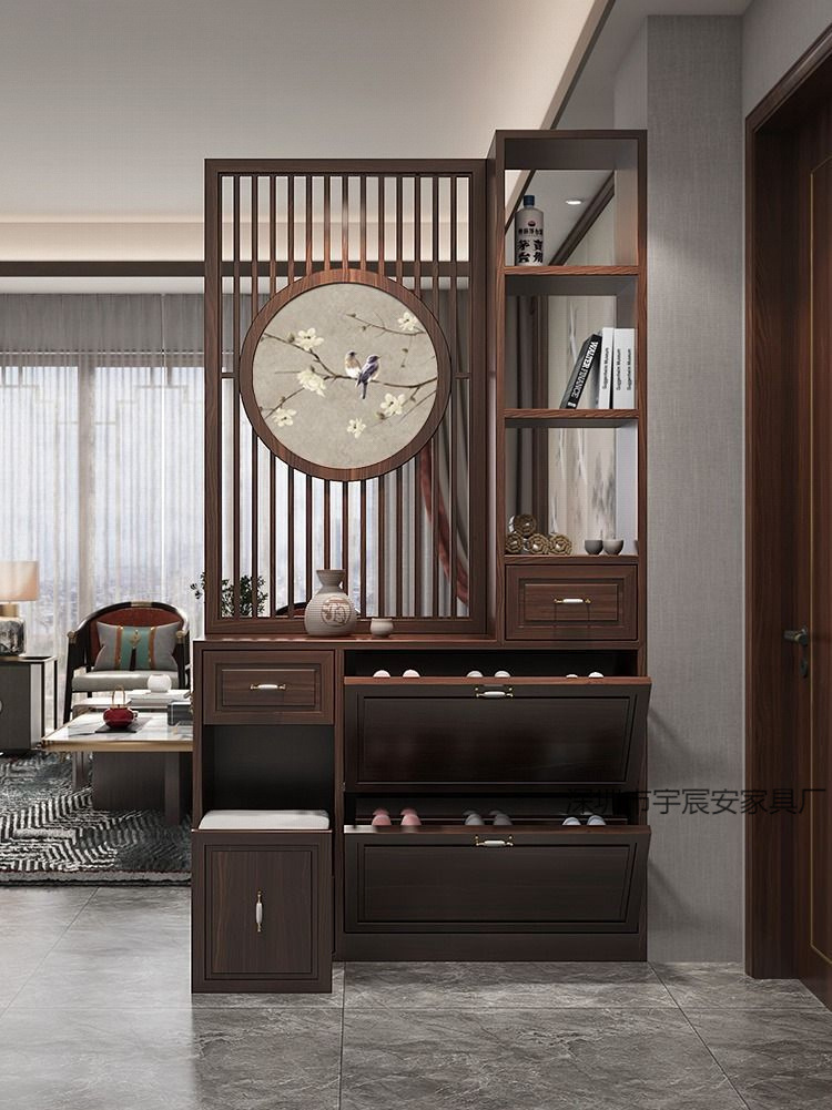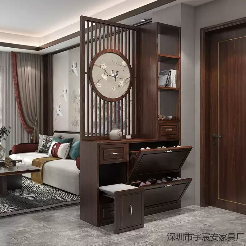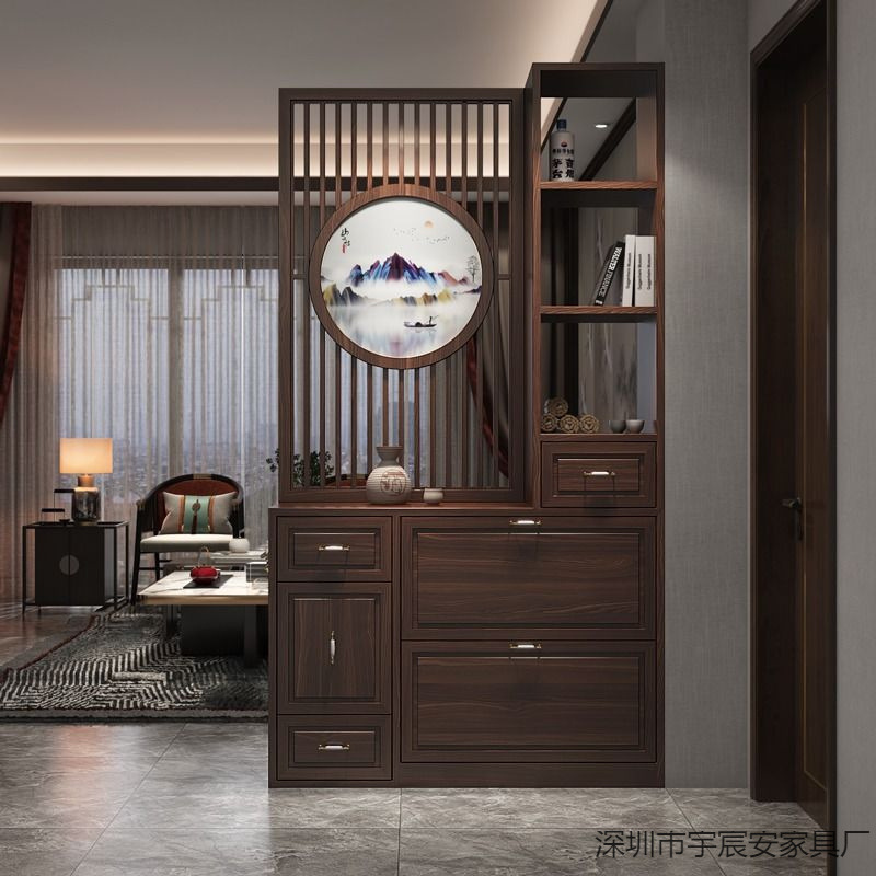 새로운 중국 스타일 스크린 파티션 거실 단단한 나무 등나무 현대 간단한 가정용 차단 입구 문에 직면하는 현관 신발 캐비닛