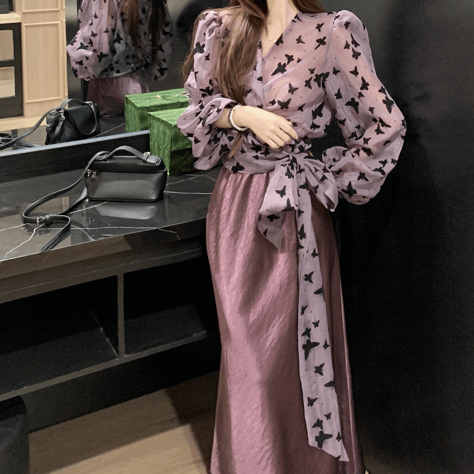• 보라색 상의 + 보라색 스커트