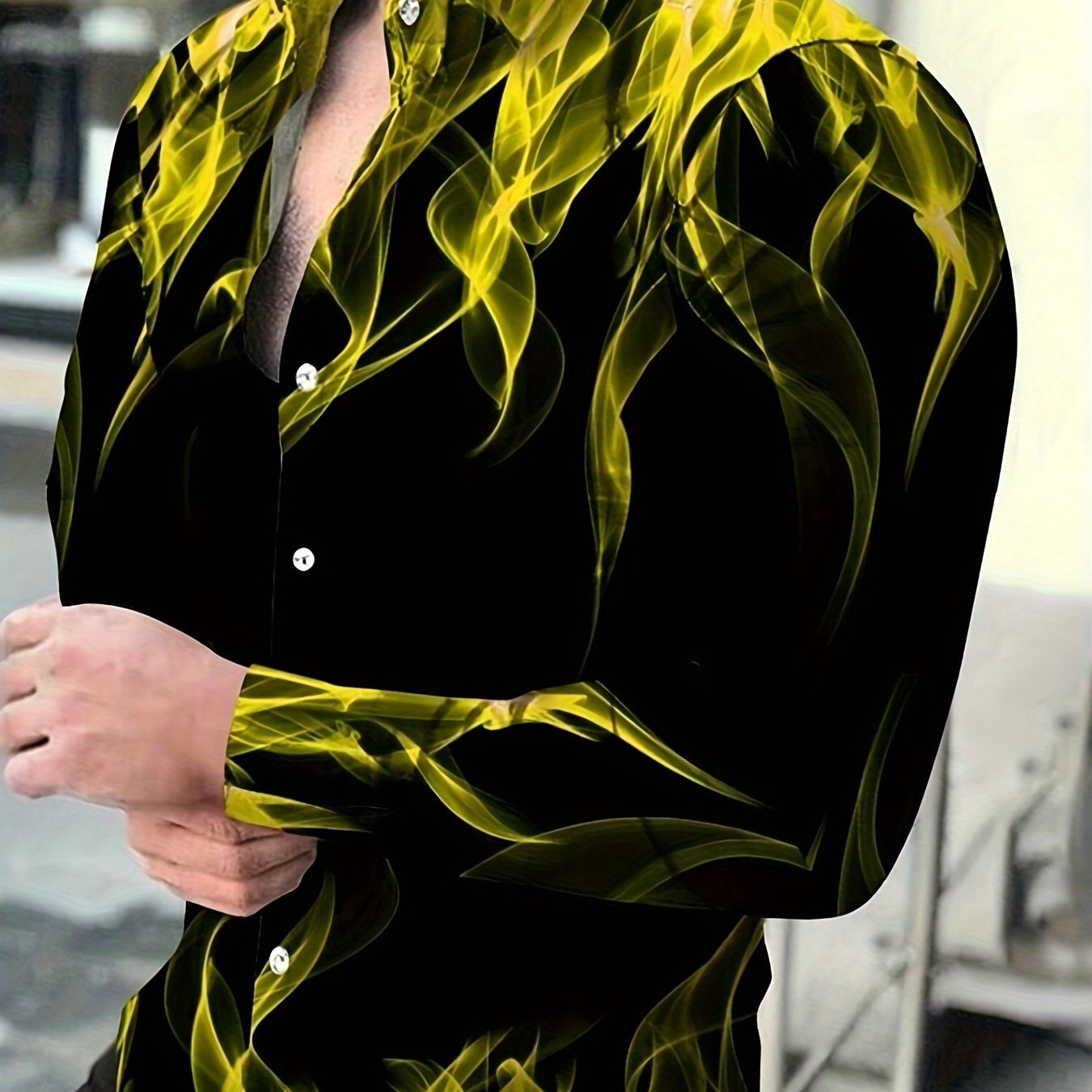 패션 불꽃 패턴 셔츠 봄 가을 패션 남성 크로스보더스토어 가기