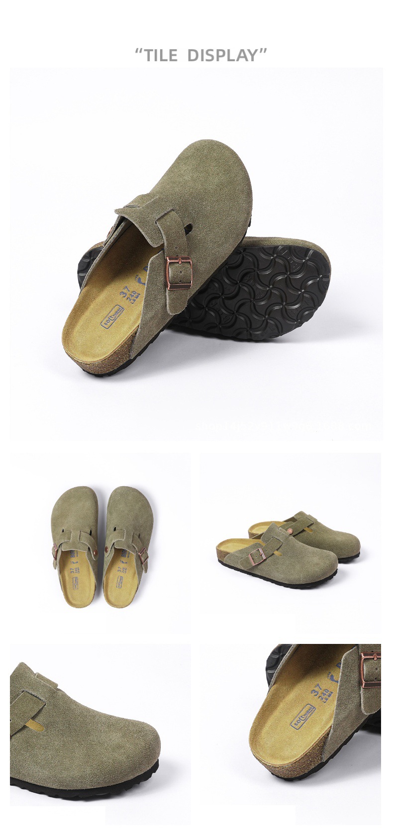 정품 가죽 Birkenth 신발 남성과 여성의 하프 슬리퍼 여성용 겉옷 코르크 두꺼운 밑창 Cowhide 캐주얼 좁은 크기의 Birkenth 슬리퍼