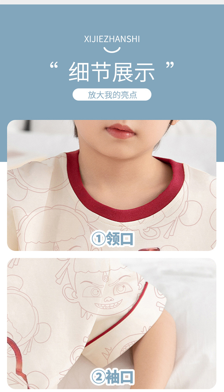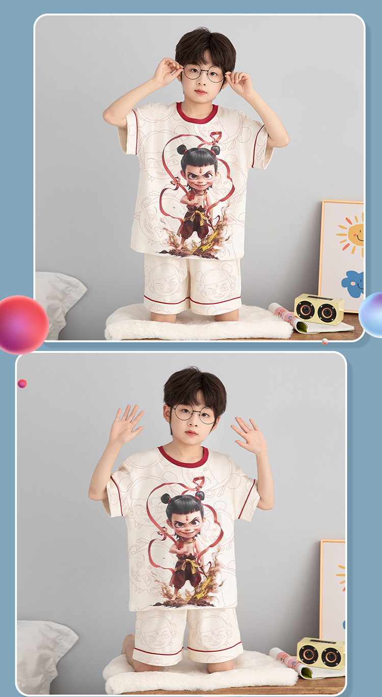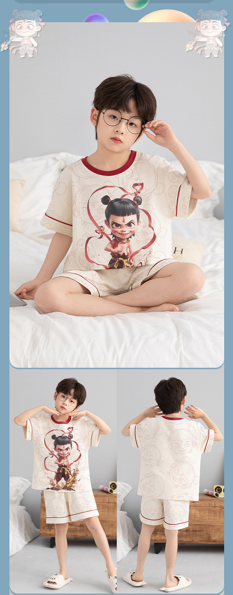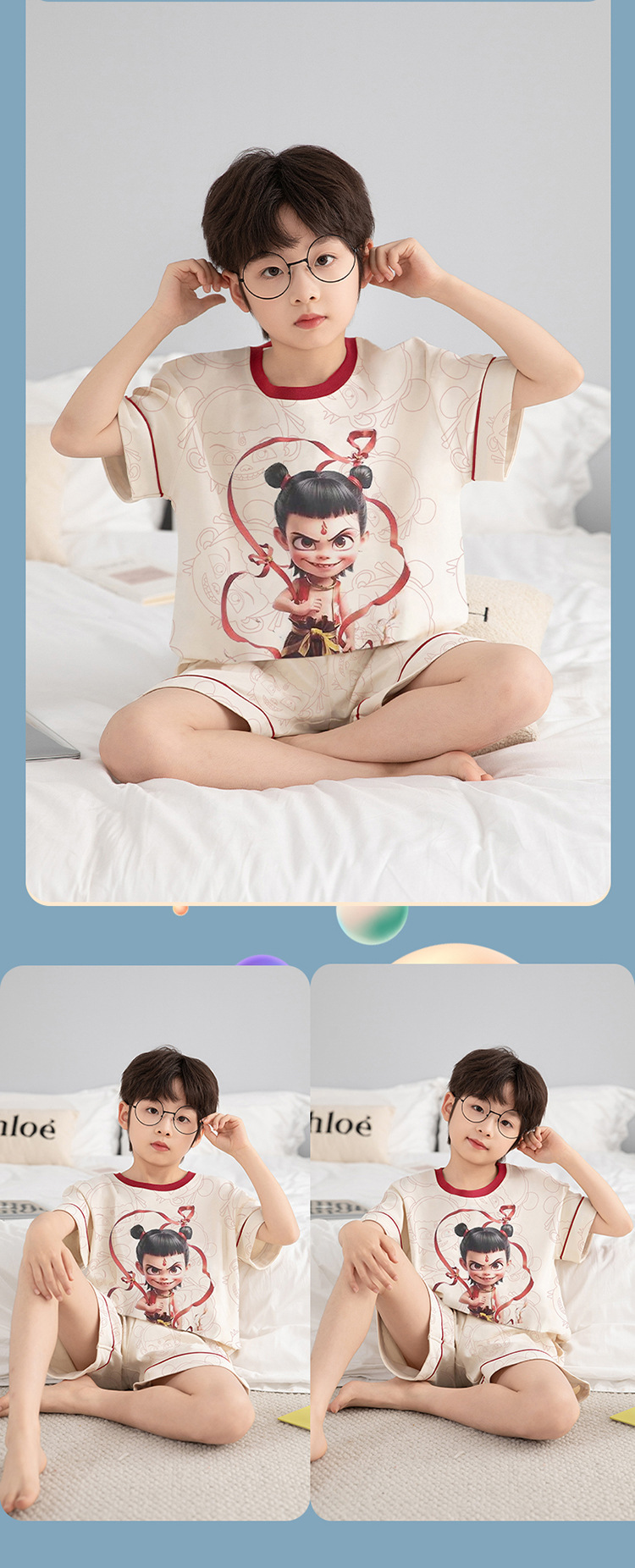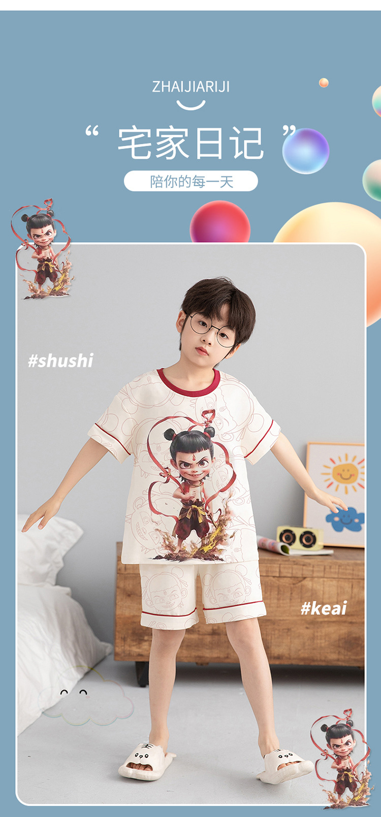 소년 잠옷 여름 순면 반팔 얇은 어린이 소년 2025 새로운 스타일 청소년 중학생 면 100%스토어 가기