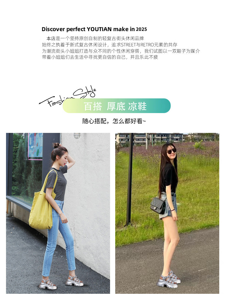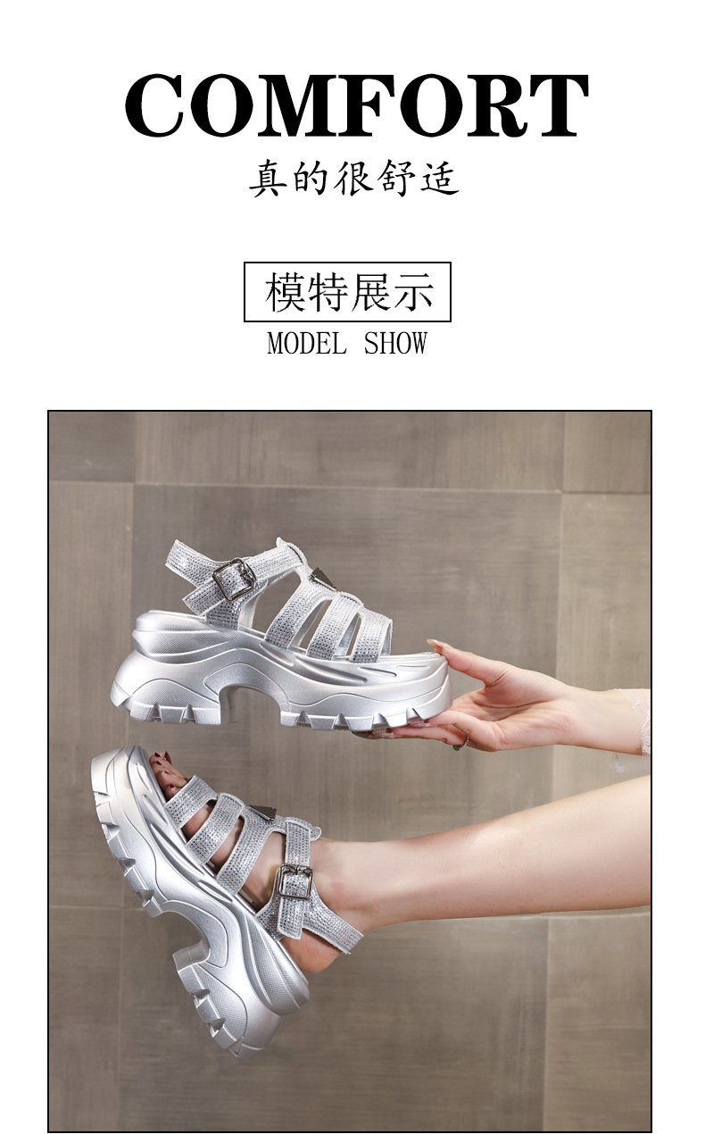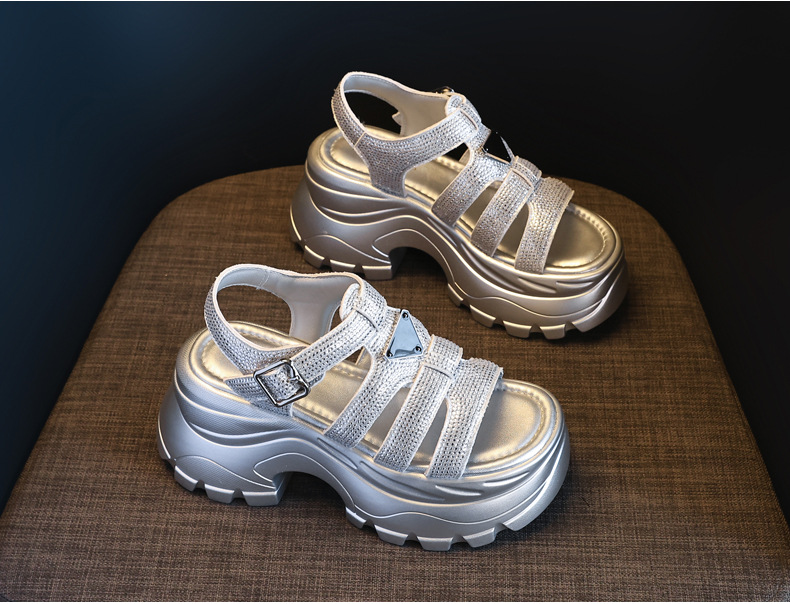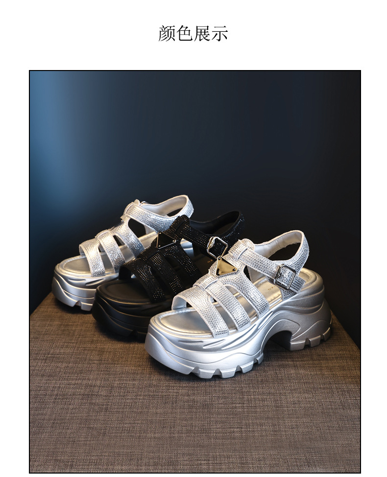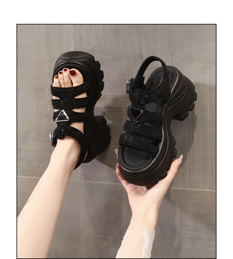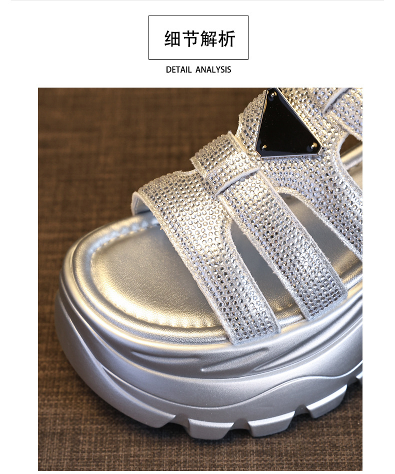 HS3258-9 작은 두꺼운 바닥 높이 증가 패션 라인스톤 샌들 여성 2025 년 여름 새로운 스타일 플랫폼 비치 슈즈스토어 가기