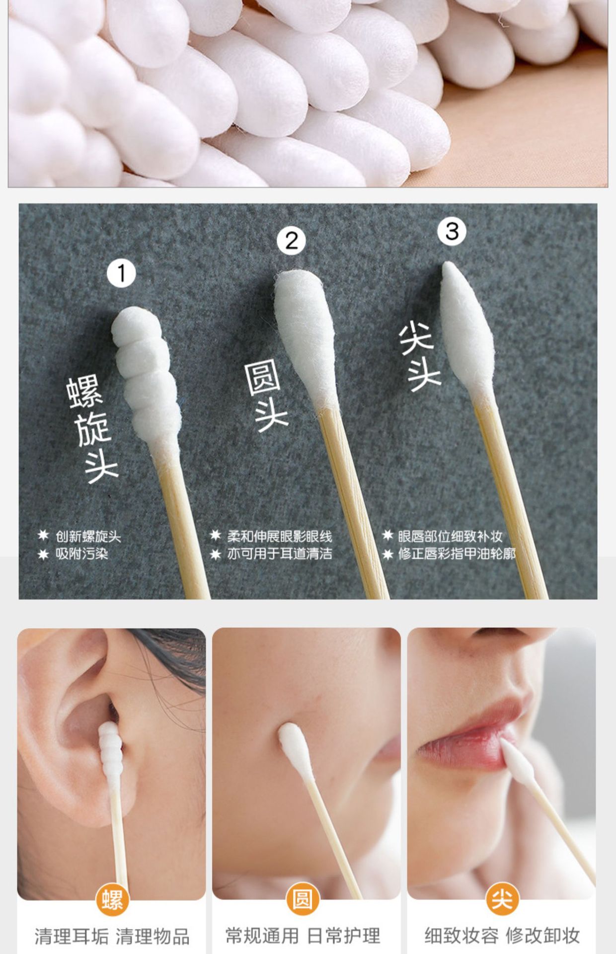 귀를 위한 양면 면봉, 일회용 생리대, 청소용 귀이개, 나무스틱, 면봉, 나선형 면봉스토어 가기