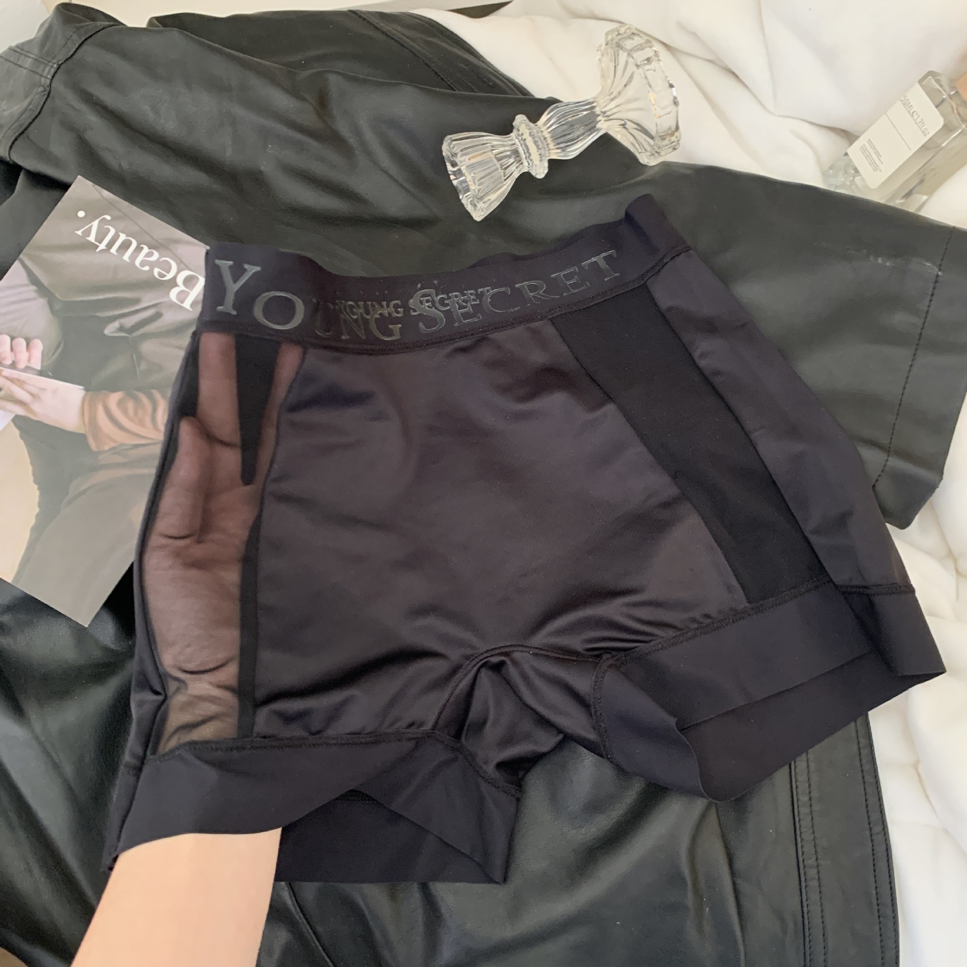 중간 허리 아이스 실크 복서 안전 바지 미끄럼 방지 새틴 빠른 건조 편지 메쉬 재단 액체 뽕나무 실크 크로트 팬티 여성