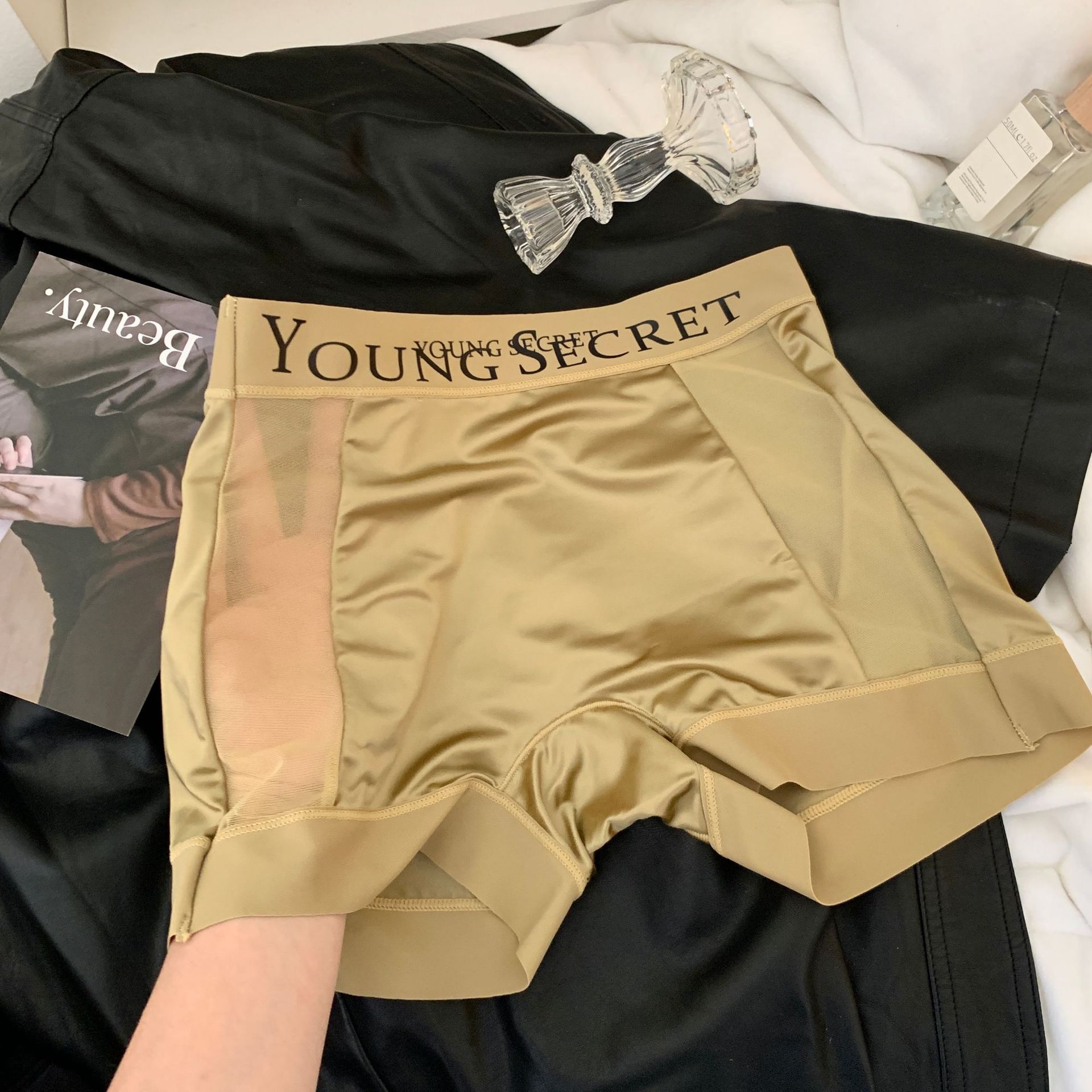 중간 허리 아이스 실크 복서 안전 바지 미끄럼 방지 새틴 빠른 건조 편지 메쉬 재단 액체 뽕나무 실크 크로트 팬티 여성스토어 가기