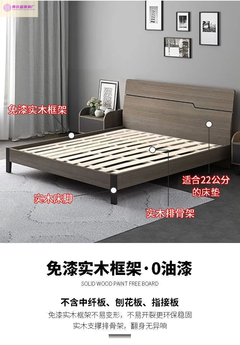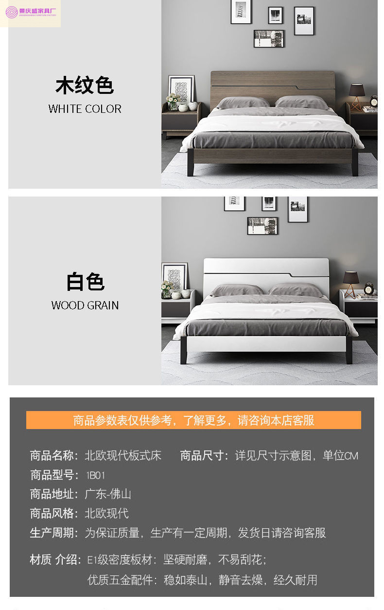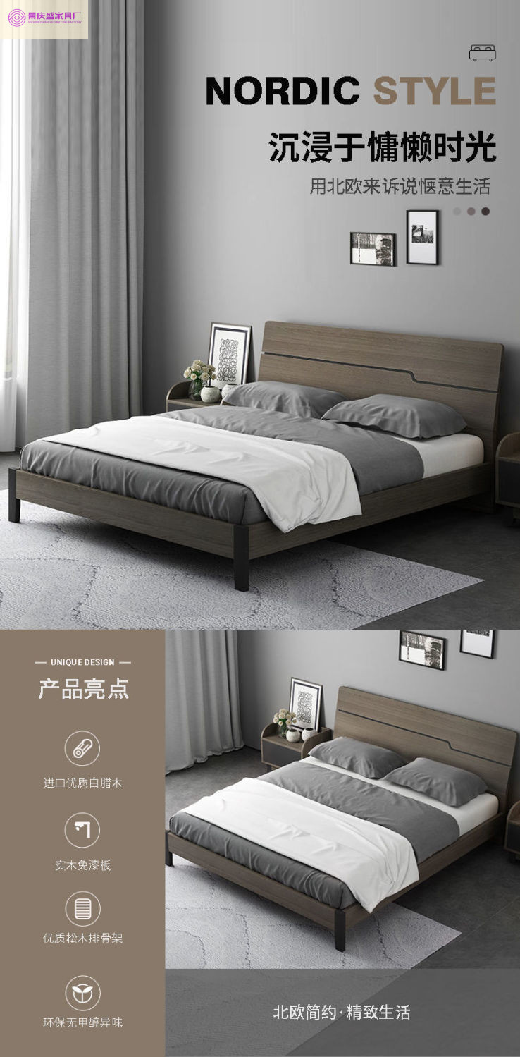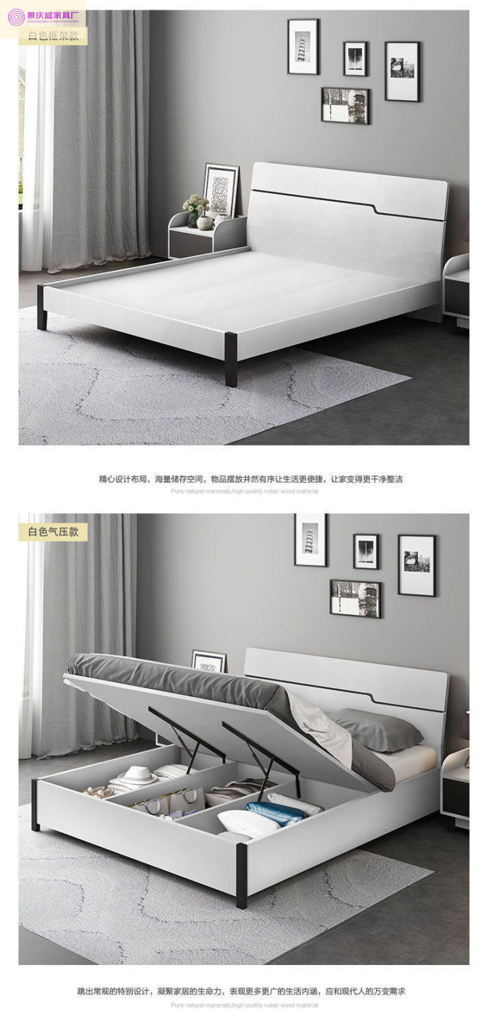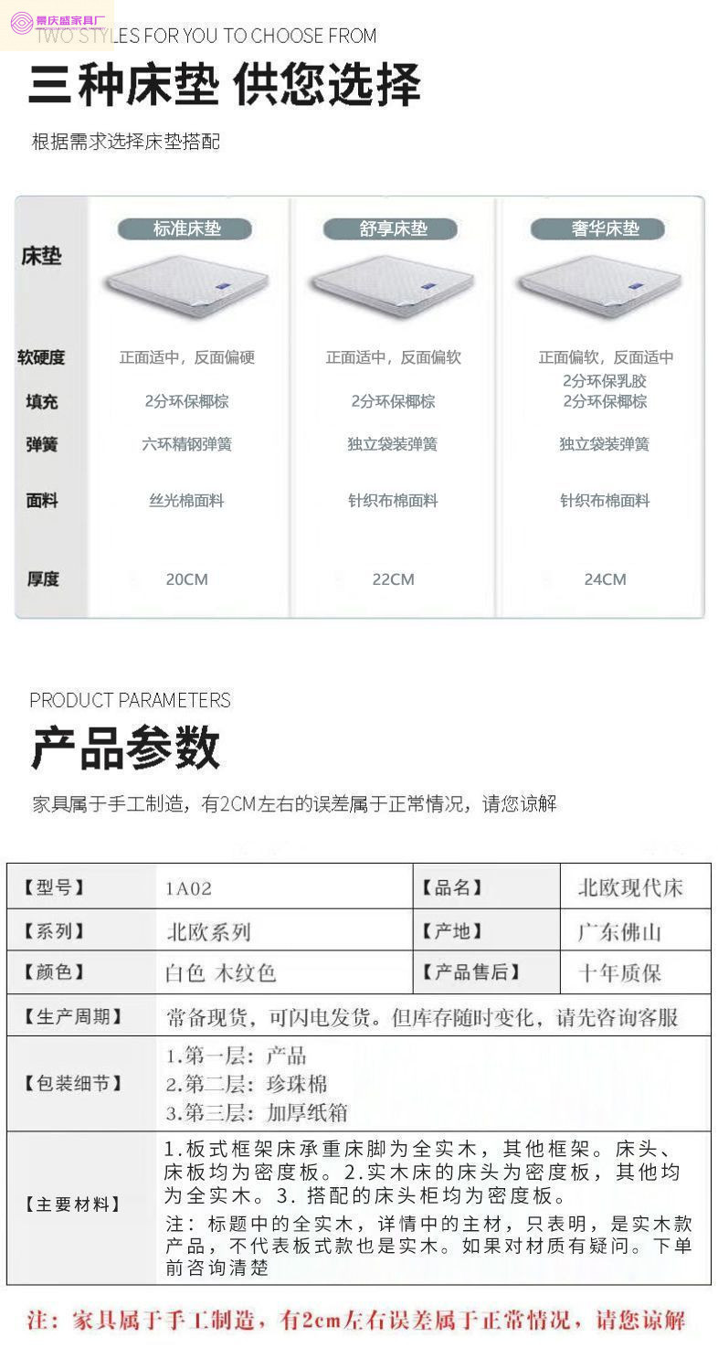 2025 새로운 북유럽 스타일 Foshan 모든 단단한 나무 1.8m 마스터 침실 더블 침대 1.5m 거실 웨딩 침대 간단하고 분위기스토어 가기
