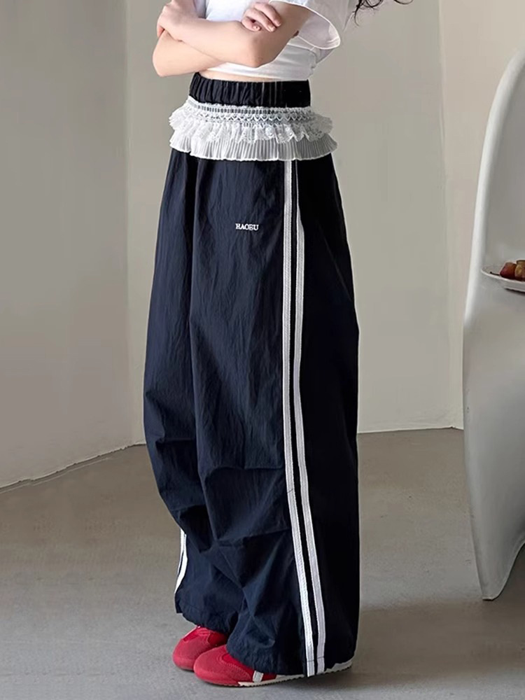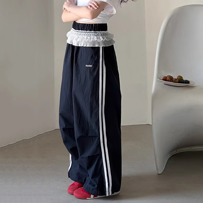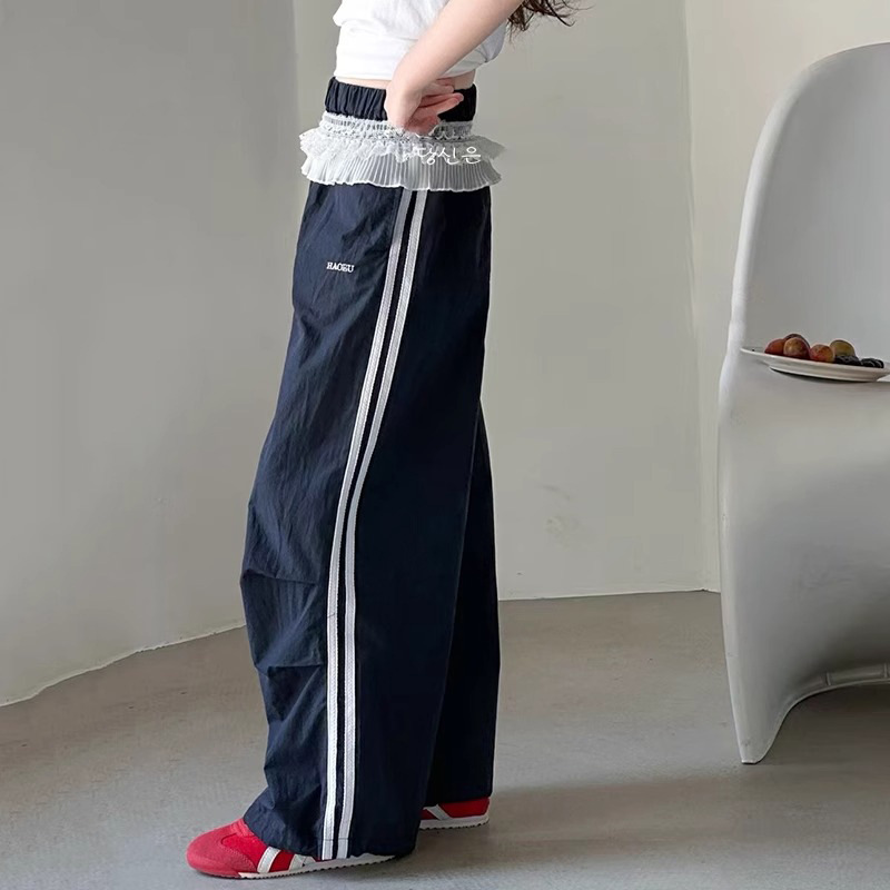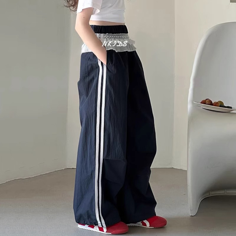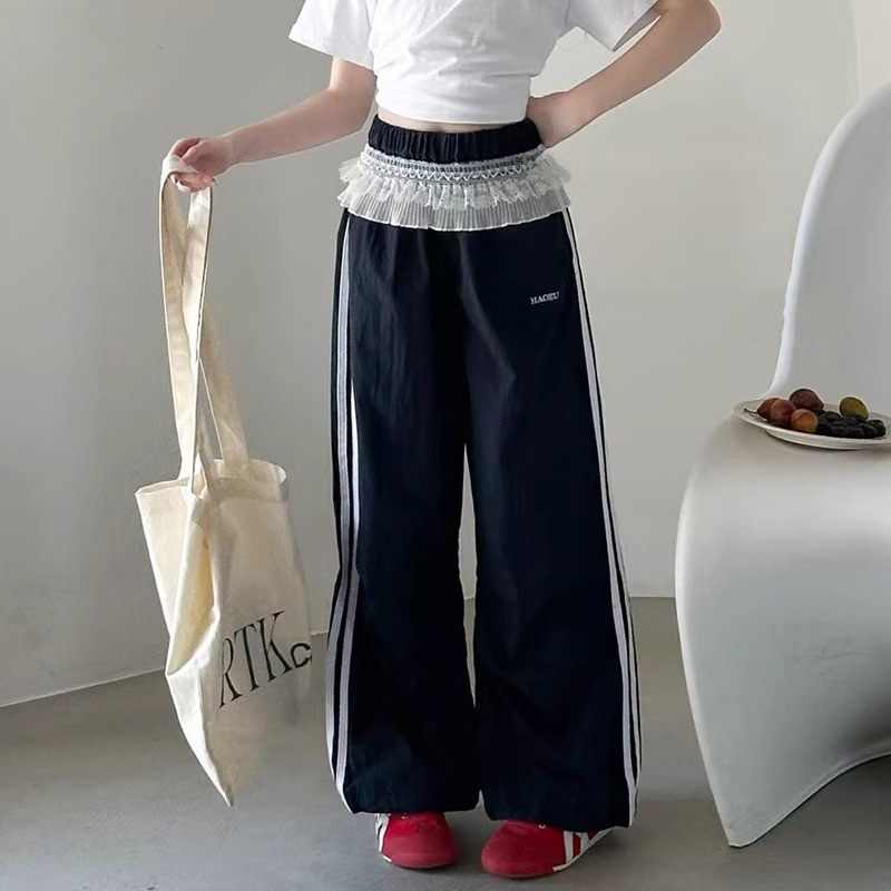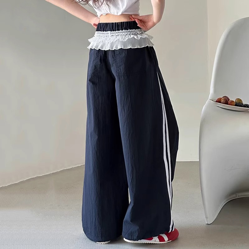 여자 캐주얼 바지 여름 2025 새로운 어린이 여름 속건 스포츠 바지 여자 느슨한 넓은 다리 바지