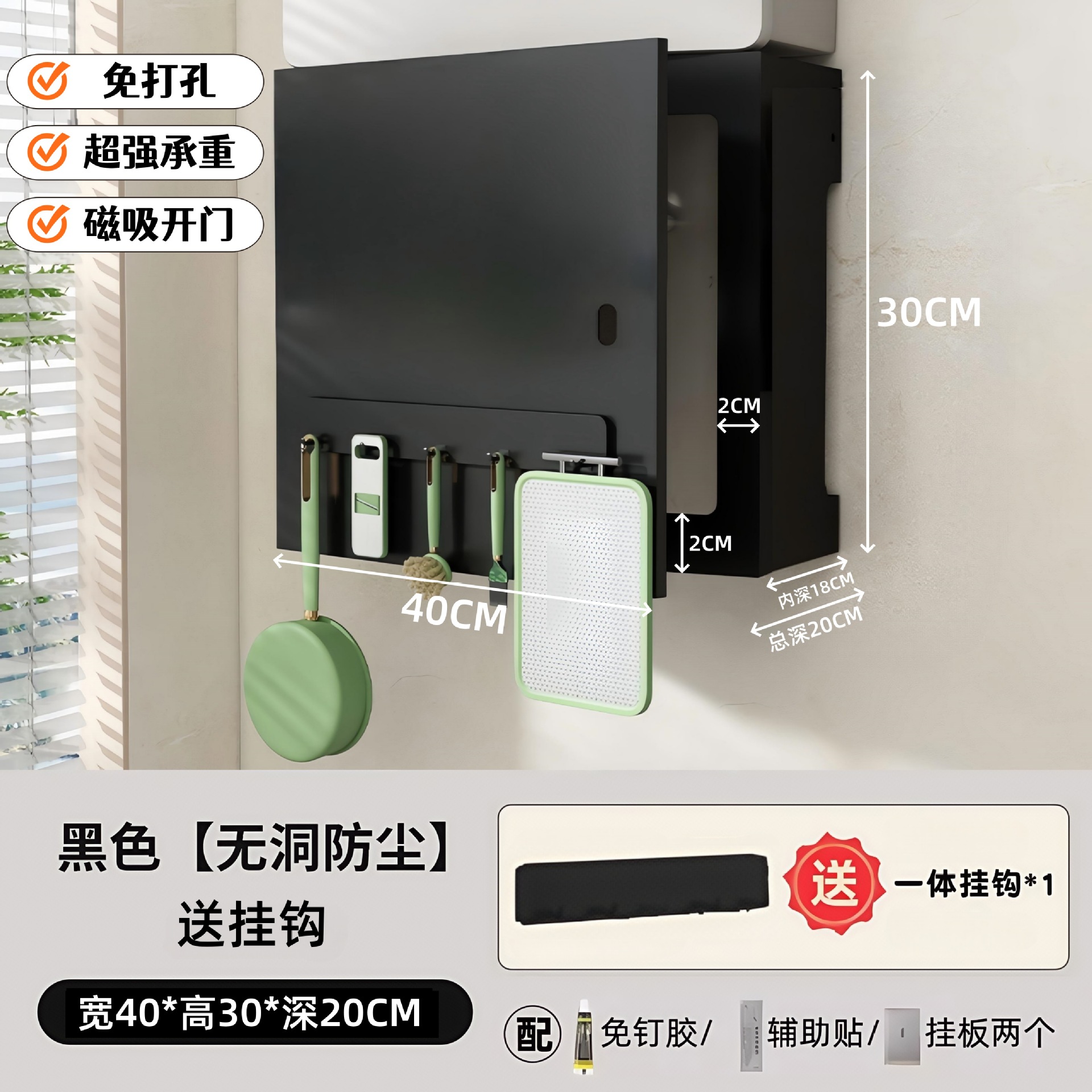 • 옵시디언 블랙 [오픈 도어 모델] 길이 40 높이 30 깊이 20 (자석 후크 1개 포함)