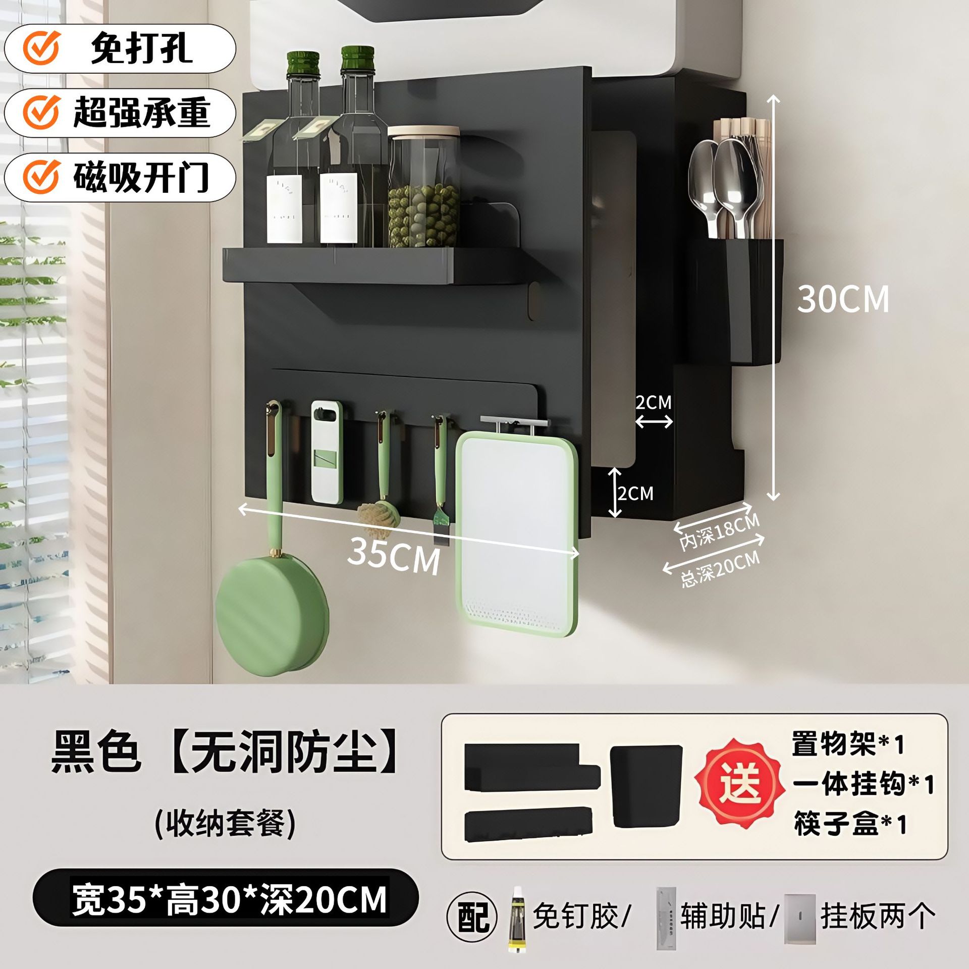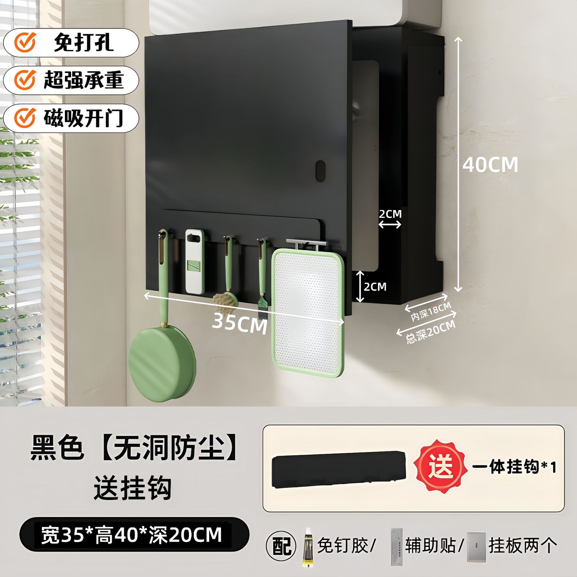 • 옵시디언 블랙 [오픈 도어 모델] 길이 35, 높이 40, 깊이 20 (자석 후크 1개 포함)