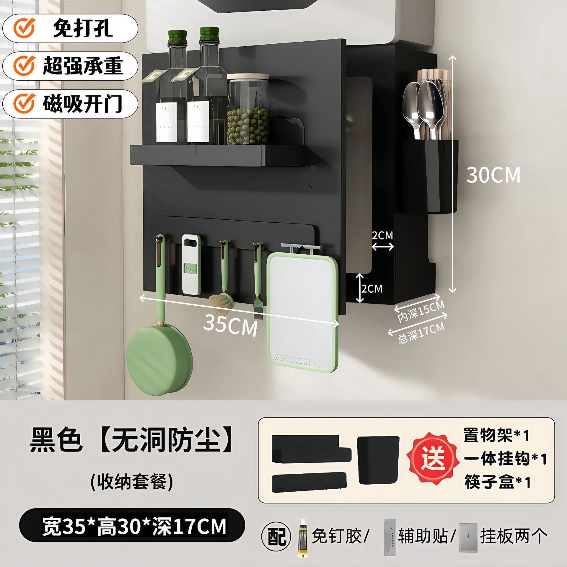 • 옵시디언 블랙 [오픈 도어 모델] 길이 35 높이 40 깊이 17 (자석 후크*1 포함)