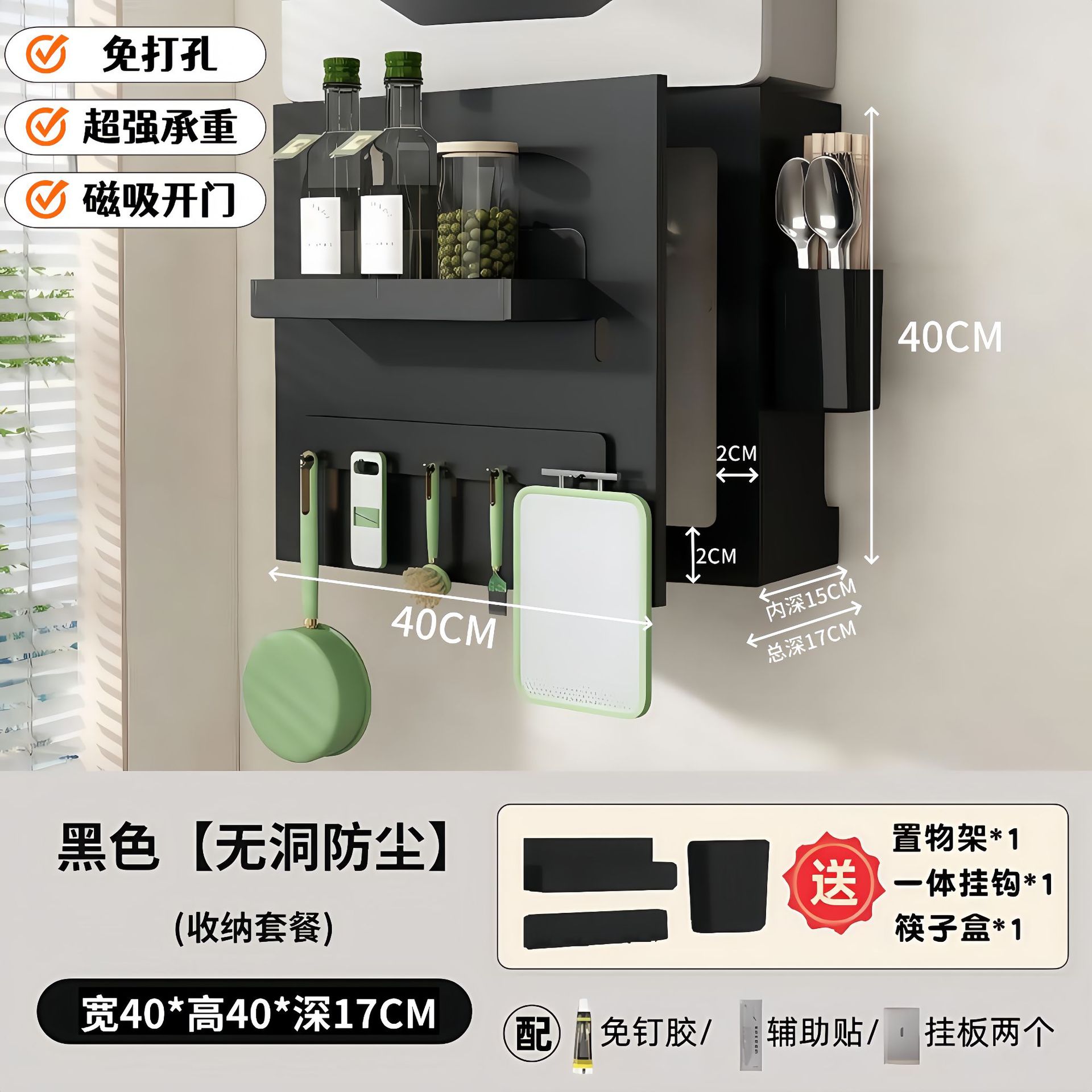 • 옵시디언 블랙 [오픈 도어 모델] 길이 40 높이 40 깊이 17 (자석 후크*1 포함)