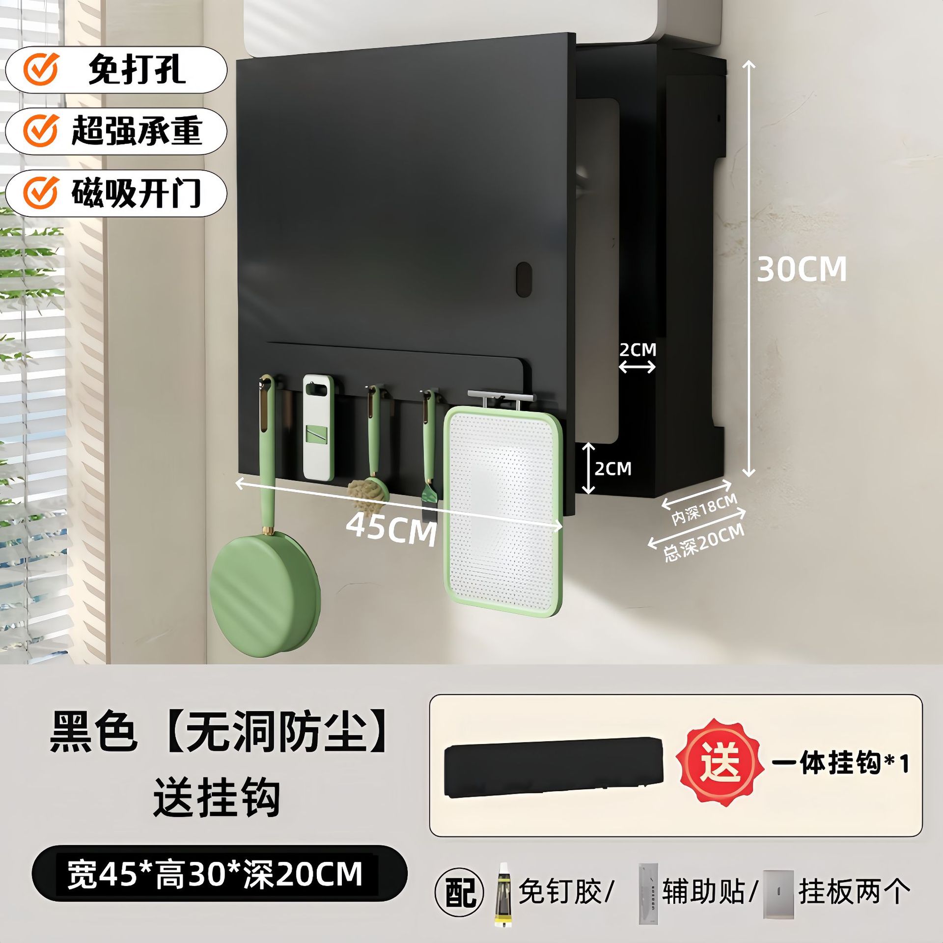• 옵시디언 블랙 [오픈 도어 모델] 길이 45, 높이 30, 깊이 20 (자석 후크 1개 포함)
