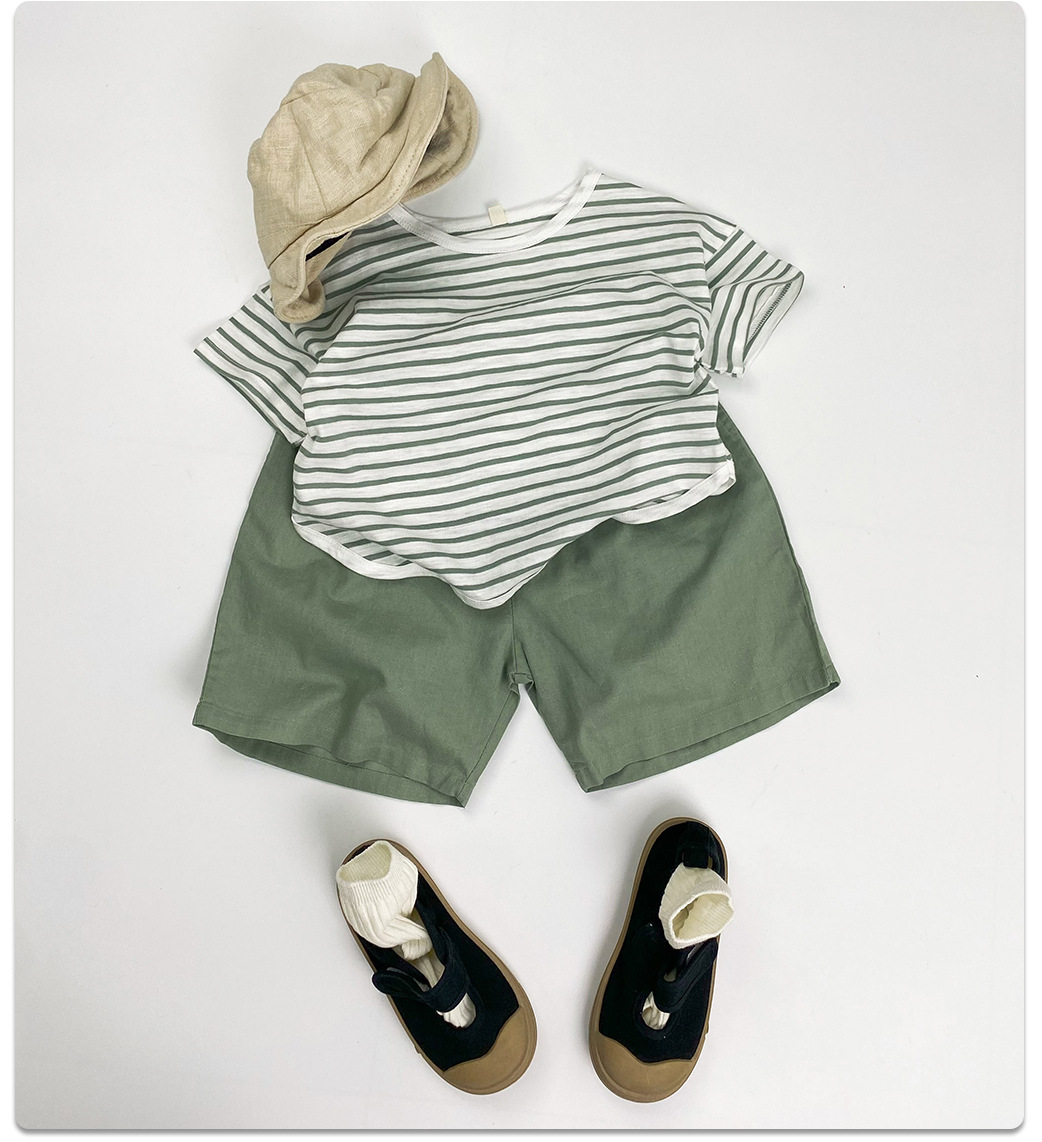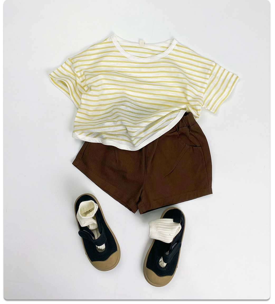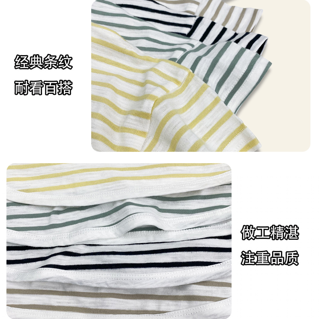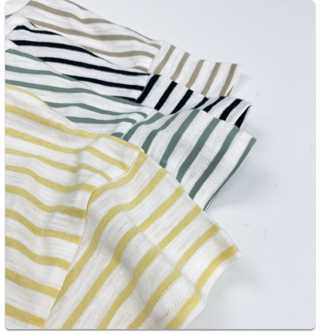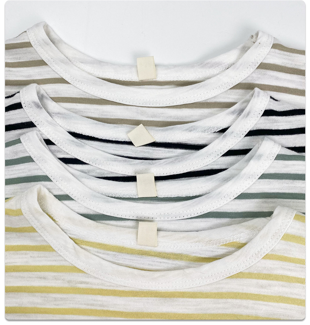 남아 및 여아용 아동용 대나무 면 스트라이프 티셔츠, 중소형 아동용 루즈한 반팔 셔츠, 여름 아동복, 베이비 상의스토어 가기
