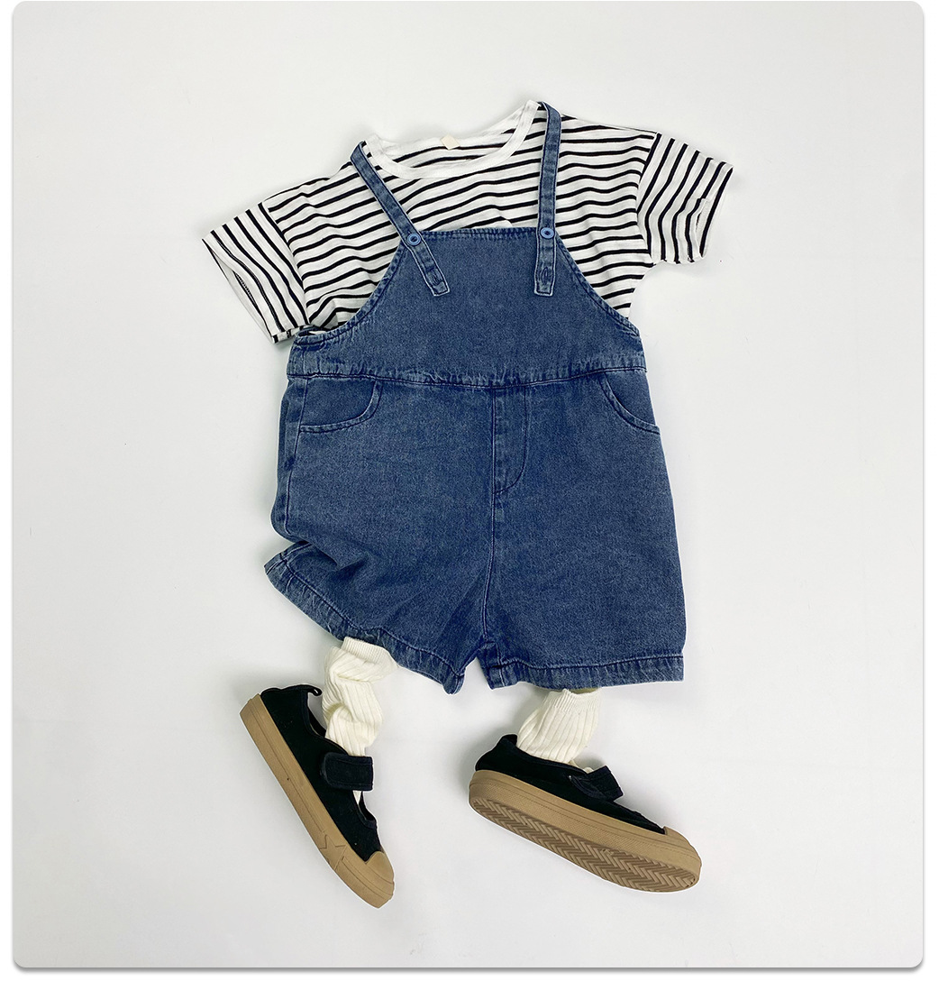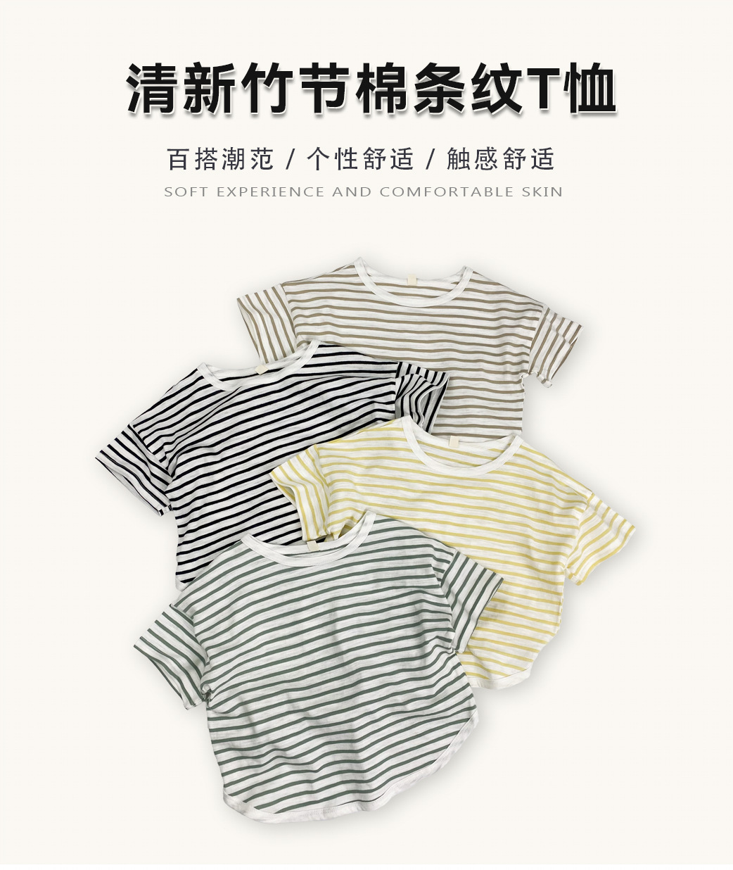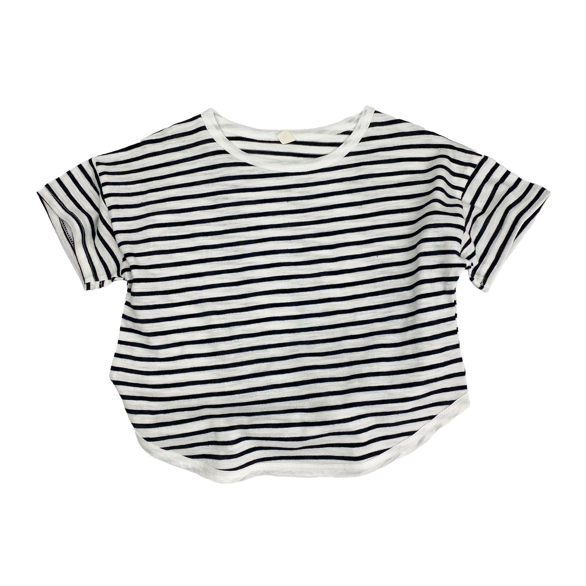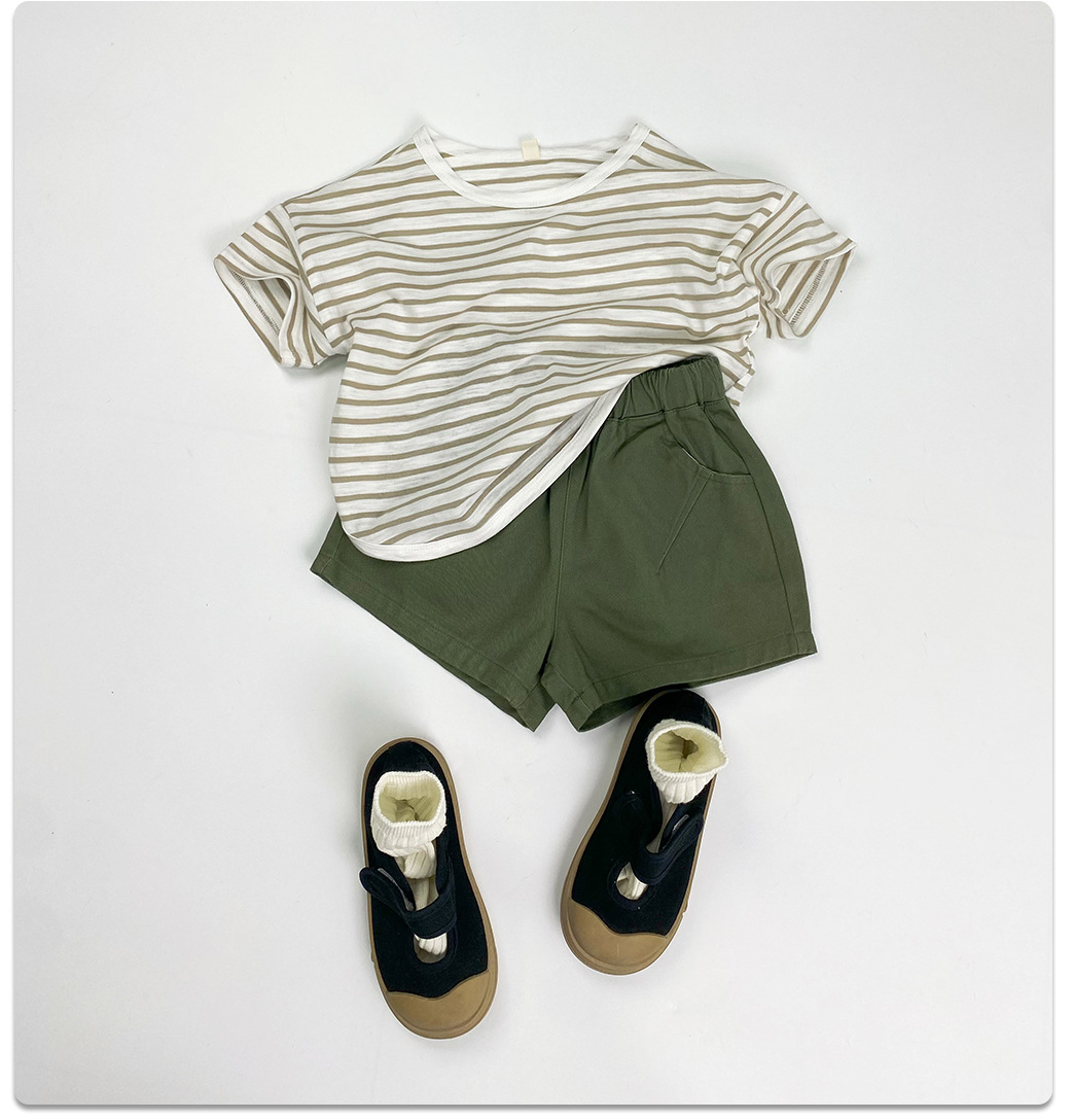 남아 및 여아용 아동용 대나무 면 스트라이프 티셔츠, 중소형 아동용 루즈한 반팔 셔츠, 여름 아동복, 베이비 상의스토어 가기