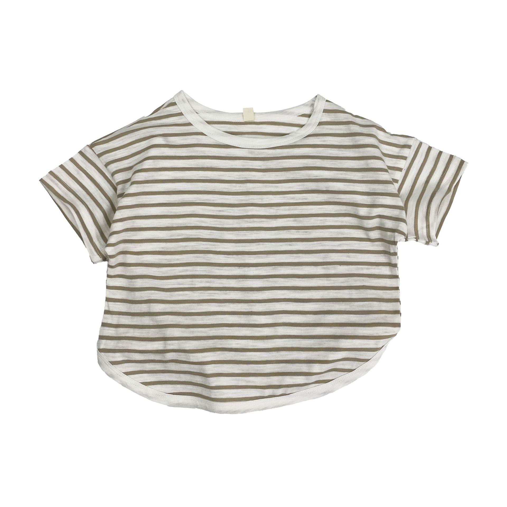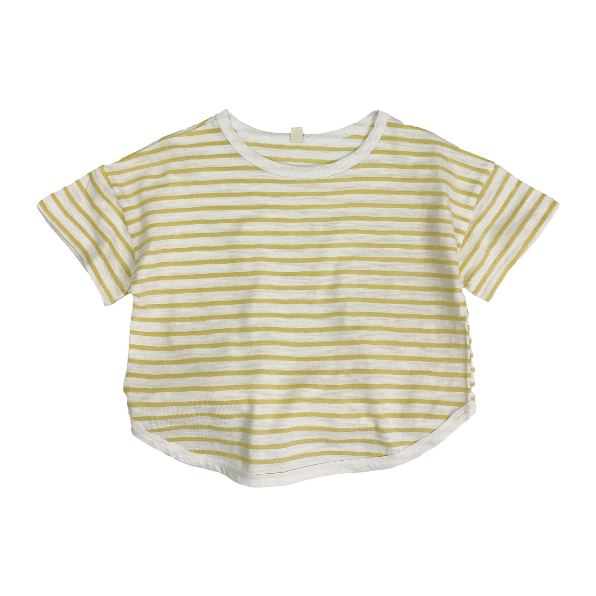 남아 및 여아용 아동용 대나무 면 스트라이프 티셔츠, 중소형 아동용 루즈한 반팔 셔츠, 여름 아동복, 베이비 상의