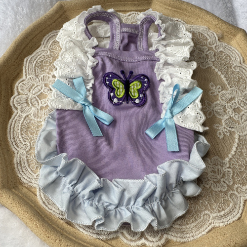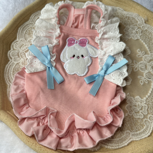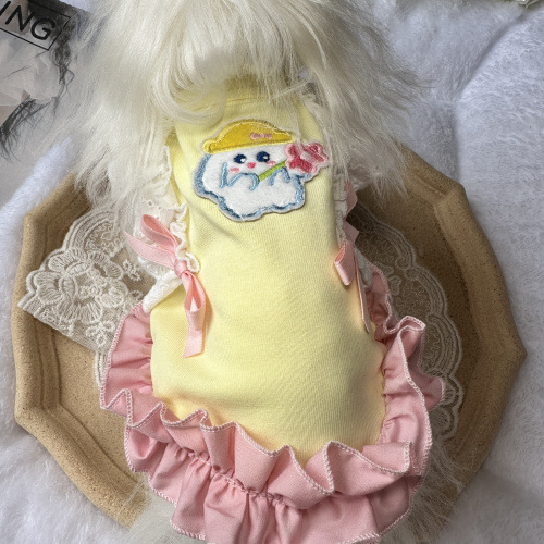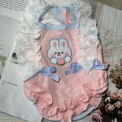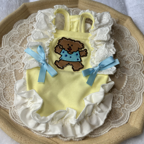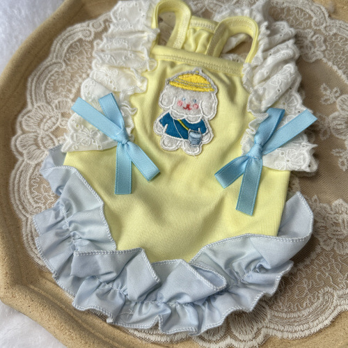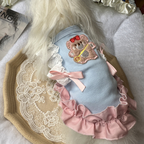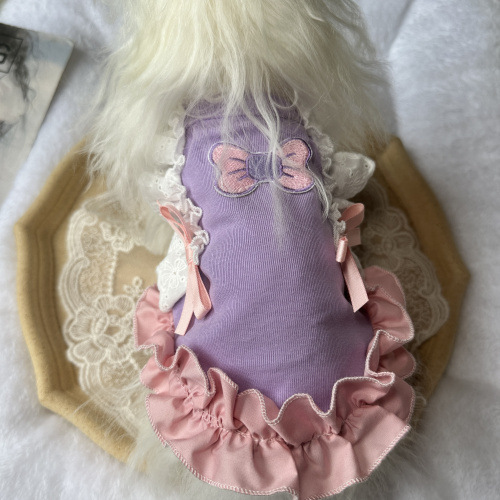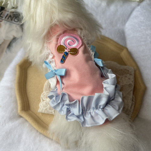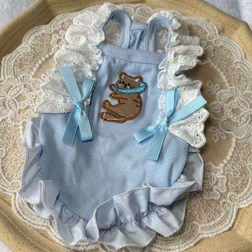 면 핑크 블루 옐로우 레이스 서스펜더 애완 동물 고양이 옷 개 의류 스트레치 비숑 테디 봄과 여름 얇은 옷