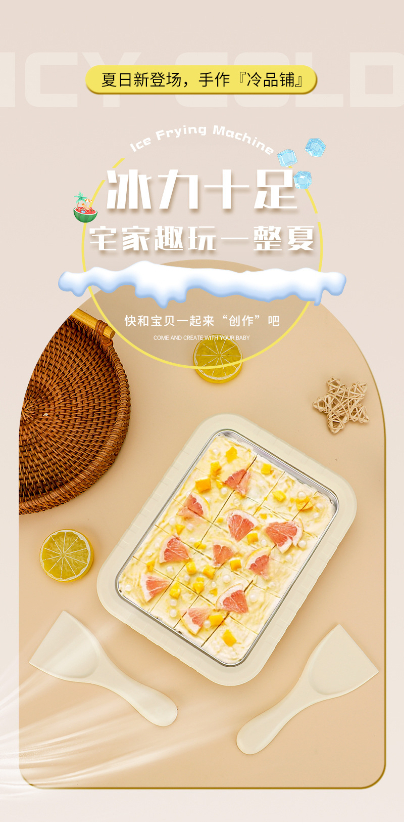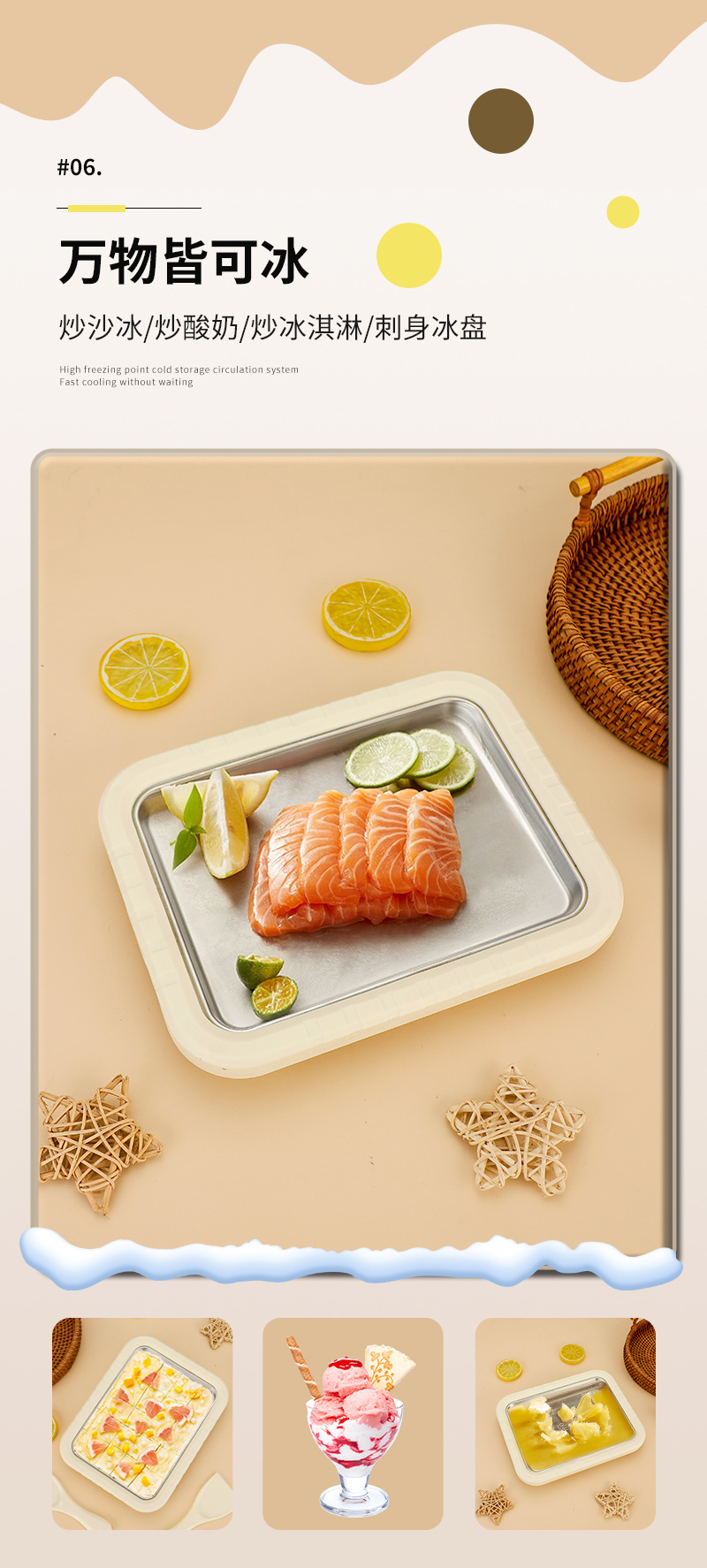 아이스크림 기계, 요거트 주스, 샌드 아이스 트레이, 가정용 플러그인 프리 아이스크림 기계, 연어 사시미 냉동 보존 트레이