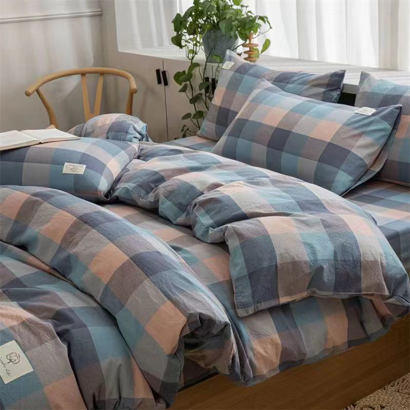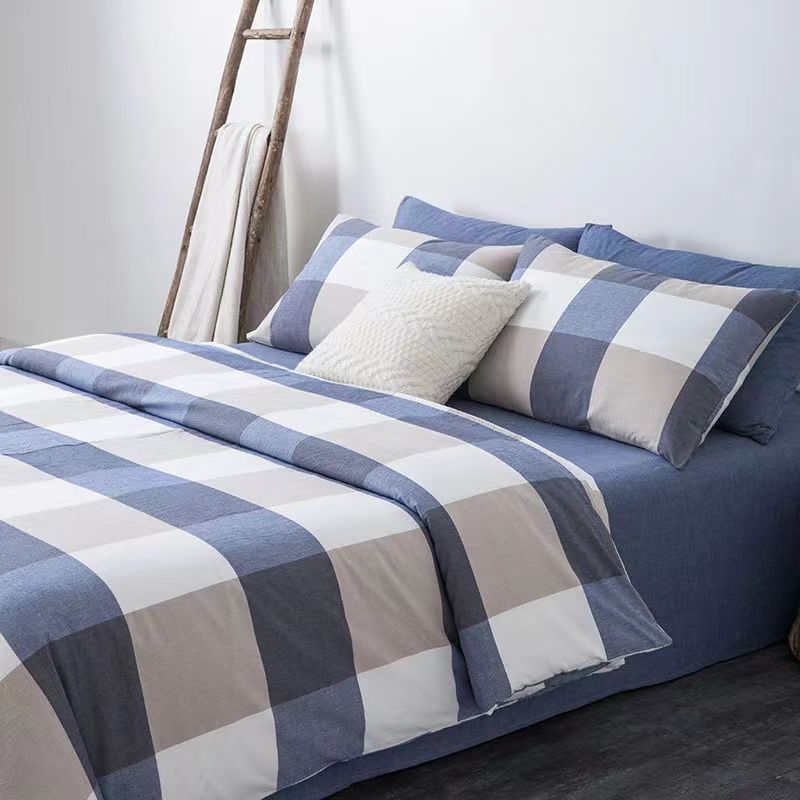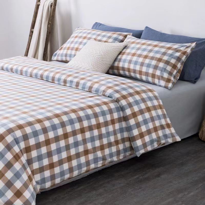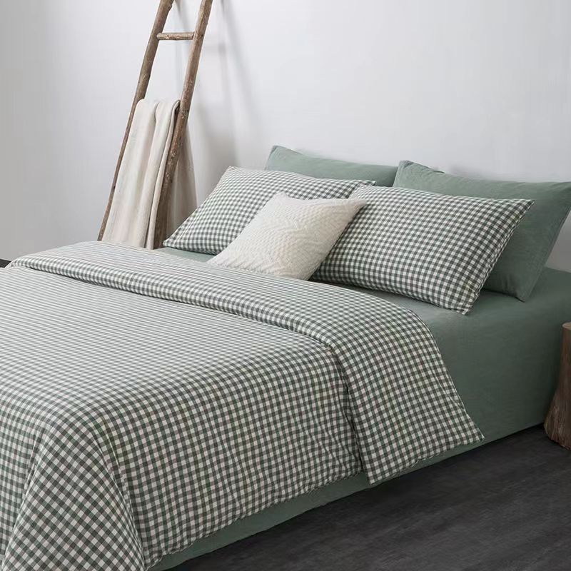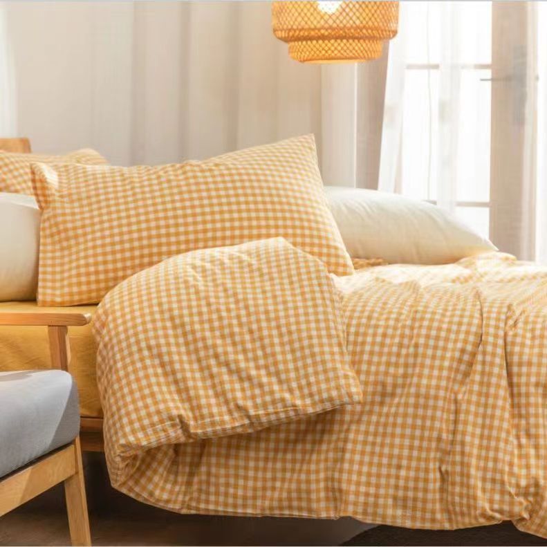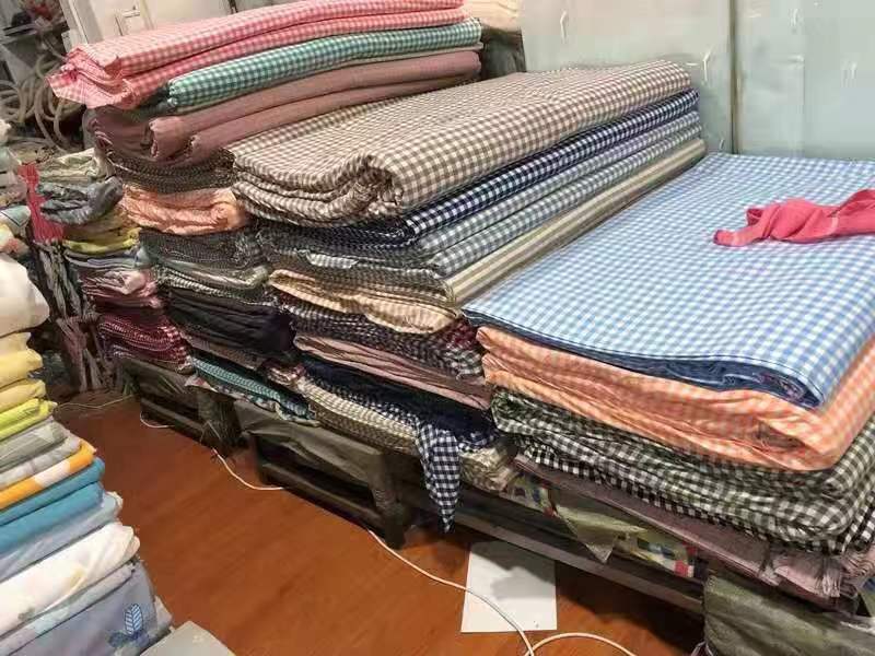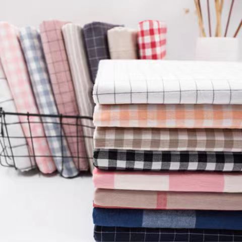 순면 원사 염색 면직물 줄무늬 침구 맞춤형 단색 격자 무늬 원단 퀼트 침대 시트 깅엄스토어 가기