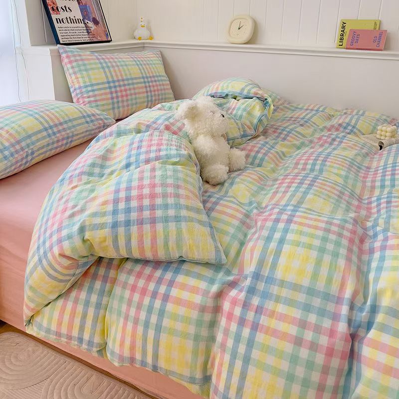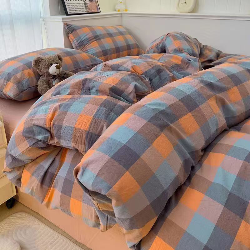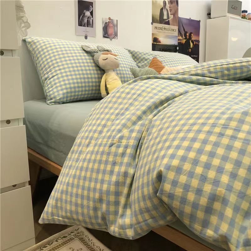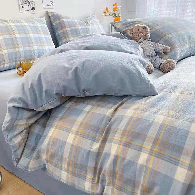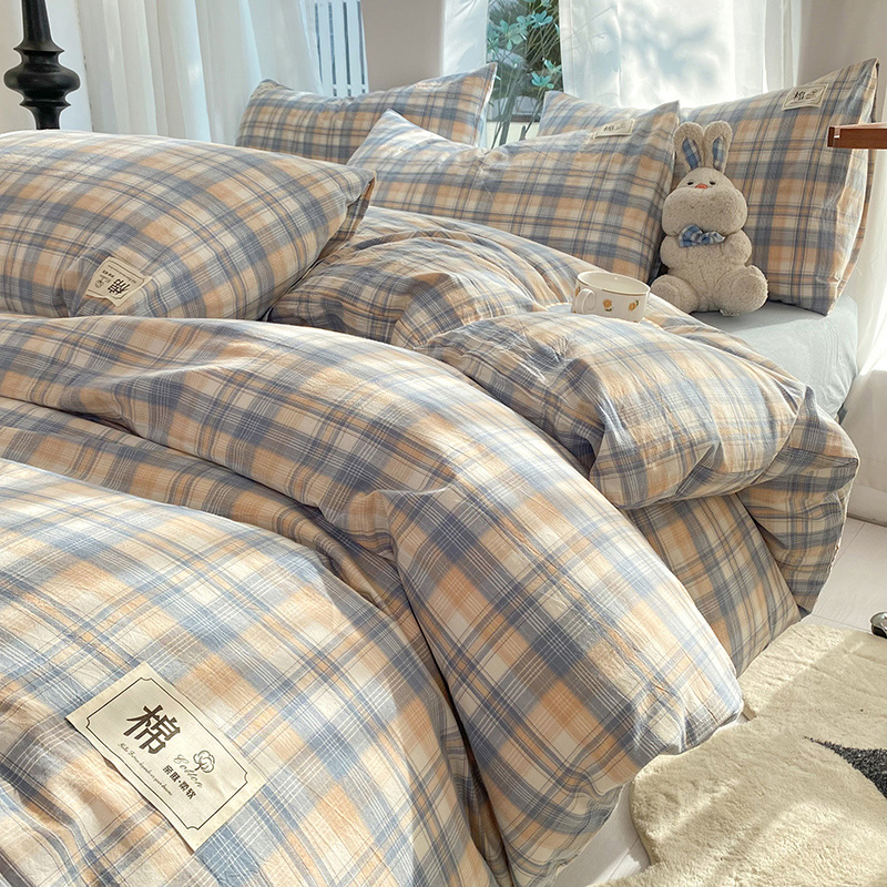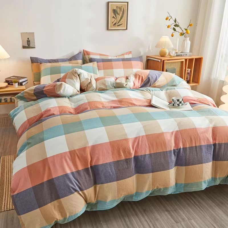 순면 원사 염색 면직물 줄무늬 침구 맞춤형 단색 격자 무늬 원단 퀼트 침대 시트 깅엄스토어 가기