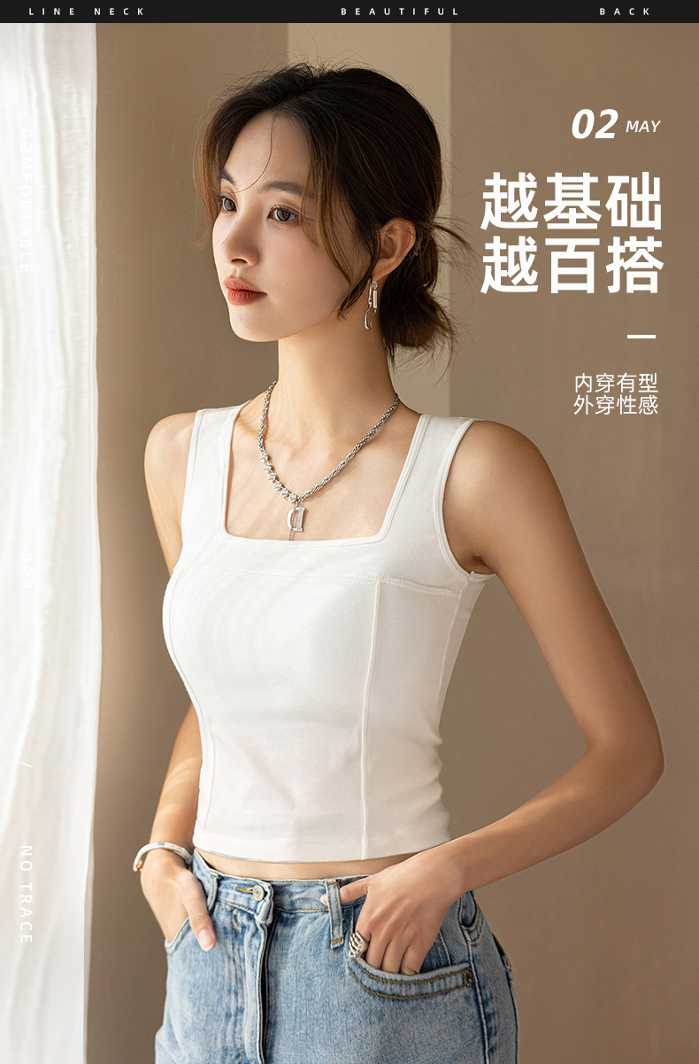새로운 여름 올 매치 스위트 스파이스 소녀 민소매 슬림 핏 사계절 내복 외신베이스 슬링 튜브 탑 조끼 여성을위한 가슴 패드스토어 가기