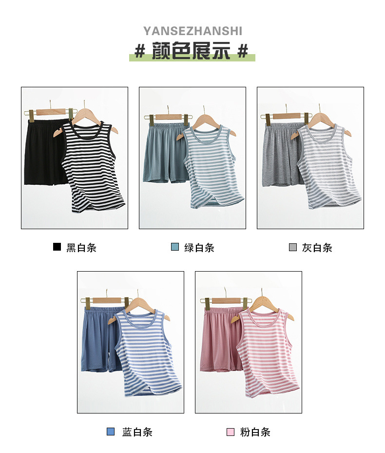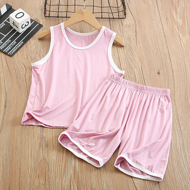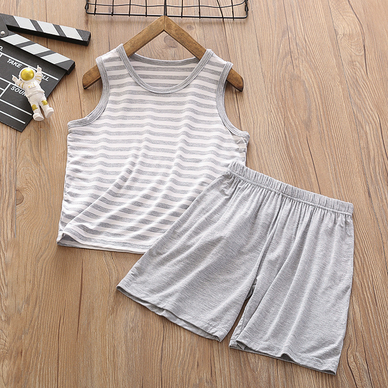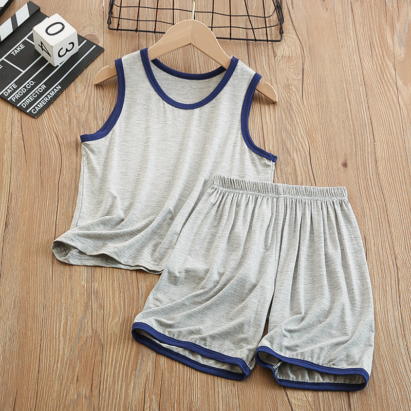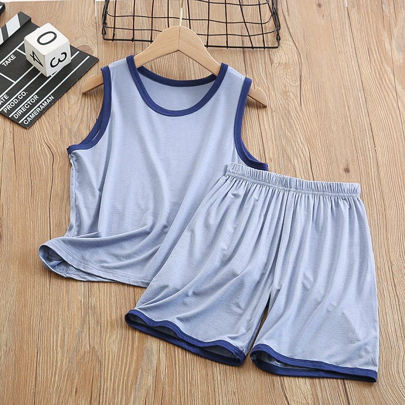 중대형 아동 모달 조끼 정장 반바지 얇은 가정용 소년 민소매 에어컨 의류 얼음 실크 잠옷 여름스토어 가기