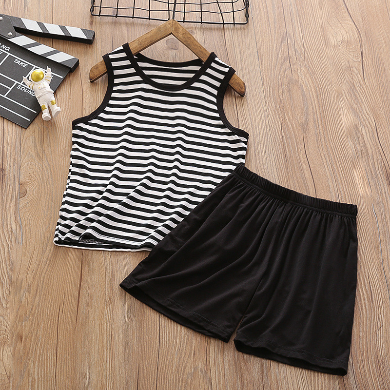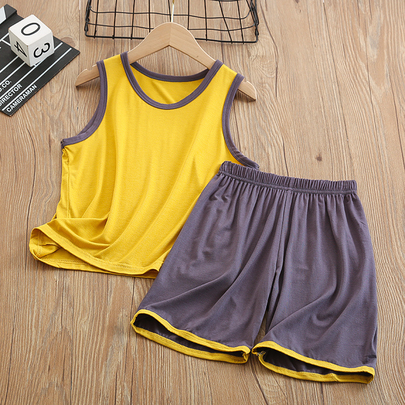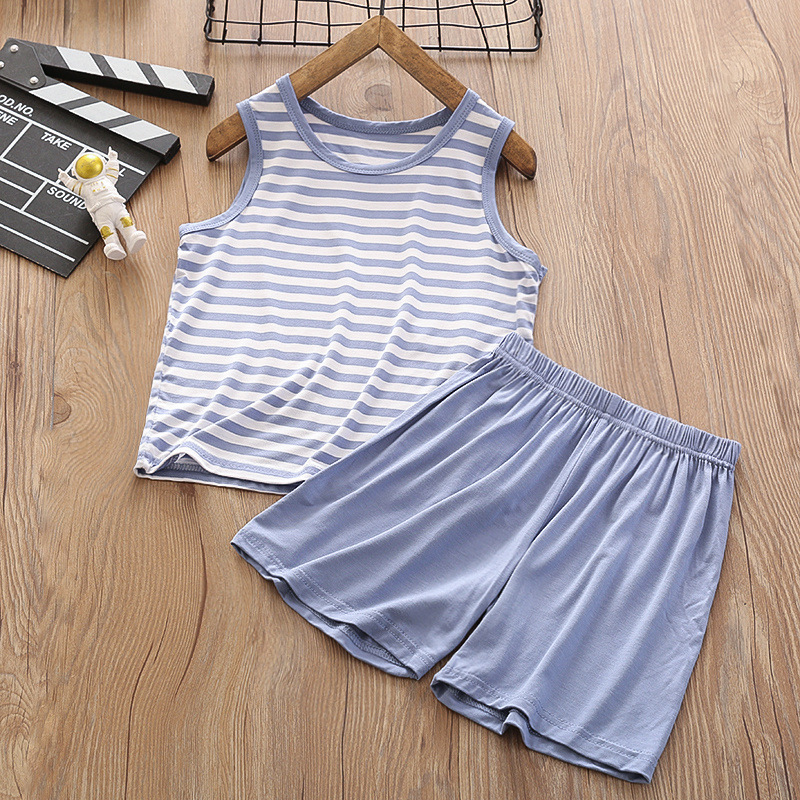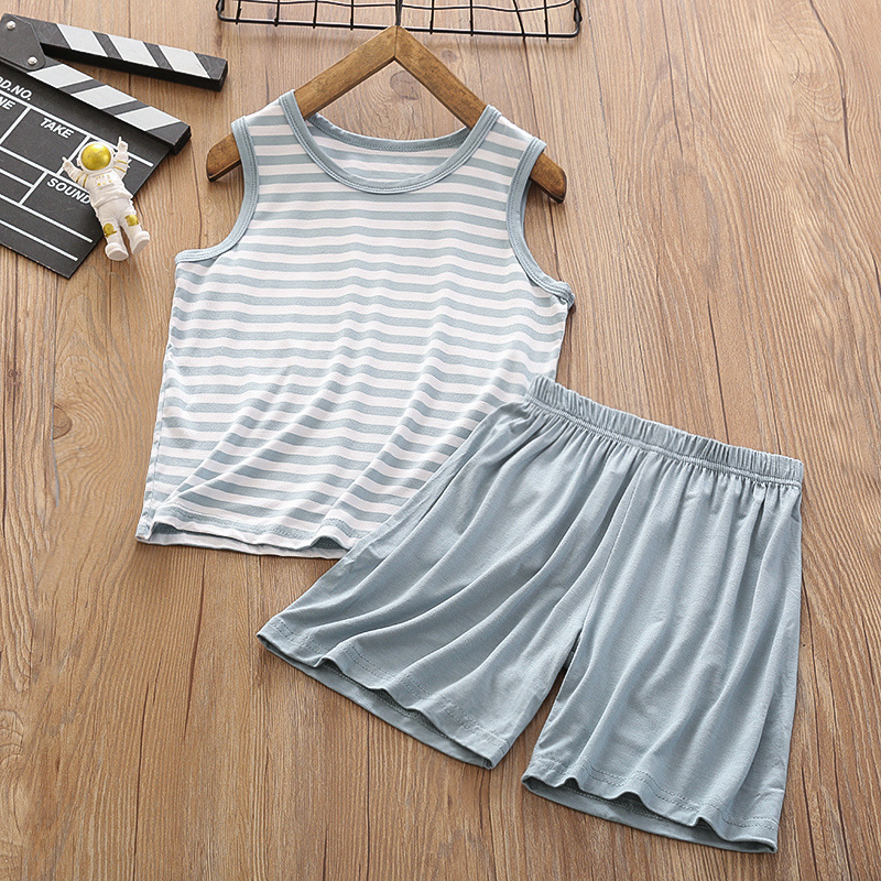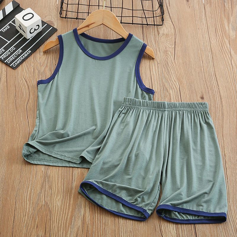 중대형 아동 모달 조끼 정장 반바지 얇은 가정용 소년 민소매 에어컨 의류 얼음 실크 잠옷 여름