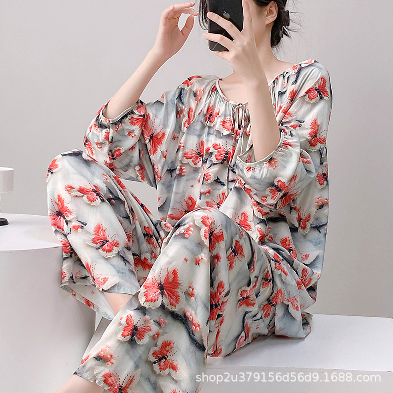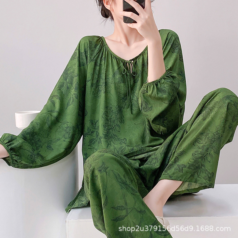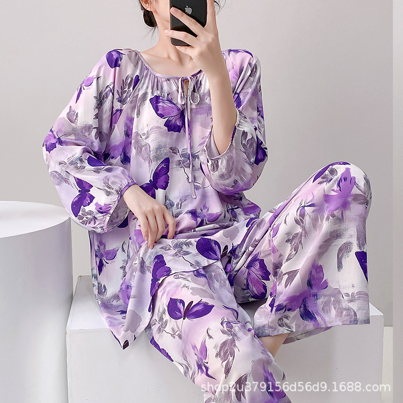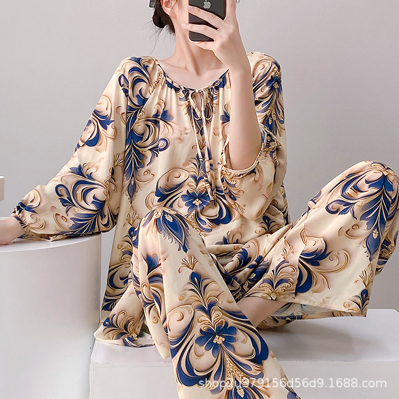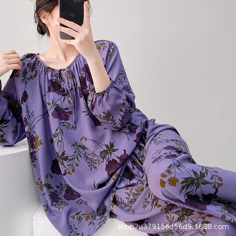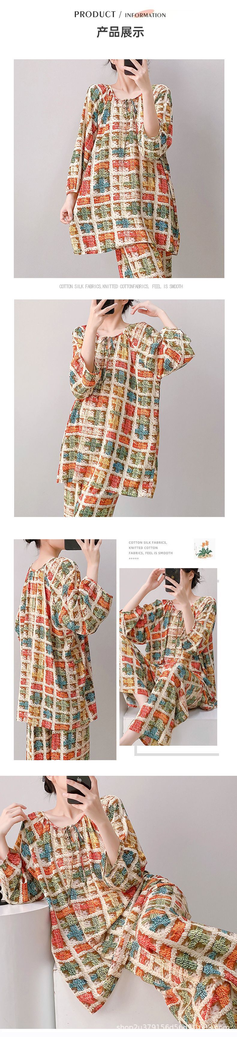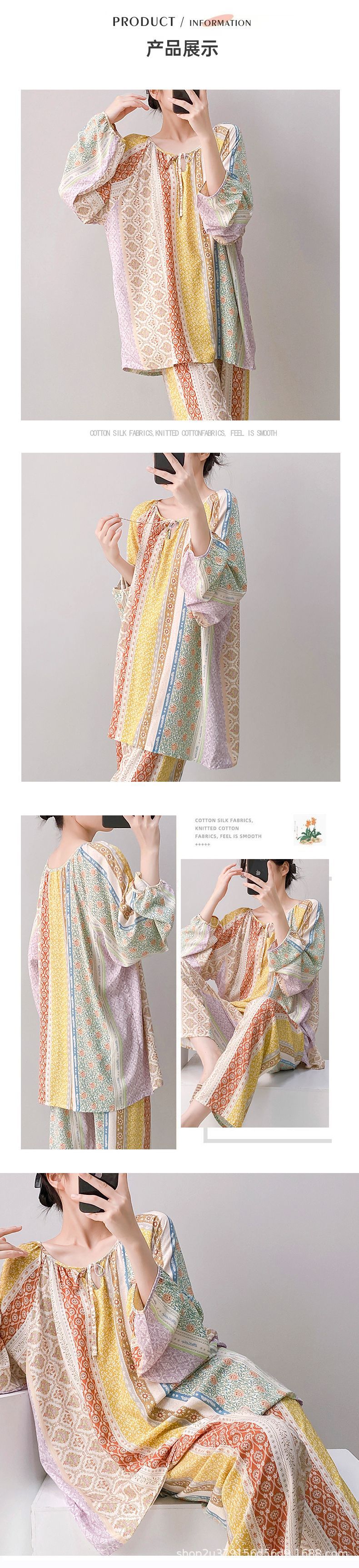 2025 여성을위한 새로운 면 실크 잠옷 긴팔 인공 면 시원한 스타일 확장 국가 스타일 가정 의류 봄 가을 여름스토어 가기