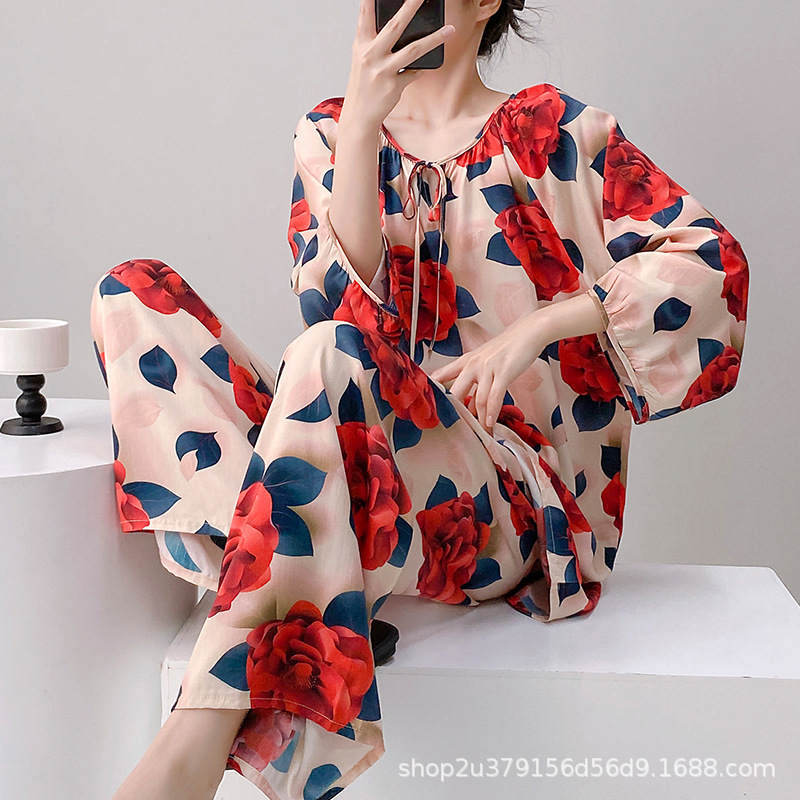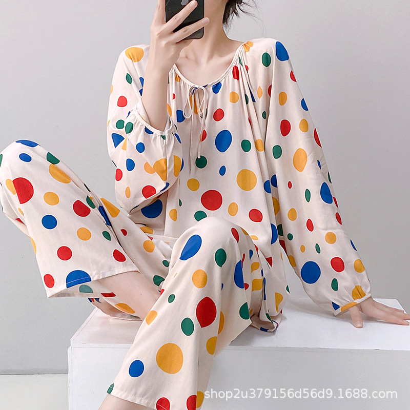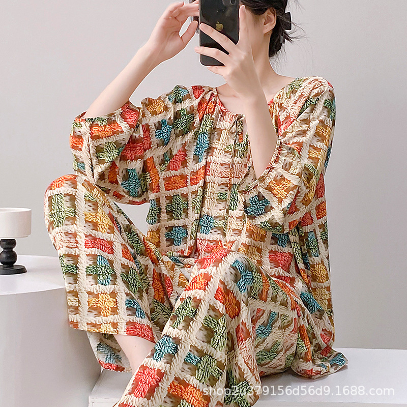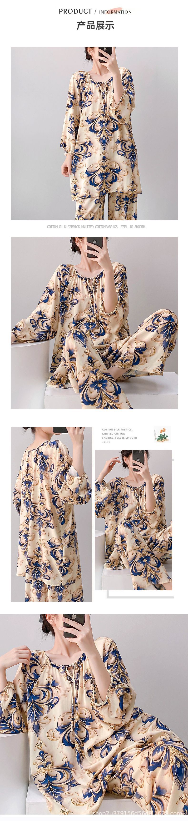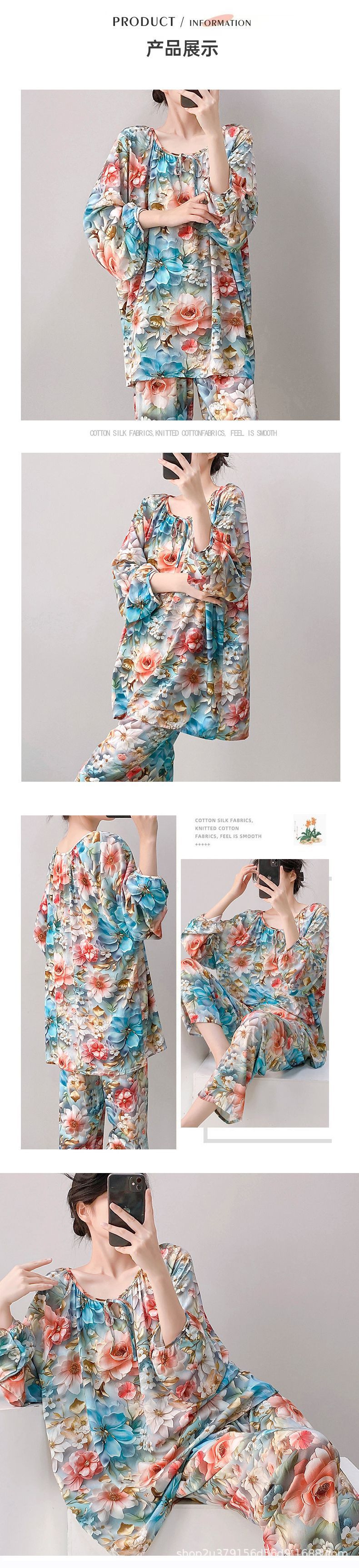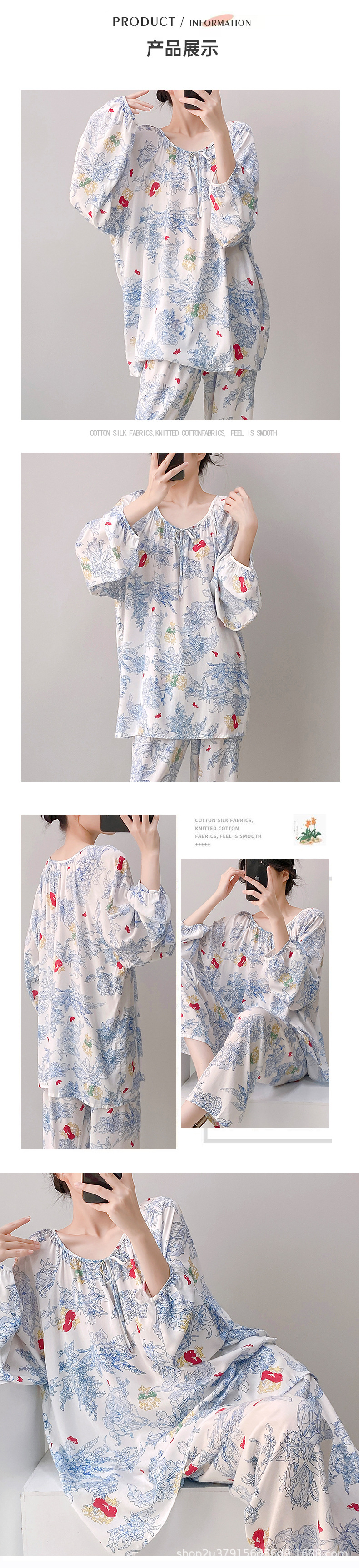 2025 여성을위한 새로운 면 실크 잠옷 긴팔 인공 면 시원한 스타일 확장 국가 스타일 가정 의류 봄 가을 여름스토어 가기
