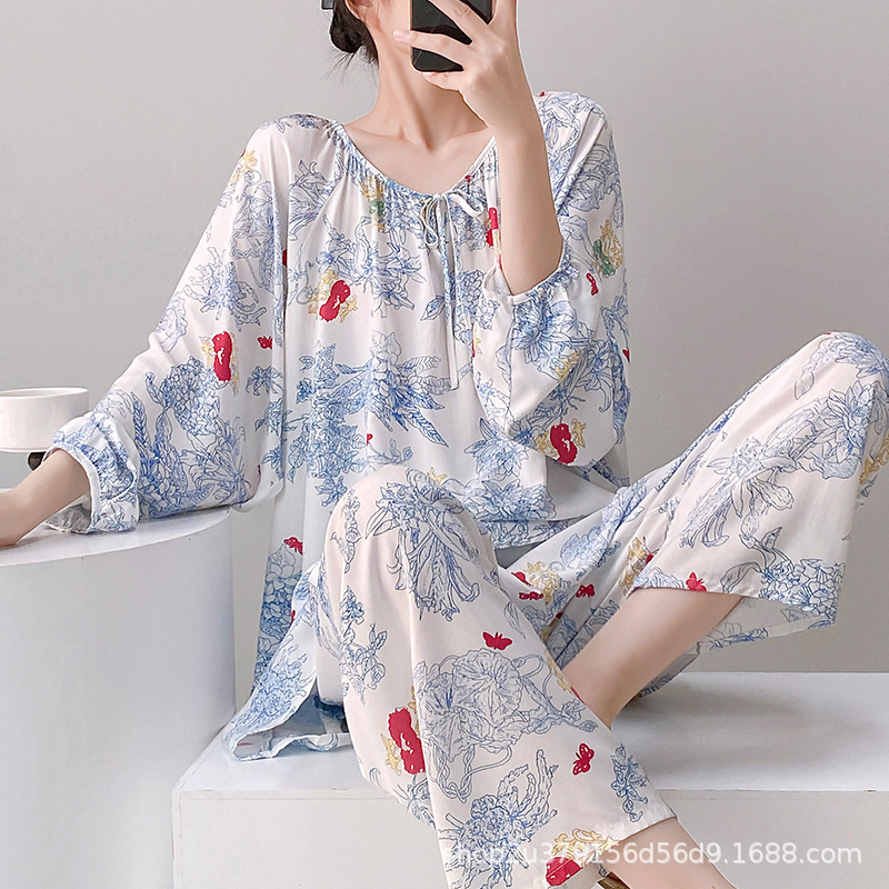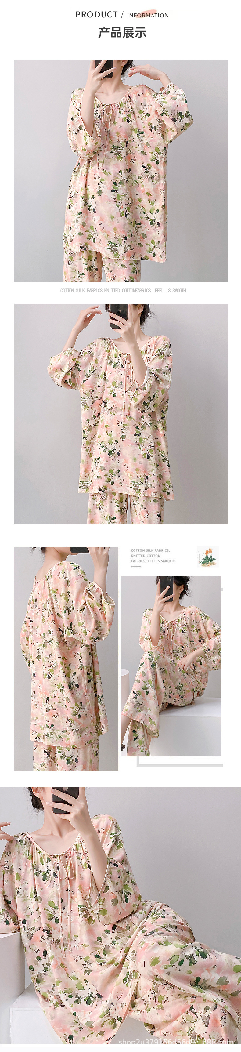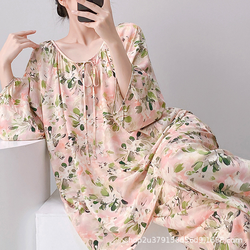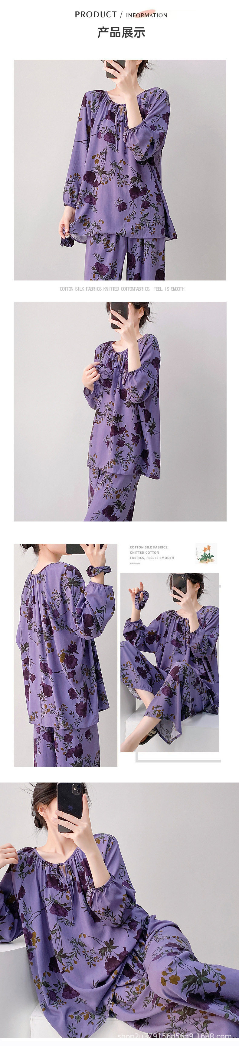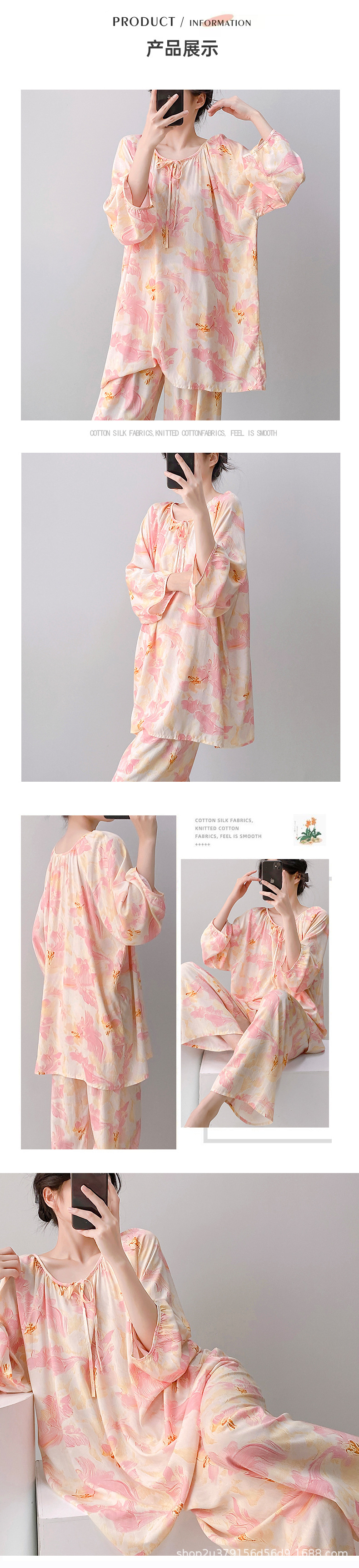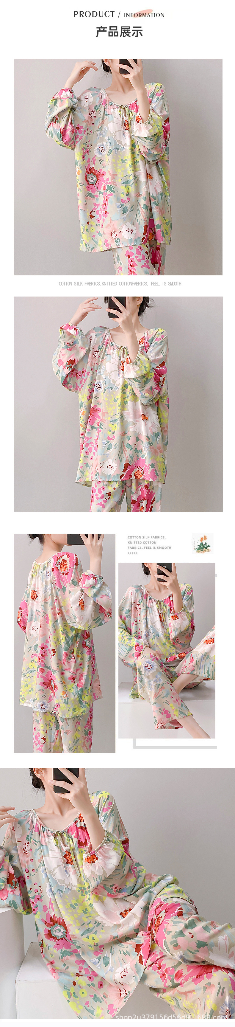 2025 여성을위한 새로운 면 실크 잠옷 긴팔 인공 면 시원한 스타일 확장 국가 스타일 가정 의류 봄 가을 여름스토어 가기