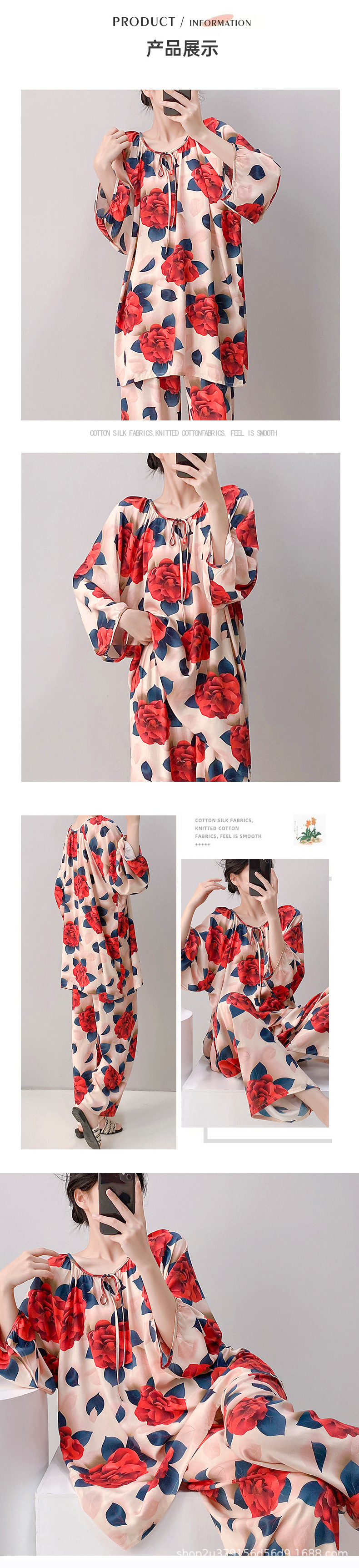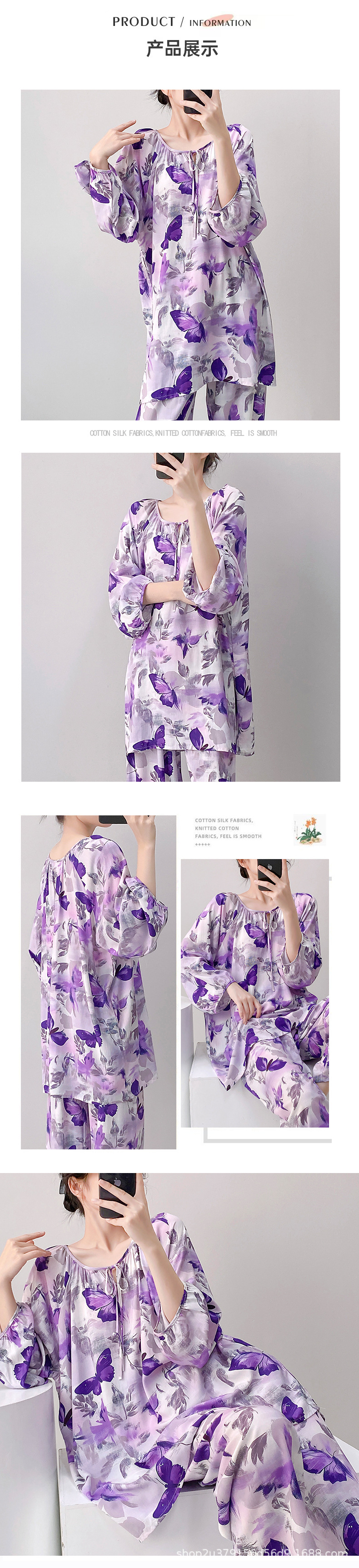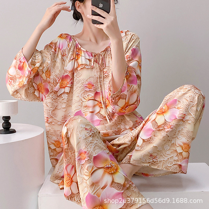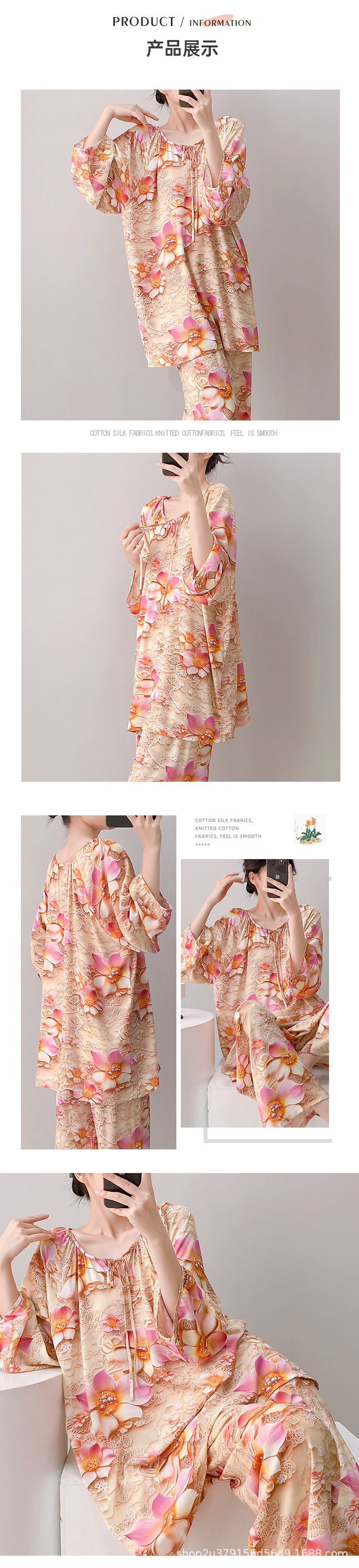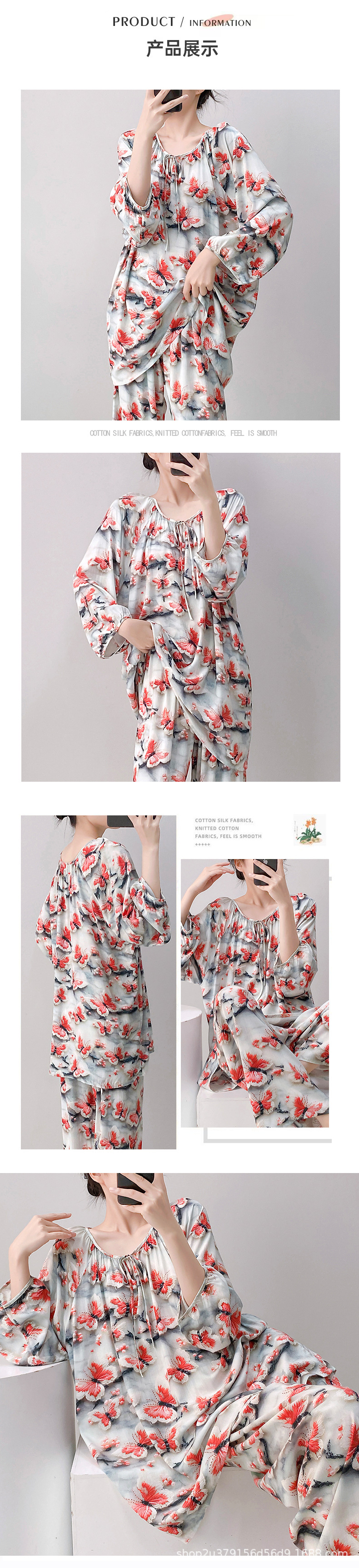 2025 여성을위한 새로운 면 실크 잠옷 긴팔 인공 면 시원한 스타일 확장 국가 스타일 가정 의류 봄 가을 여름스토어 가기