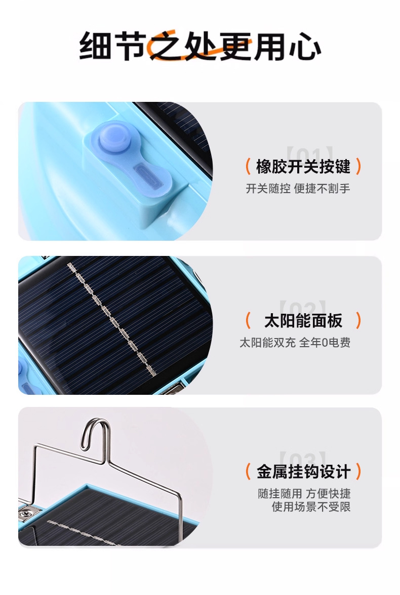 • 200W 블루 단일 조명 [배터리 수명 6-8시간] 조명 ≈ 50㎡/태양광 충전/강력 자석 부착/만능 걸이