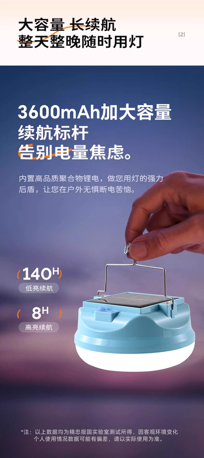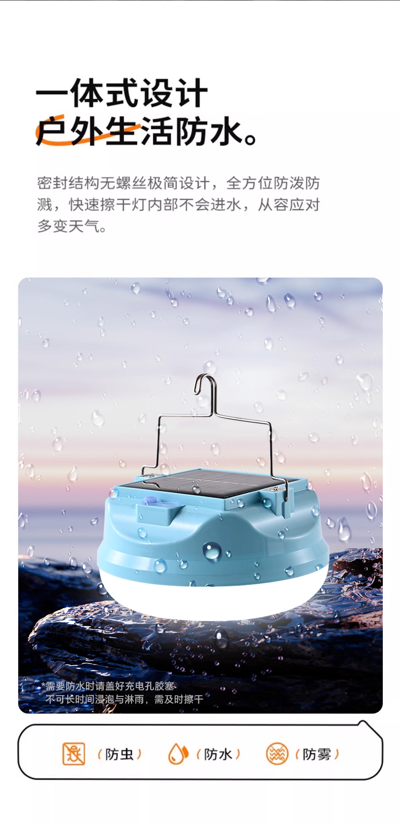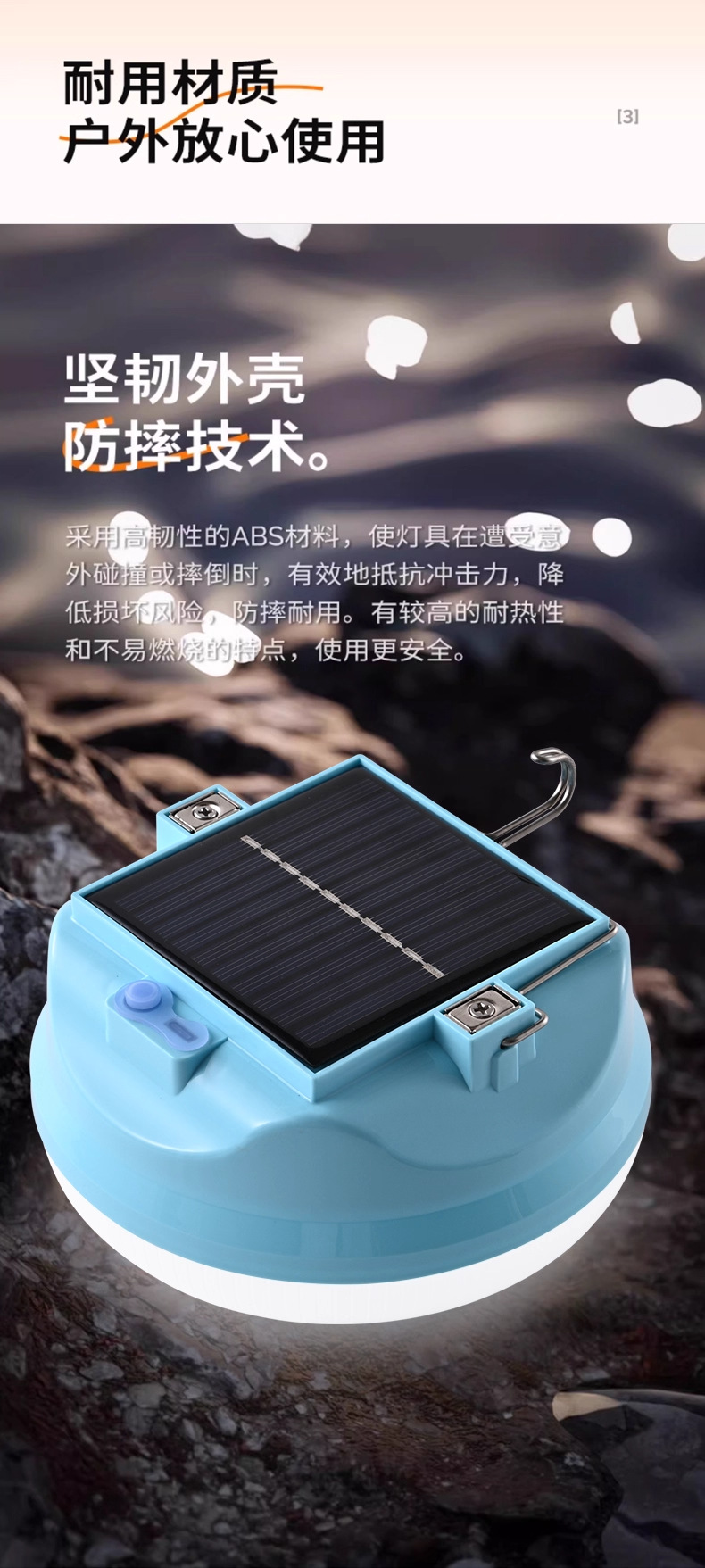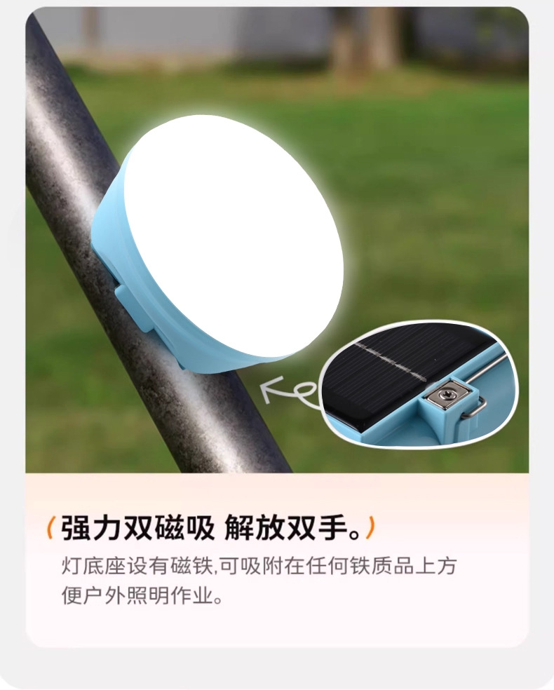 • 100W 파란색 단일 램프 [배터리 수명 3-5시간] 조명 ≒ 30㎡/태양광 충전/강력한 자기 흡입/범용 후크