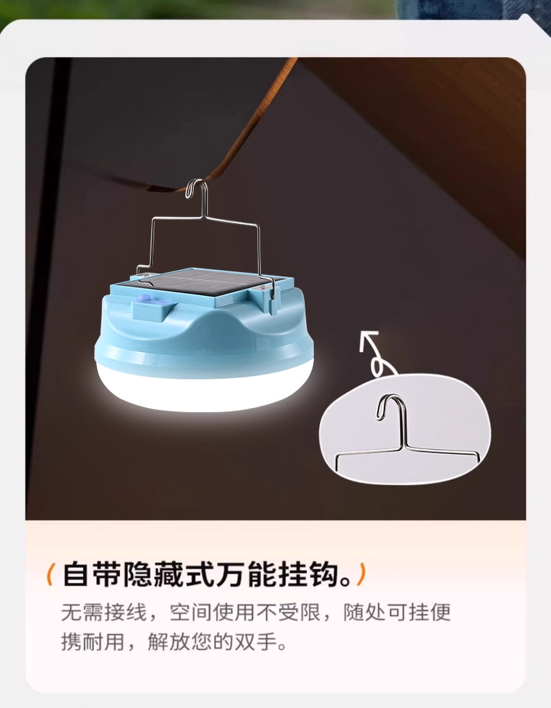 태양광 휴대용 캠핑 조명, 충전식 텐트, 실외 조명, 긴 배터리 수명, 비상용 걸이 조명, 초고휘도 캠핑 조명