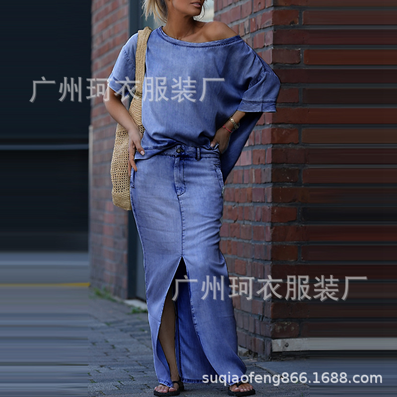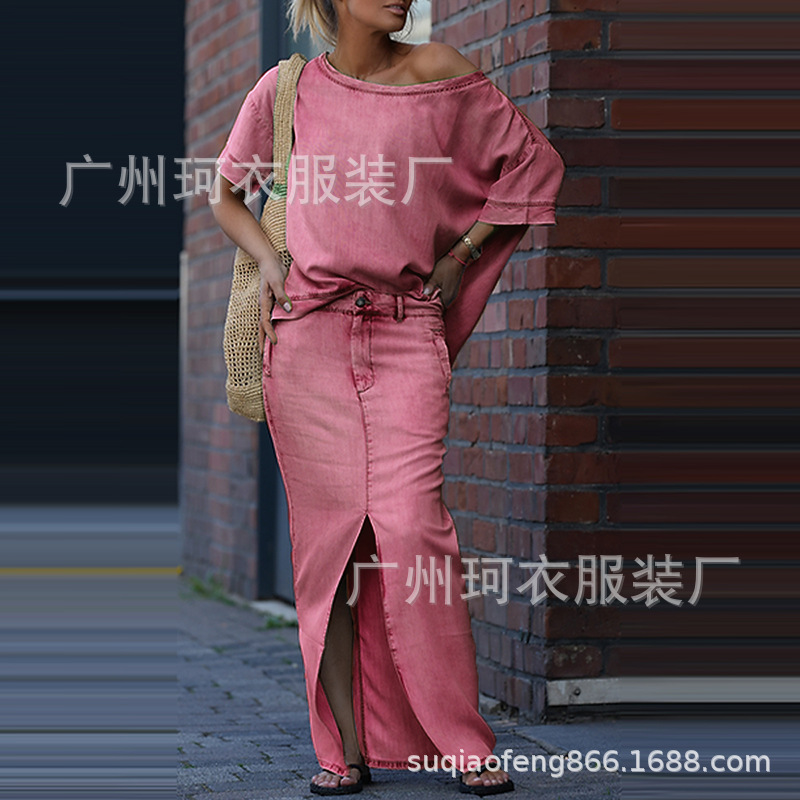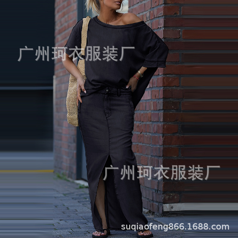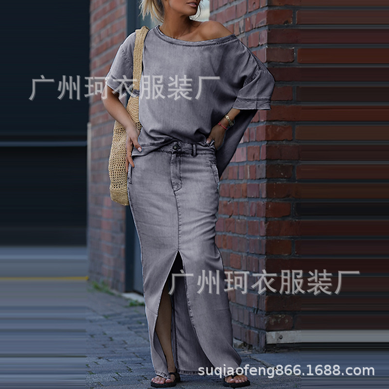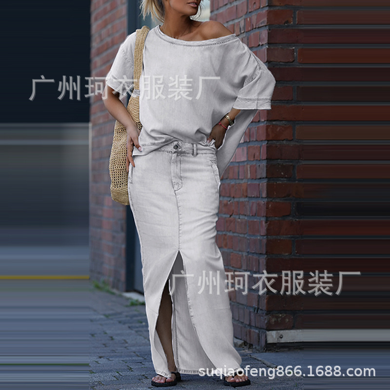 아마존 국경 2025 여름 유럽과 미국의 대외 무역 새로운 여성 패션 루즈 탑 스플릿 스커트 세트