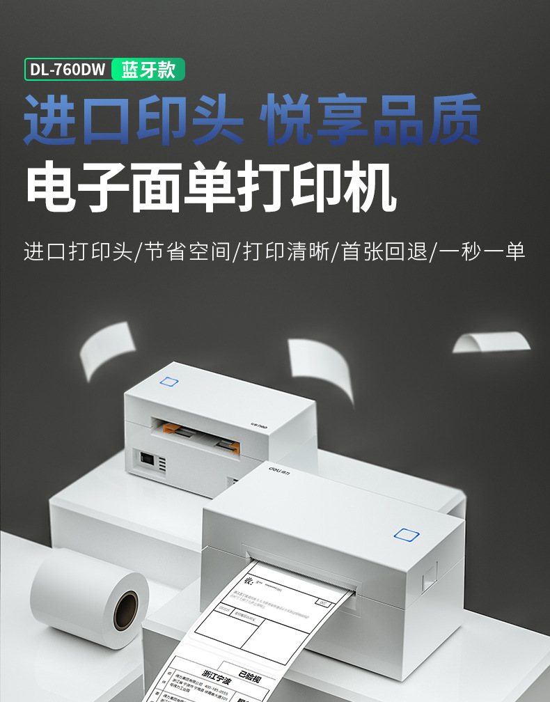 Deli 760DW 열 라벨 프린터 익스프레스 전자 주문 휴대 전화 블루투스 자체 접착 바코드 라벨 기계