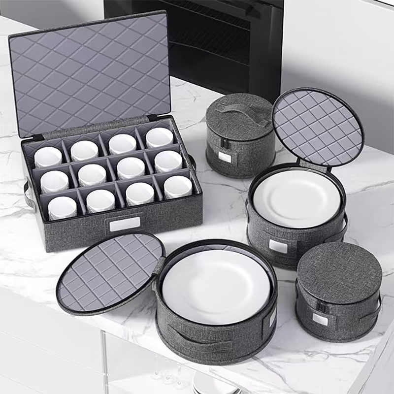 아마존 국경 간 저녁 식사 트레이 배럴 보관 상자 패브릭 주방 식기 뚜껑과 바늘 펀칭 면이있는 방진 보관 상자스토어 가기