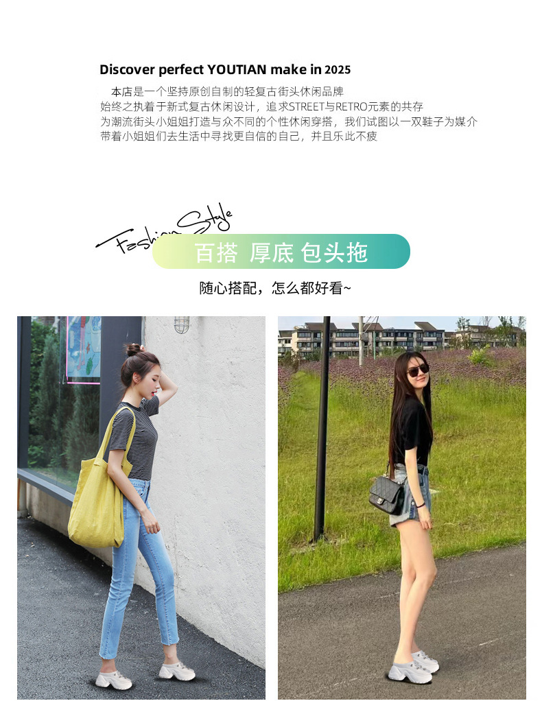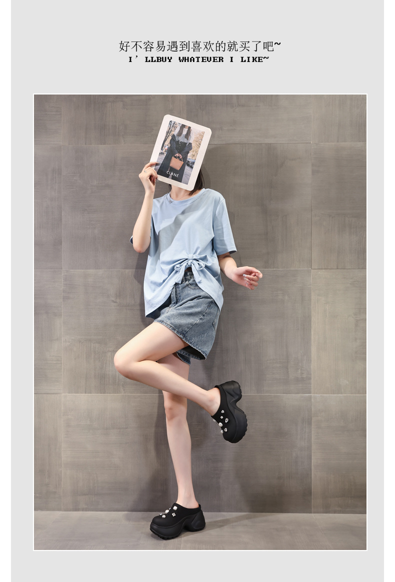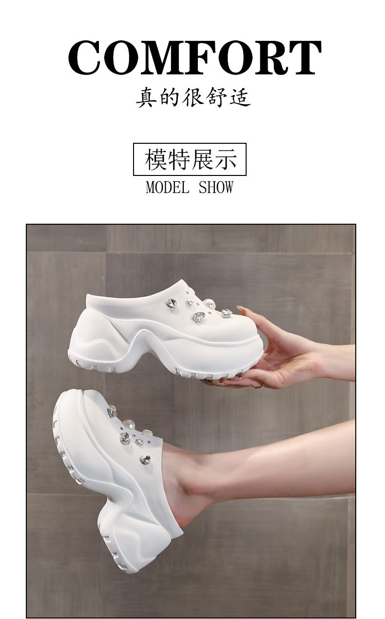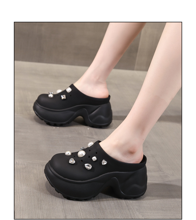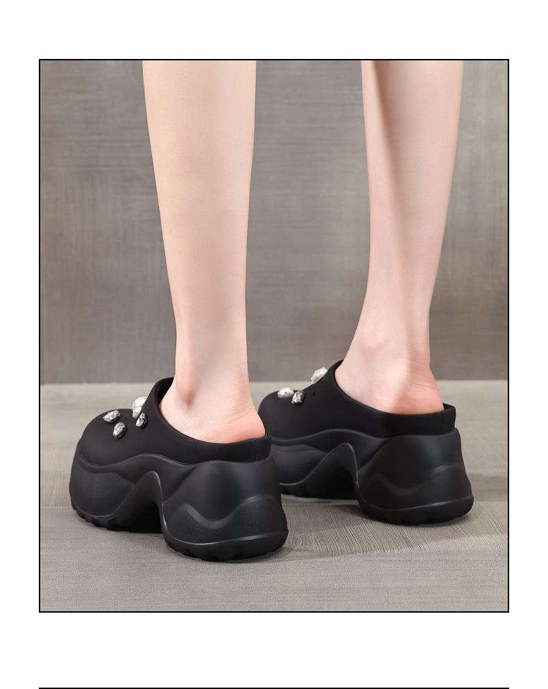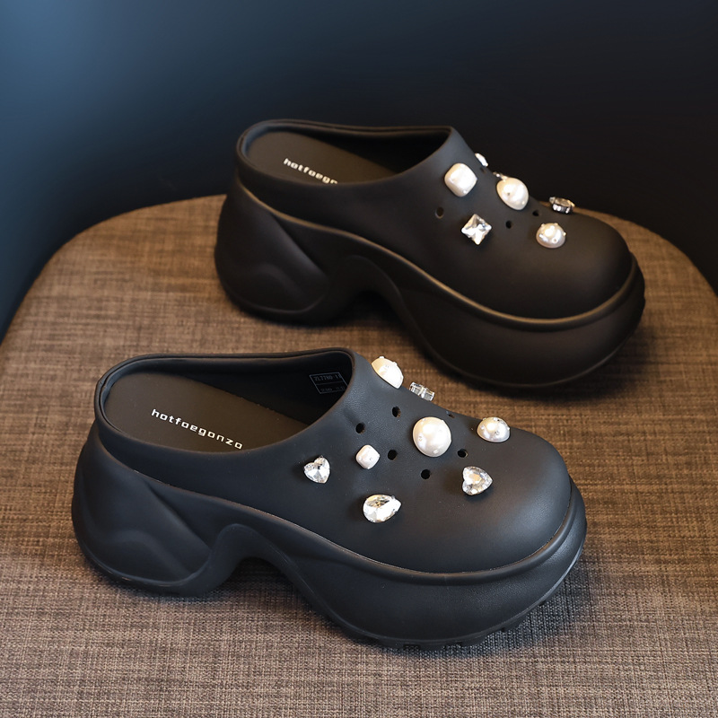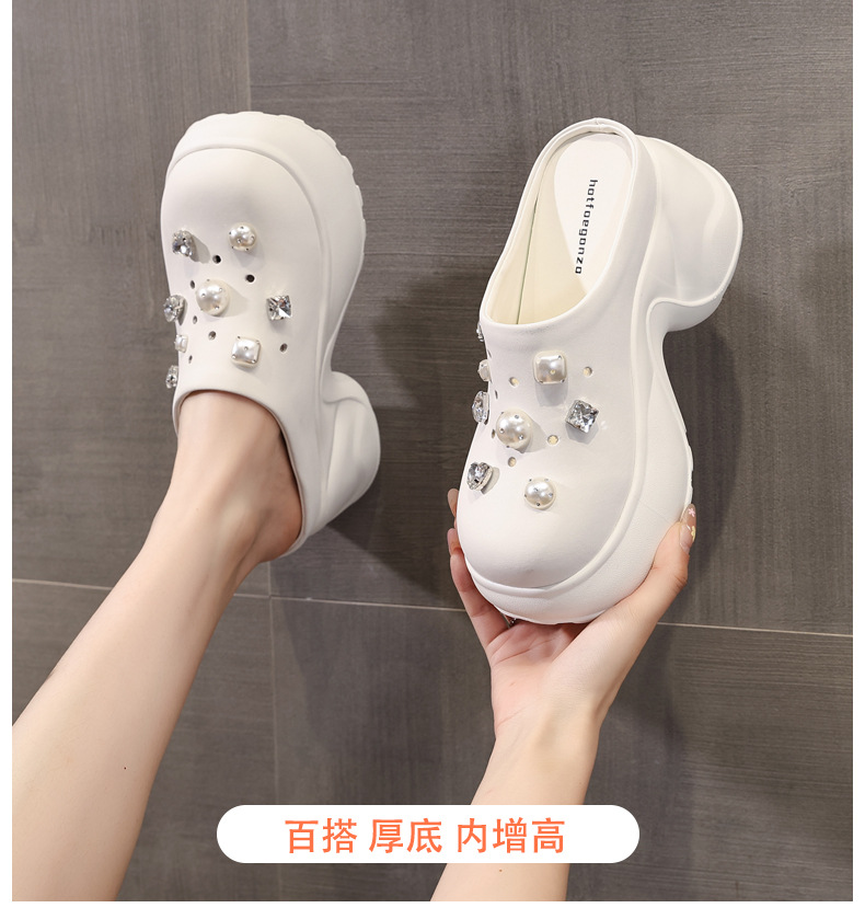 7780-11 두꺼운 바닥 높이 증가 패션 펄 바오 터우 슬리퍼 여성 2025 여름 슬립 온 게으른 신발스토어 가기