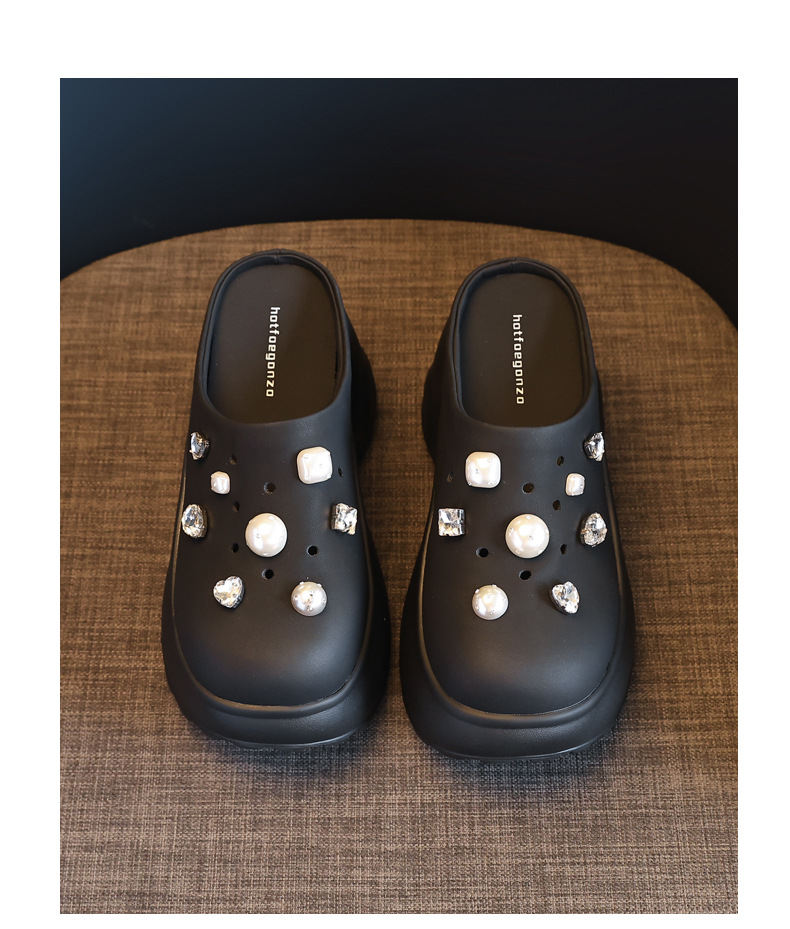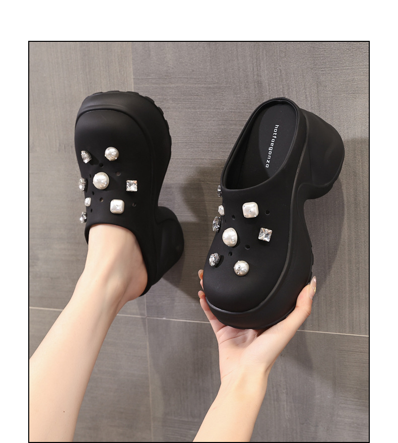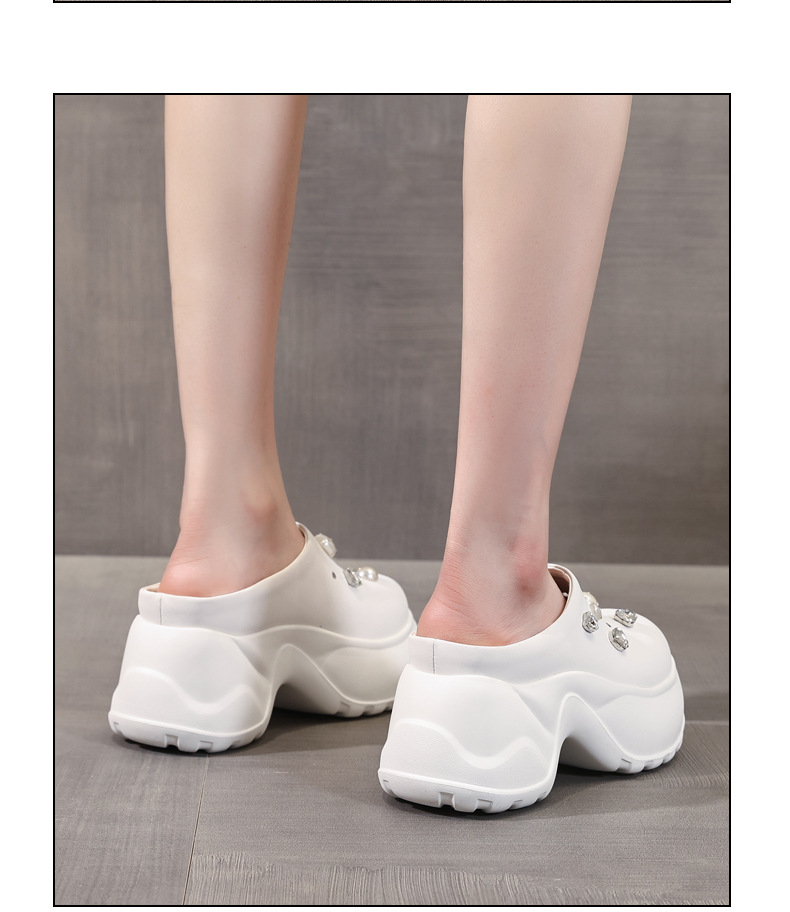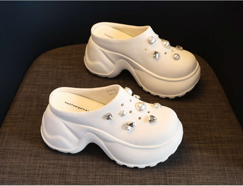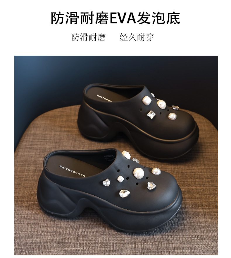 7780-11 두꺼운 바닥 높이 증가 패션 펄 바오 터우 슬리퍼 여성 2025 여름 슬립 온 게으른 신발