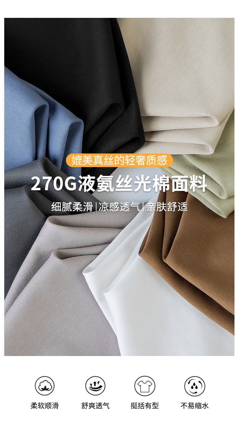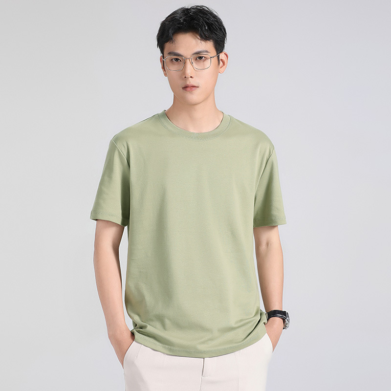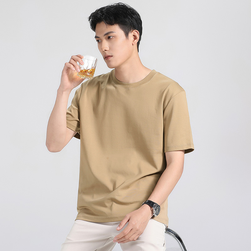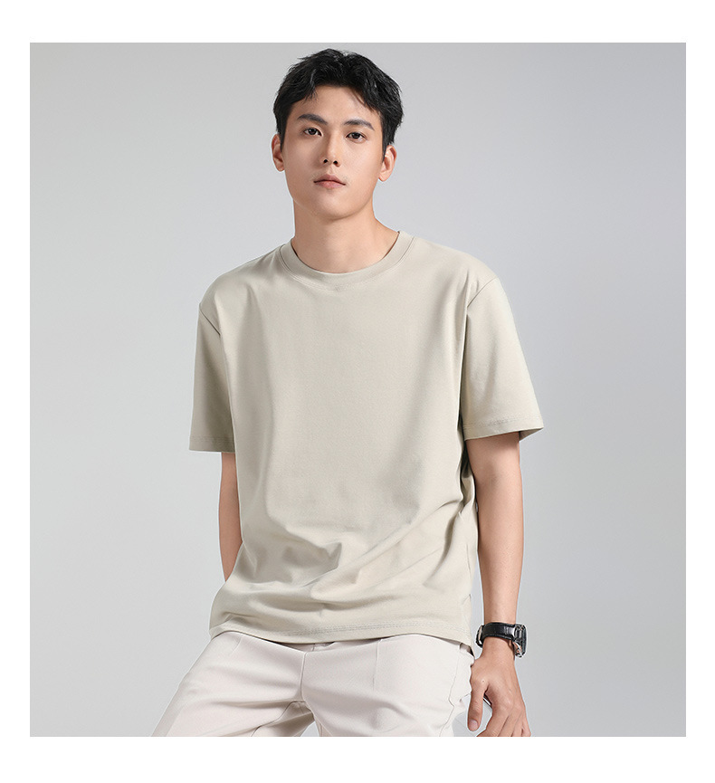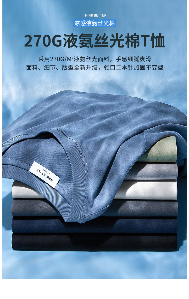 270g 하이 엔드 액체 암모니아 머서라이즈 코튼 반팔 티셔츠 남성용 아이스 실크 시원한 여름 느슨한 하이 엔드 얇은 티셔츠 남성용